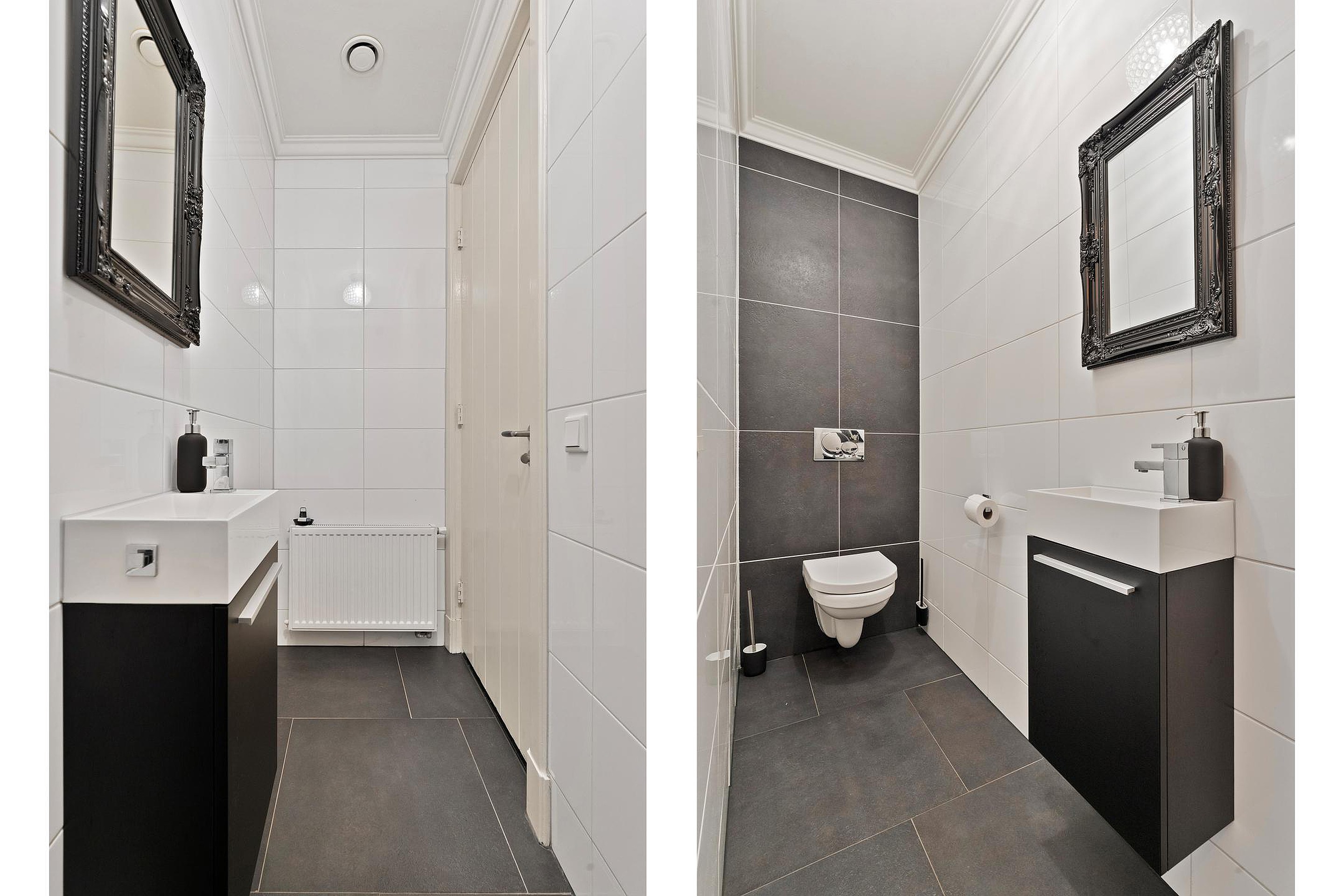 Middels een sierlijke trapopgang met entresol bereikt men de eerste verdieping met overloop, zes (slaap-)kamers en een badkamer. De badkamer is voorzien van ligbad, wastafelmeubel, toilet en wastafelmeubel. Vloerverwarming op de retourleiding.