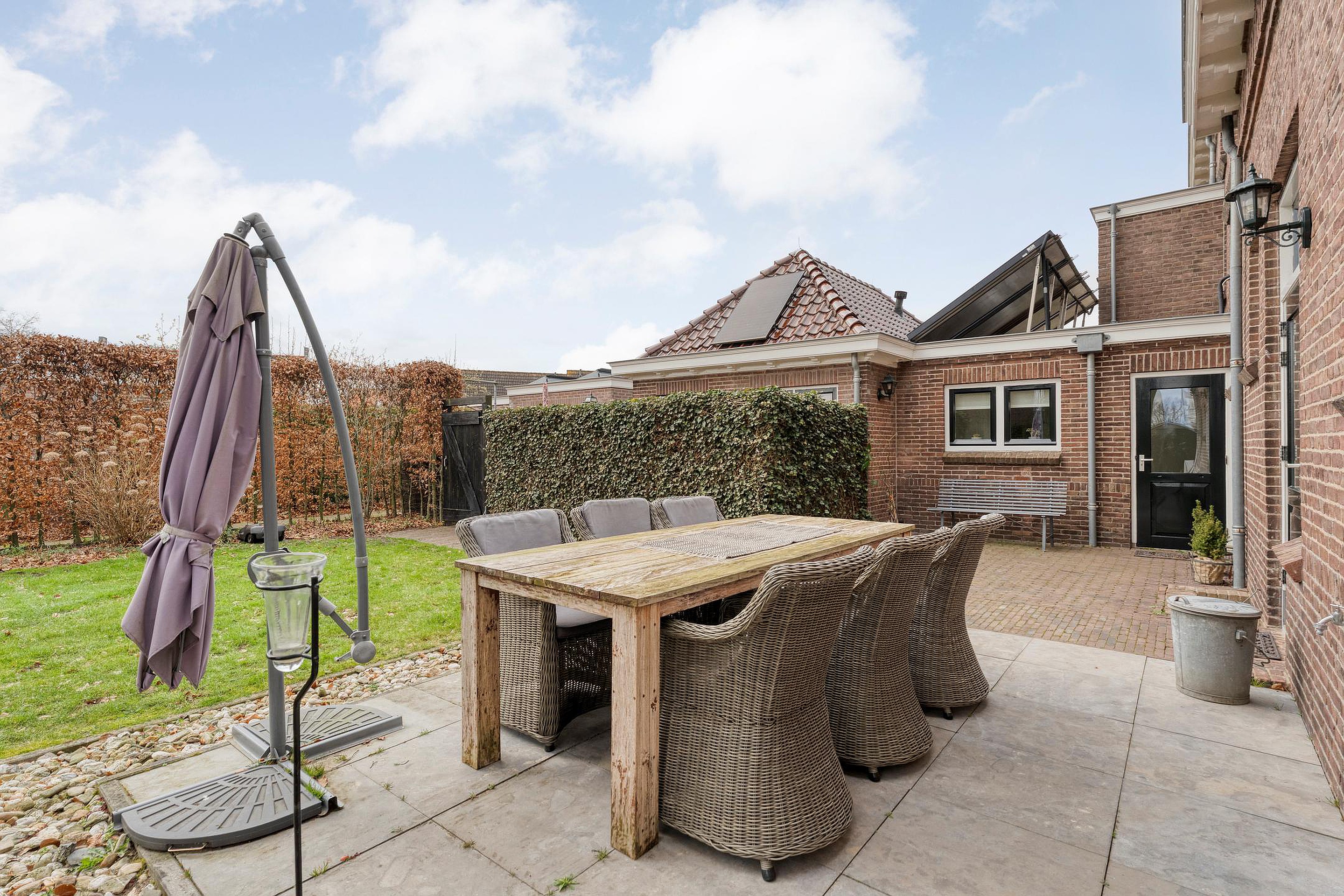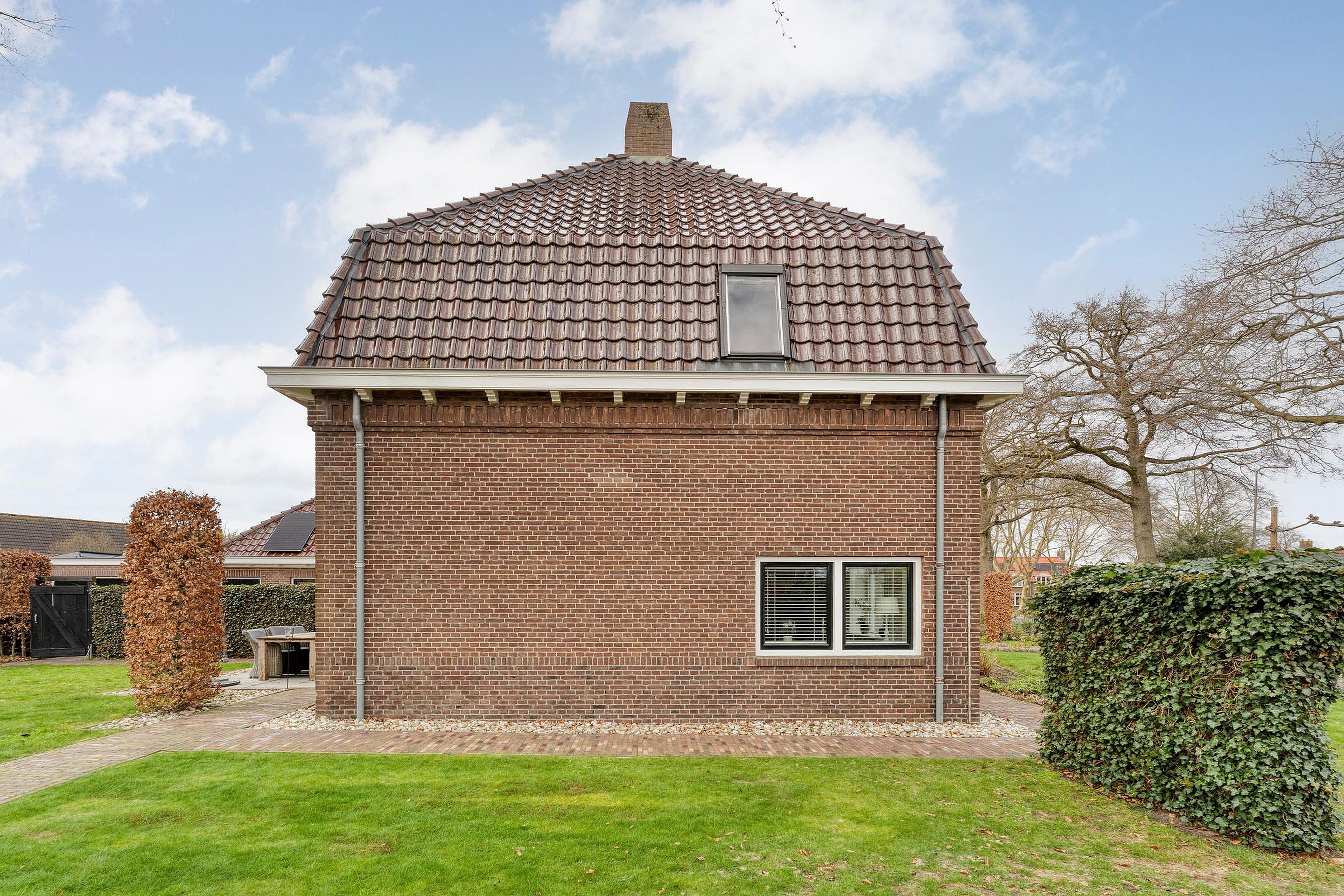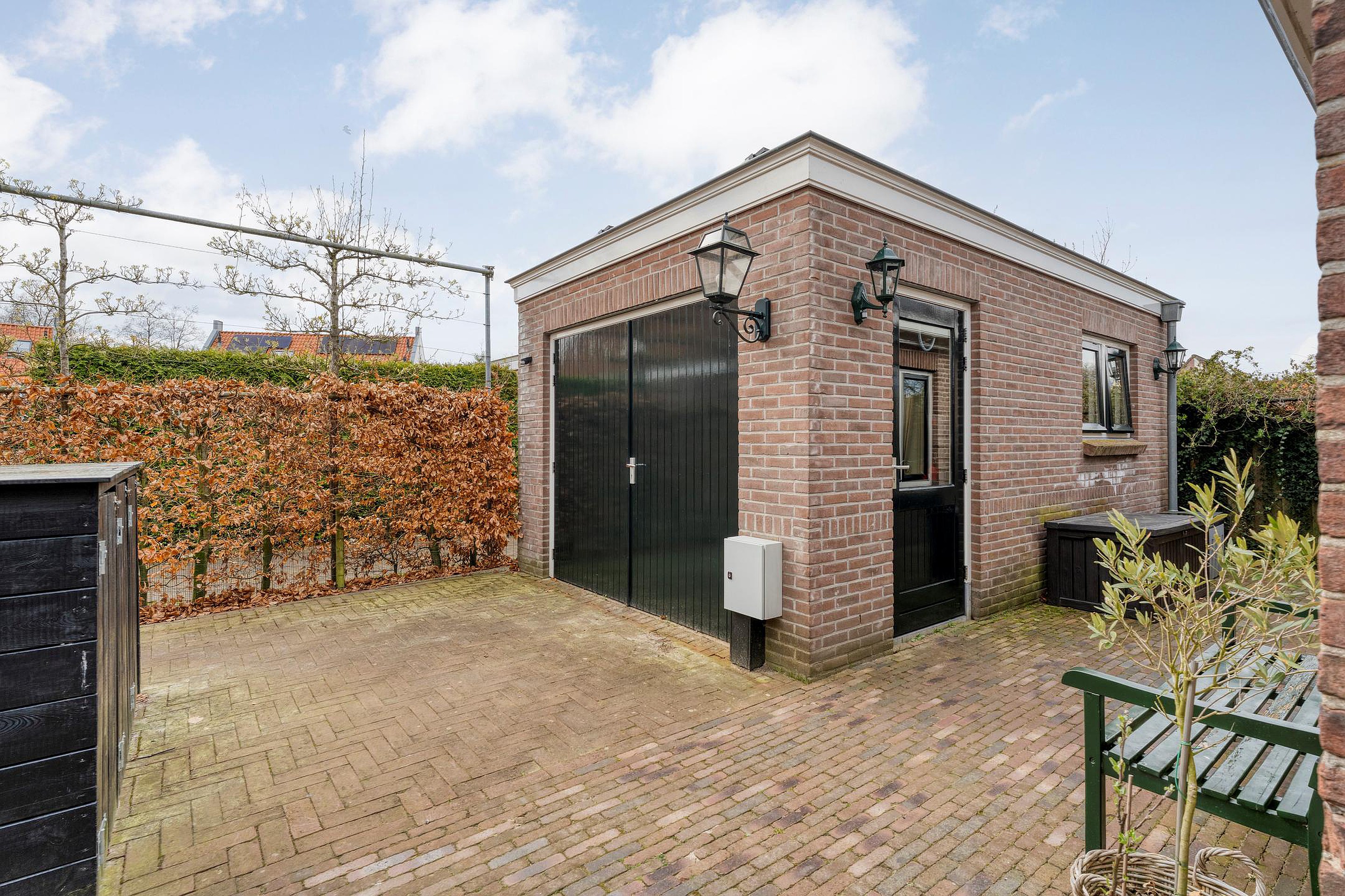 Aan de achterkant vind je het oude bijgebouw dat vroeger dienstdeed als verhoorkamer. Tegenwoordig is dit omgetoverd tot een heerlijke ruimte met een eigen woonkamer, een kleine maar praktische keuken, badkamer én toilet. Ideaal voor logees, oudere kinderen, of misschien wel een kantoor aan huis! En dan hebben we het nog niet eens gehad over de vrijstaande stenen garage, twee royale opritten voor al je auto's én een carport aan de zijkant. Waar vind je dat nog?