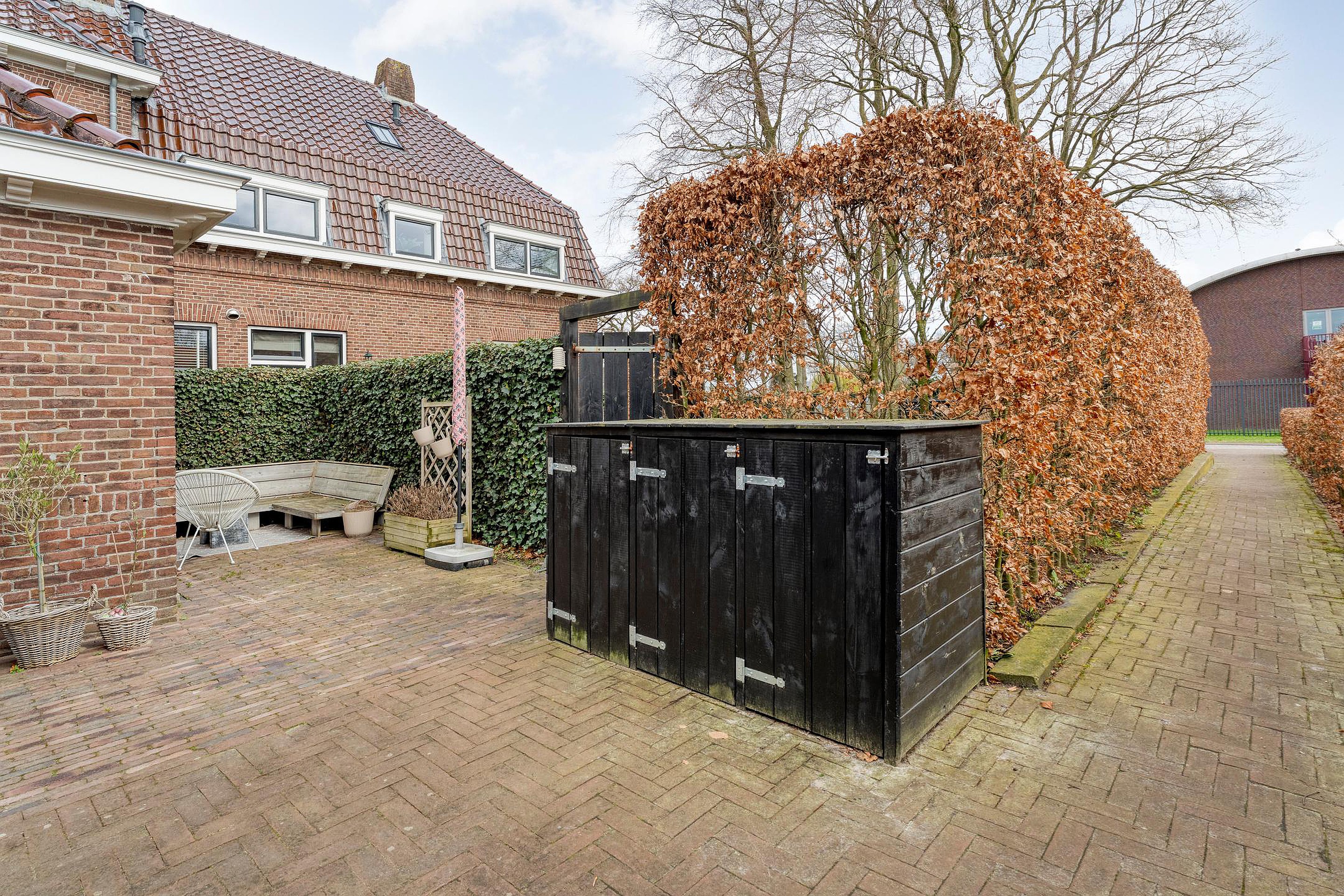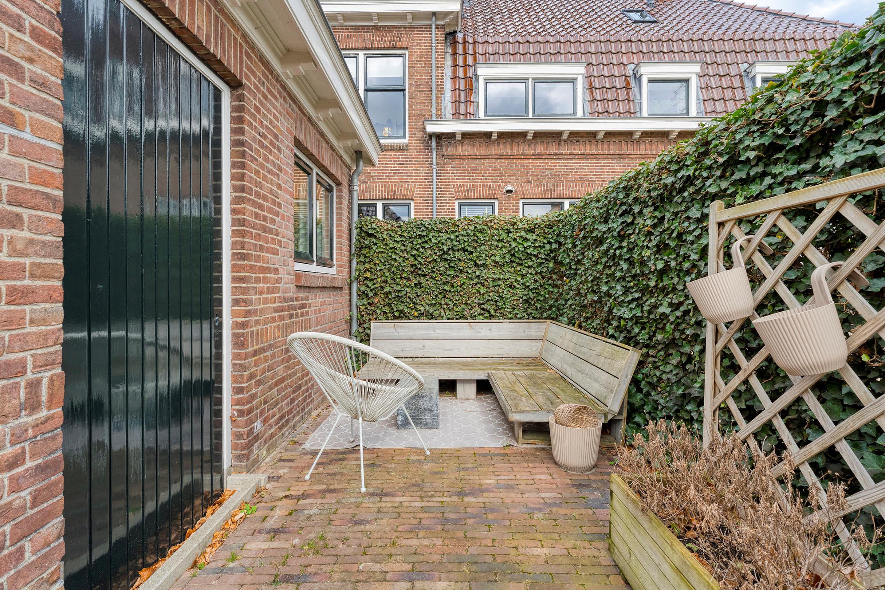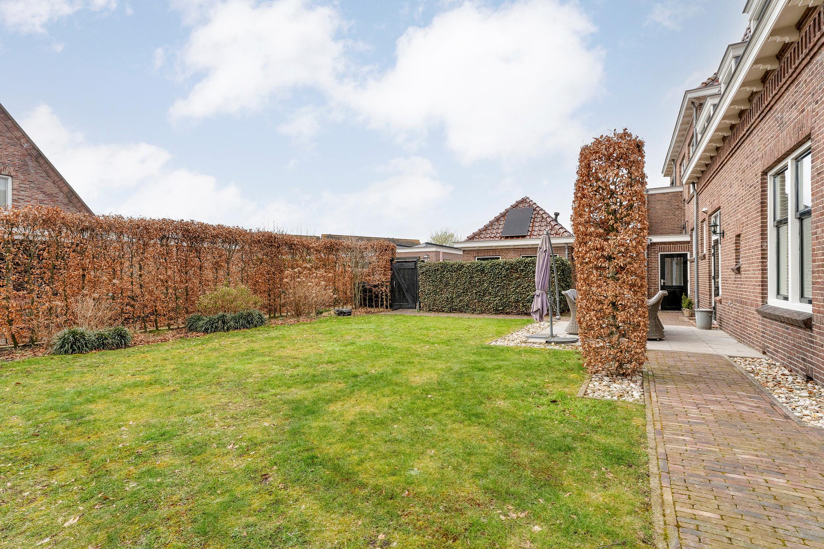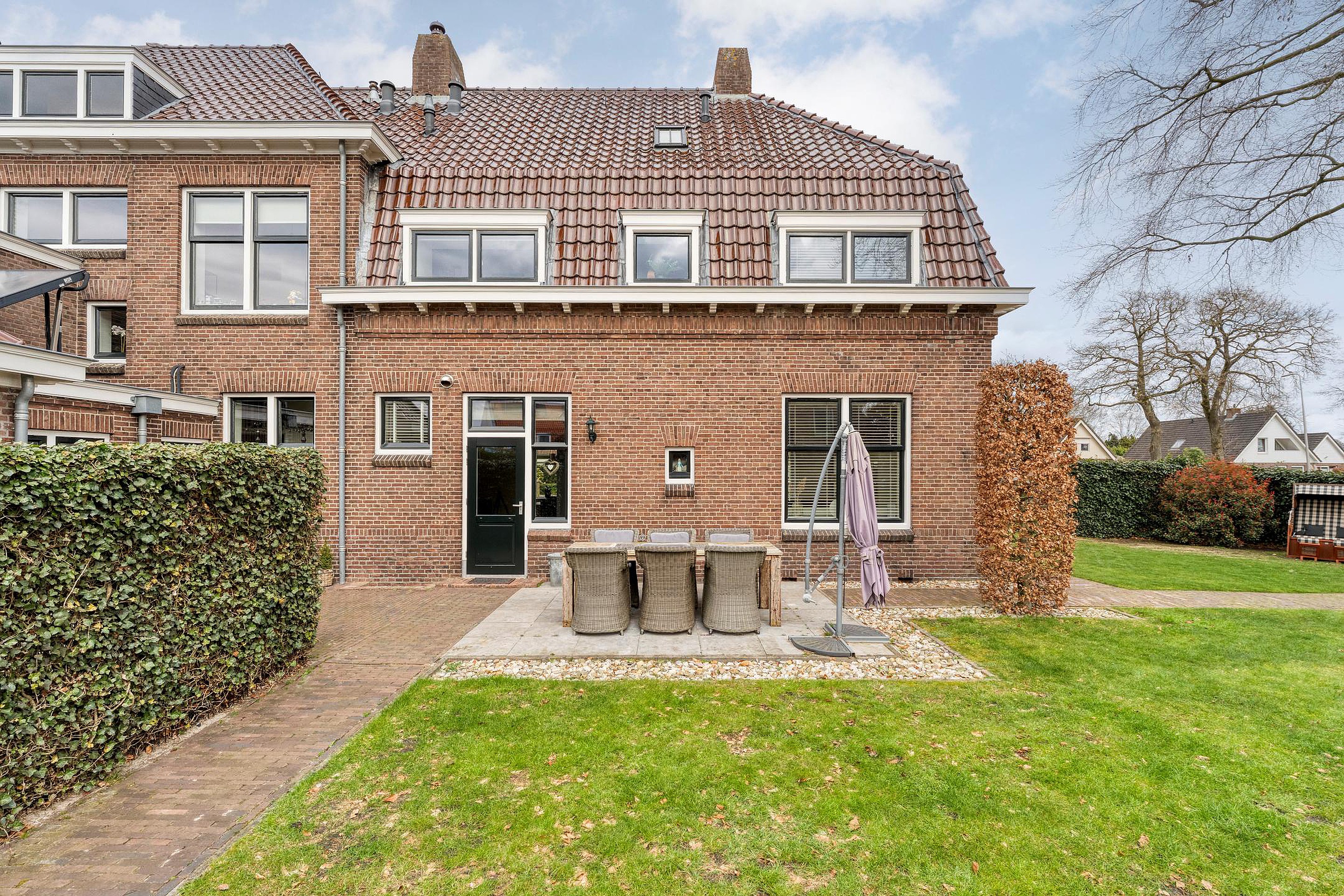 Aan de achterkant vind je het oude bijgebouw dat vroeger dienstdeed als verhoorkamer. Tegenwoordig is dit omgetoverd tot een heerlijke ruimte met een eigen woonkamer, een kleine maar praktische keuken, badkamer én toilet. Ideaal voor logees, oudere kinderen, of misschien wel een kantoor aan huis! En dan hebben we het nog niet eens gehad over de vrijstaande stenen garage, twee royale opritten voor al je auto's én een carport aan de zijkant. Waar vind je dat nog?