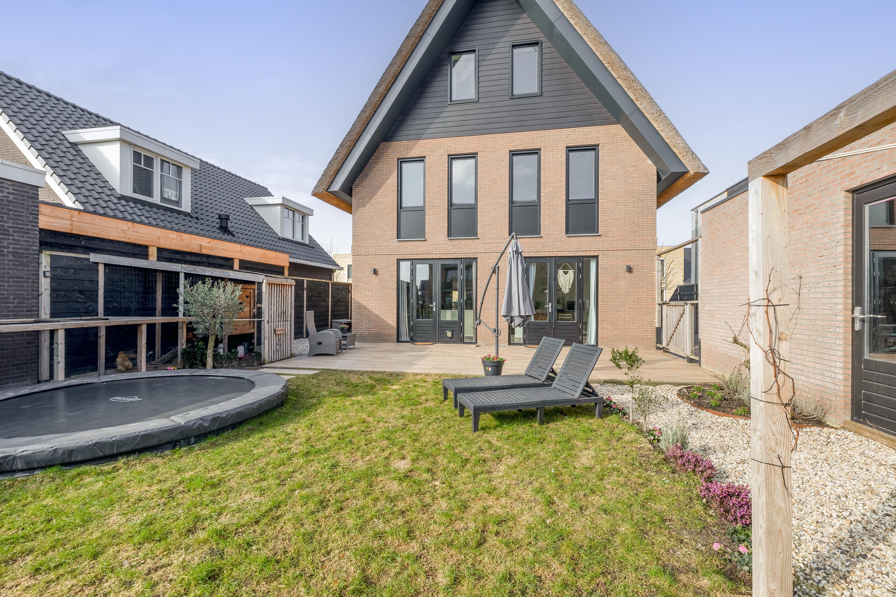 Soms komt er een woning voorbij die werkelijk alles heeft. Deze in 2023 traditioneel gebouwde vrijstaande villa combineert de romantische uitstraling van een rietgedekte kap met het ultieme comfort van een nagenoeg energieneutraal huis. Dankzij de indrukwekkende nokhoogte, de prachtige lichtinval en de hoogwaardige afwerking is dit een object van absolute klasse.