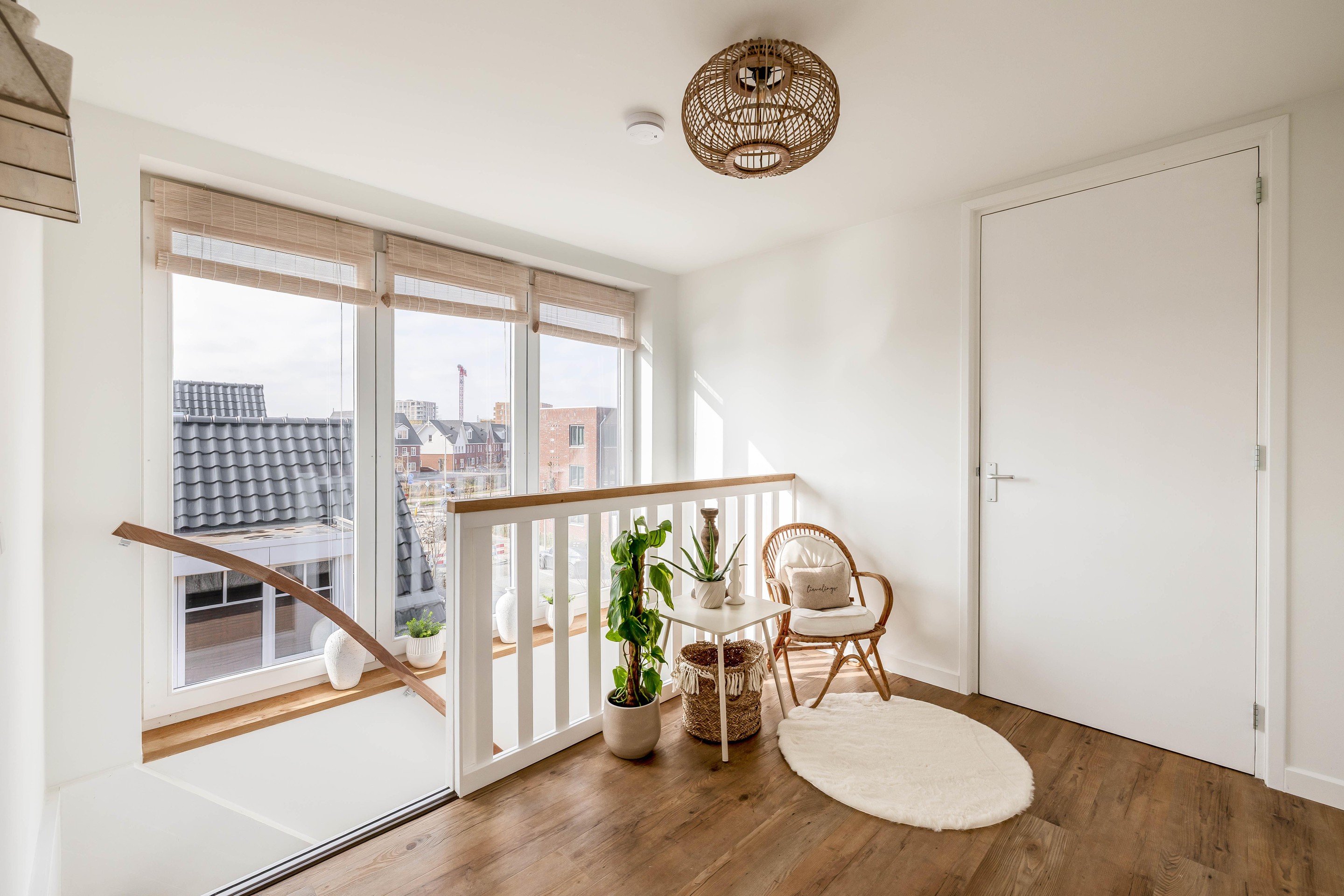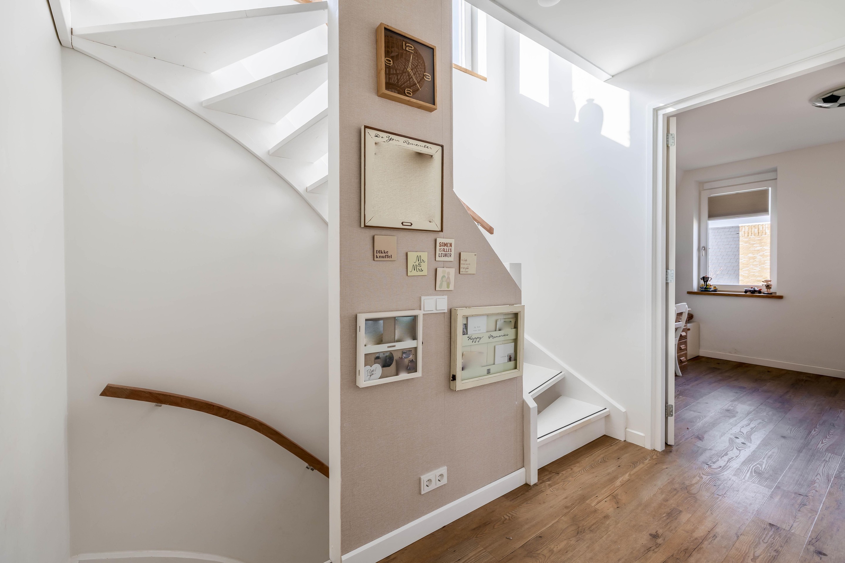 De overloop is bovendien extra licht dankzij de strategisch geplaatste ramen in het trappenhuis.