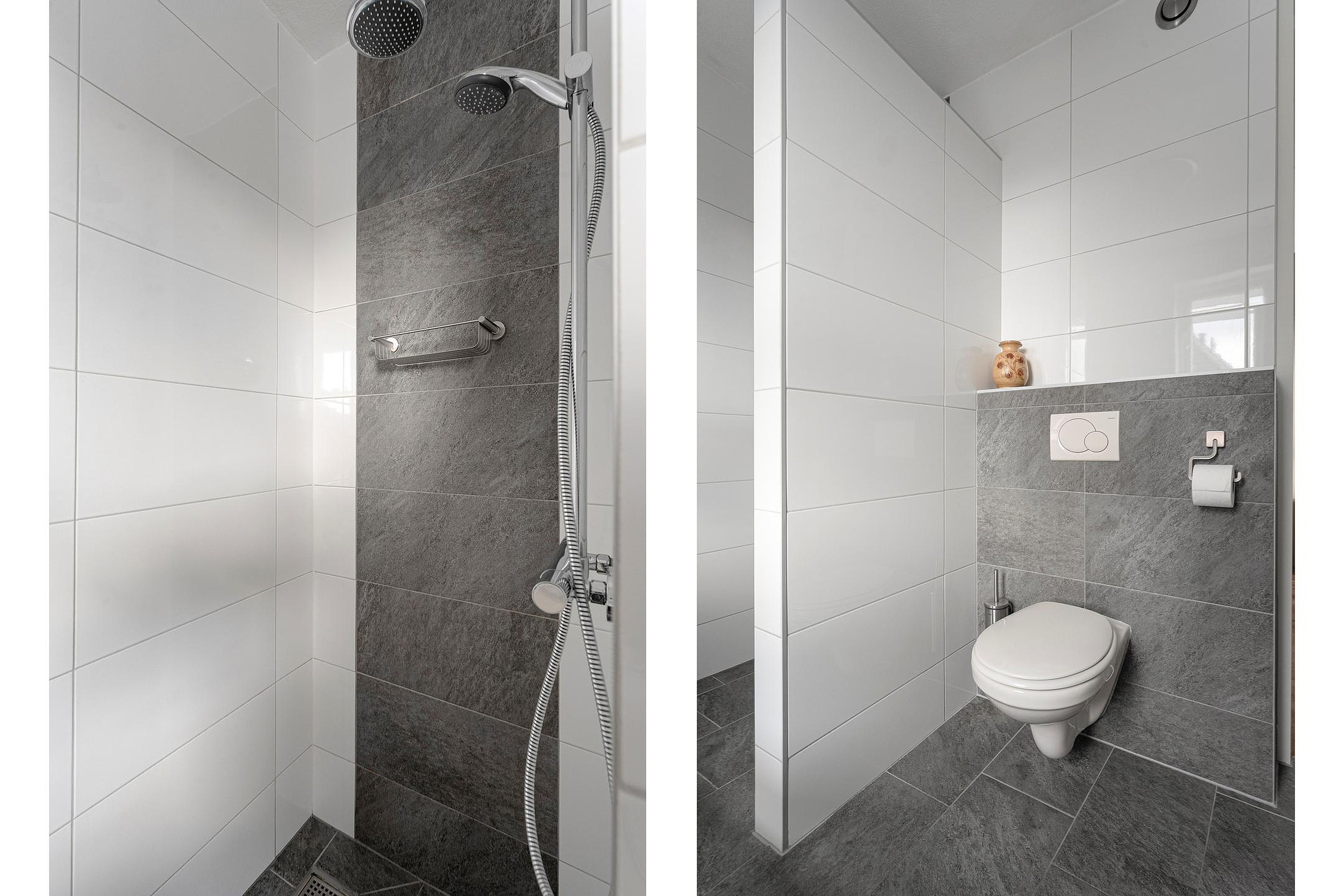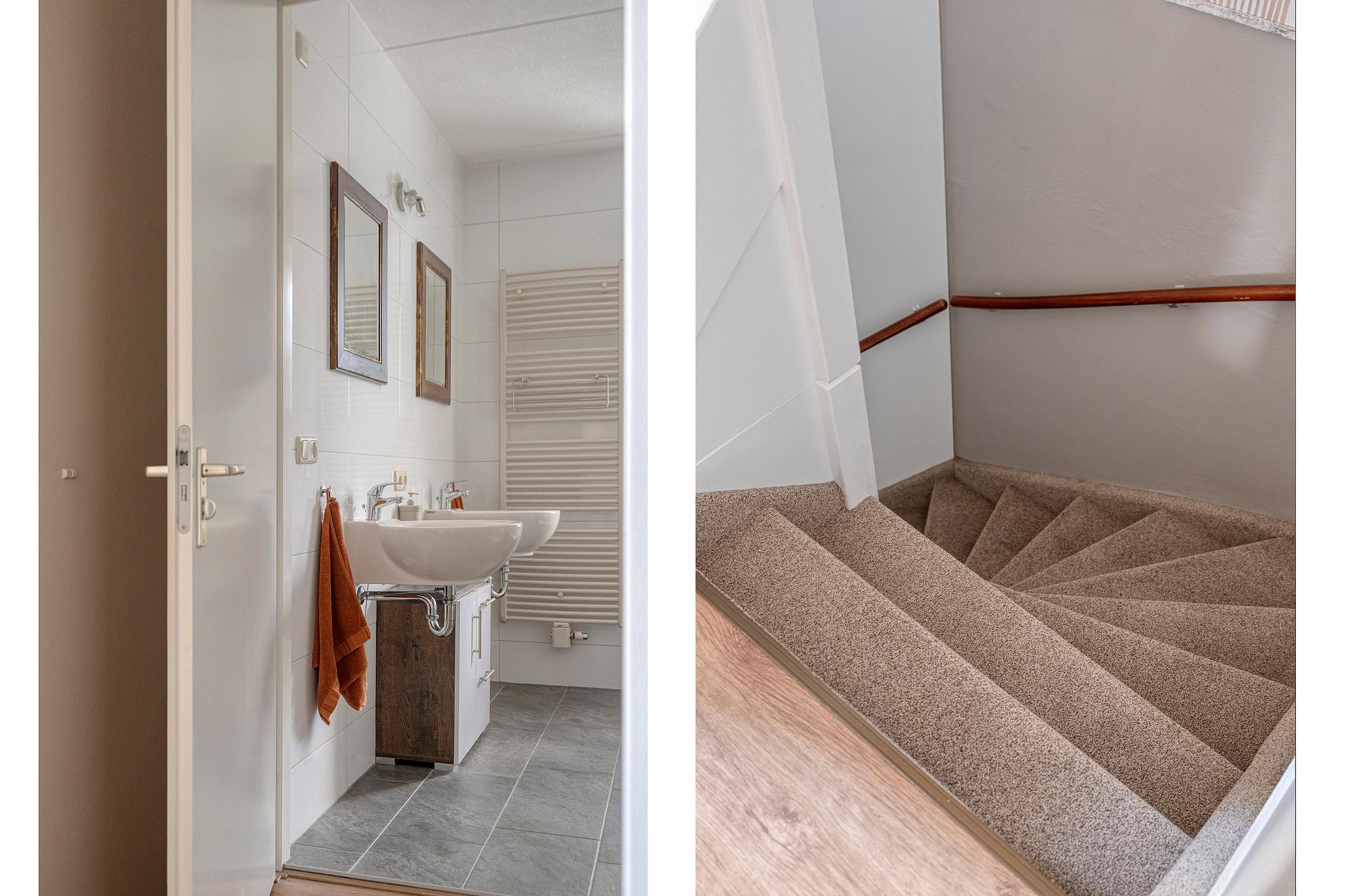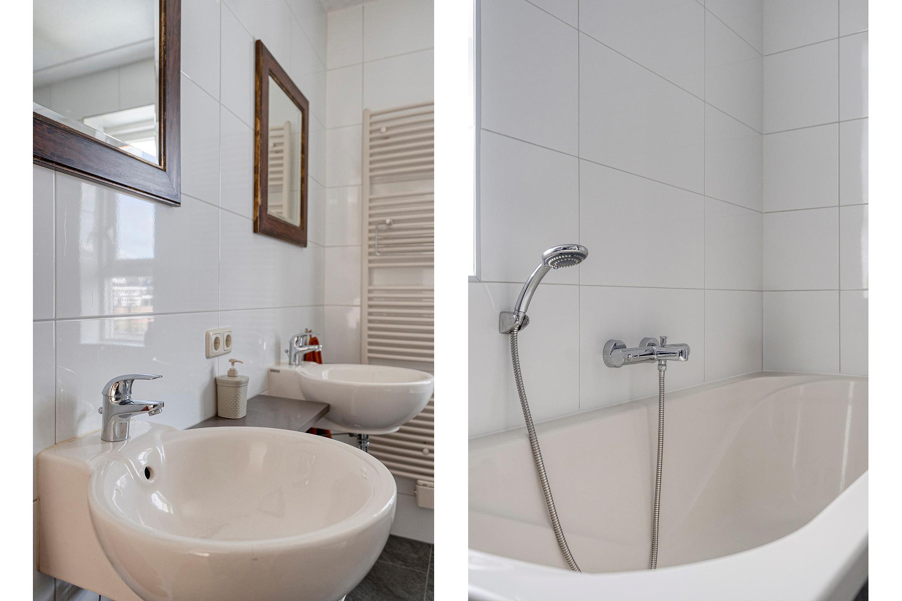 De eigentijdse badkamer heeft echt alles: een ligbad voor een relaxmoment, een inloopdouche, tweede toilet, een dubbele wastafel én een designradiator. Hier begint en eindig je elke dag in stijl.