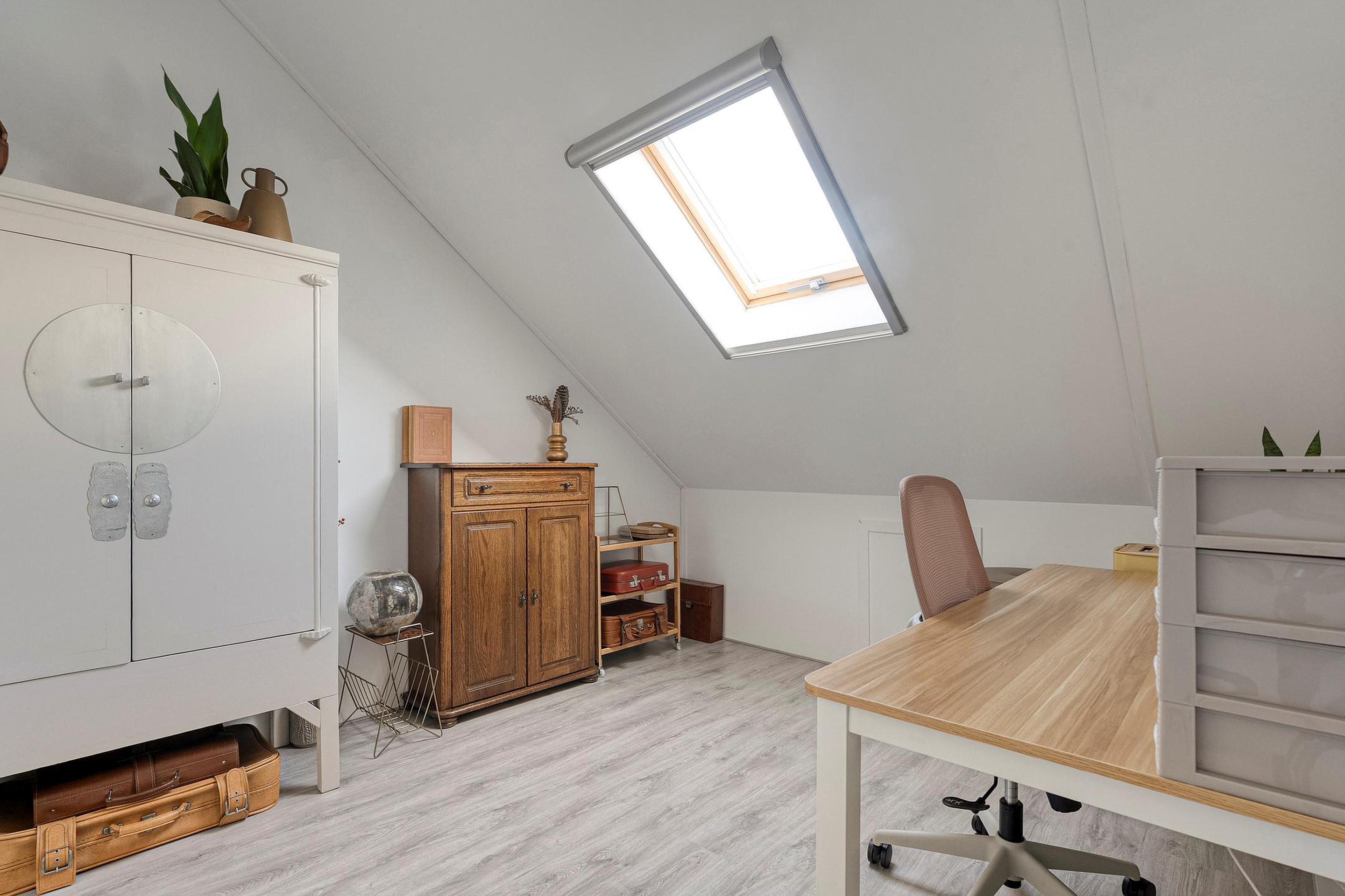 En dan de tweede verdieping: via een vaste trap kom je op de zolderverdieping met nóg eens twee slaapkamers. Ideaal als (thuis)werkplekken, tienerkamers of logeerkamers.