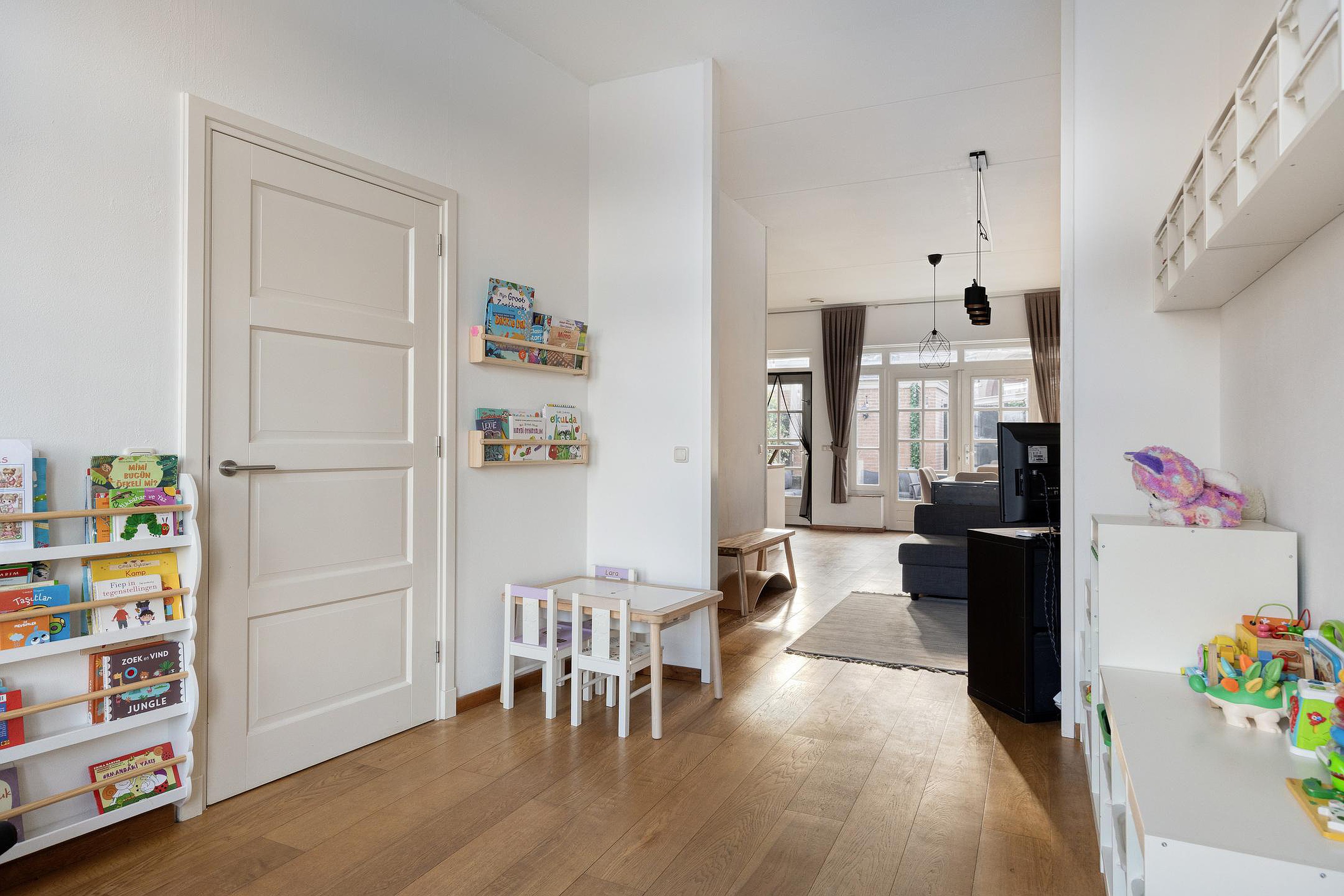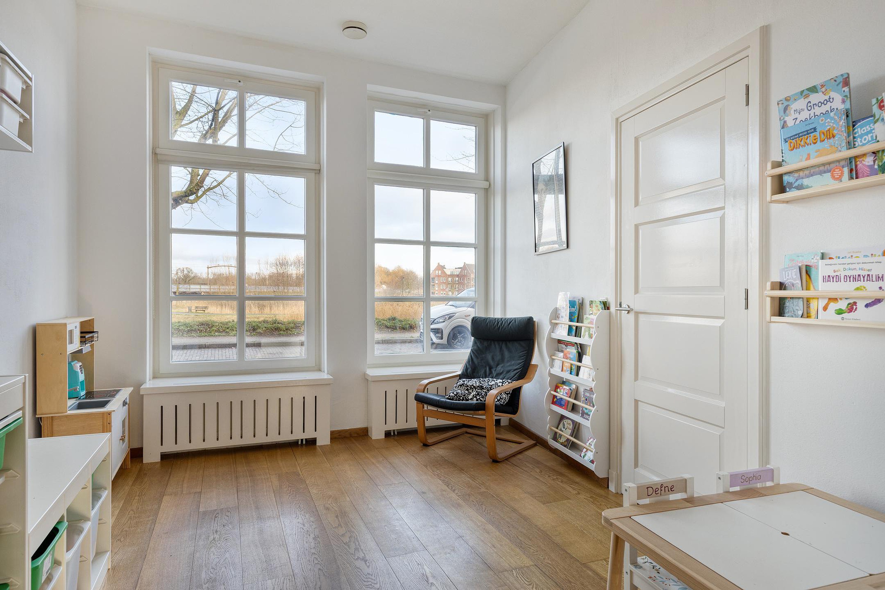De leefkeuken op de begane grond vormt het centrale punt van de woning. Via deze ruimte heeft u toegang tot de achtertuin (circa 31 m2, zuidwest), waar u kunt genieten van middag- en avondzon. De eerste verdieping biedt een brede woonkamer met grote raampartijen die profiteren van het vrije zicht aan de voorzijde. De tweede en derde verdieping bieden samen vier volwaardige slaapkamers, geschikt als slaap-, werk- of hobbyruimte. Hierdoor is dit herenhuis zeer geschikt voor gezinnen, thuiswerkers of mensen die behoefte hebben aan functionele meters.