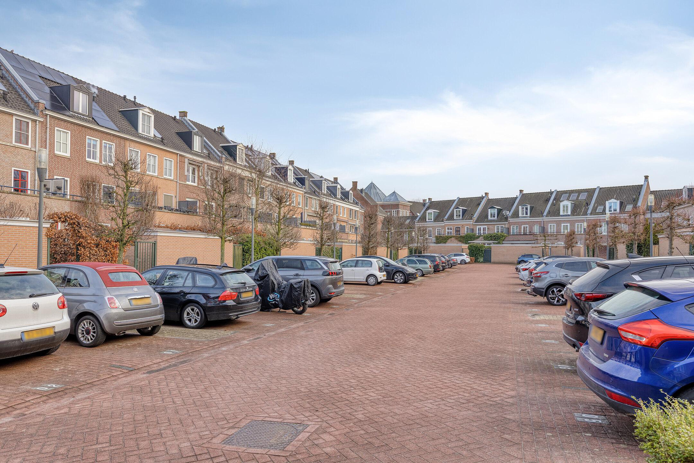 Via de achtertuin bereikt u het afgesloten binnenterrein. Dit terrein is uitsluitend toegankelijk voor bewoners en is verkeersluw. Daardoor ontstaat een veilige buitenruimte waar kinderen kunnen spelen, fietsen of verblijven zonder doorgaand verkeer. De privé parkeerplaats ligt eveneens op dit binnenterrein.