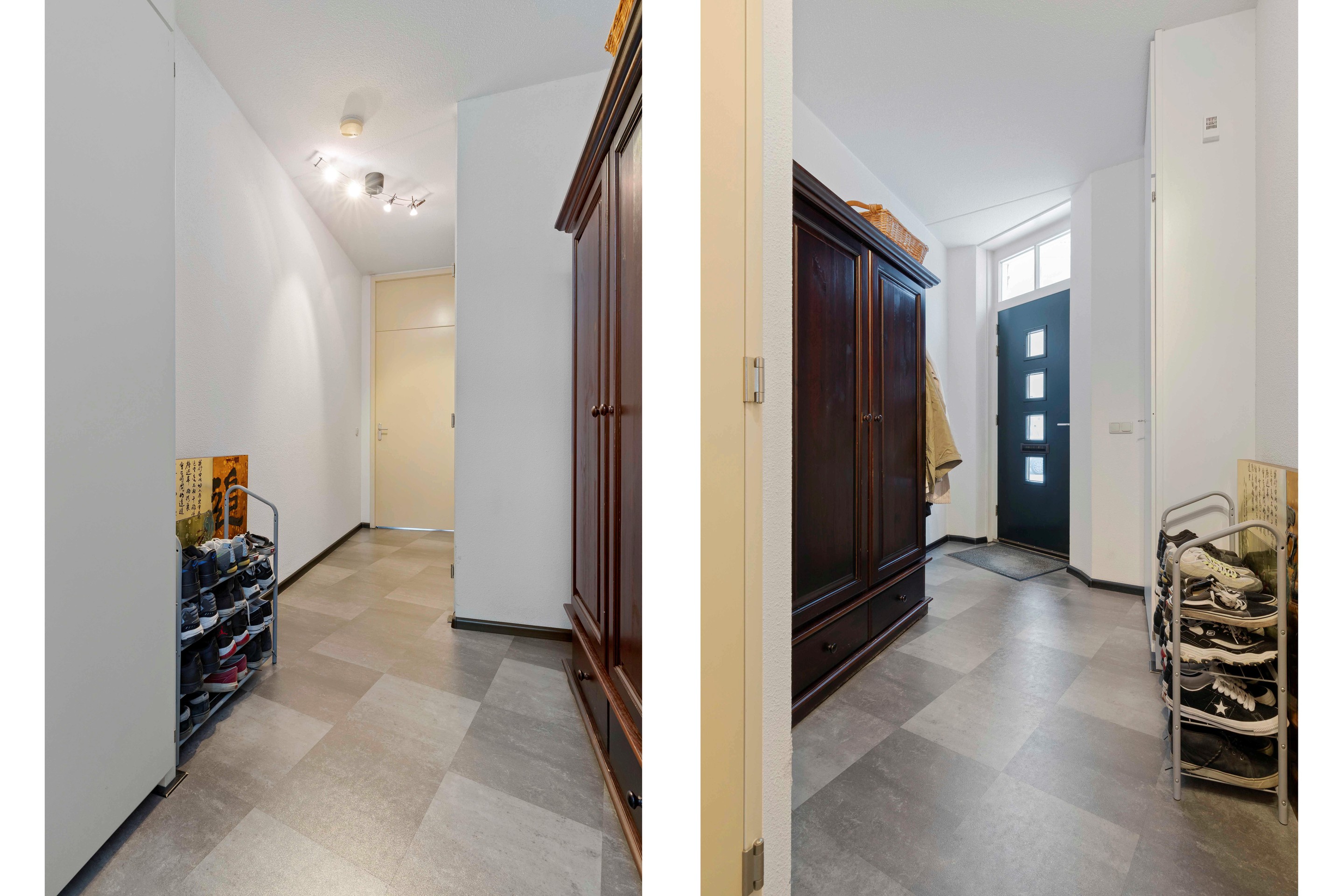 Via de entree komt u in de hal met toegang tot de woonkamer, trapopgang naar de verdiepingen, het toilet en de meterkast met glasvezelaansluiting.