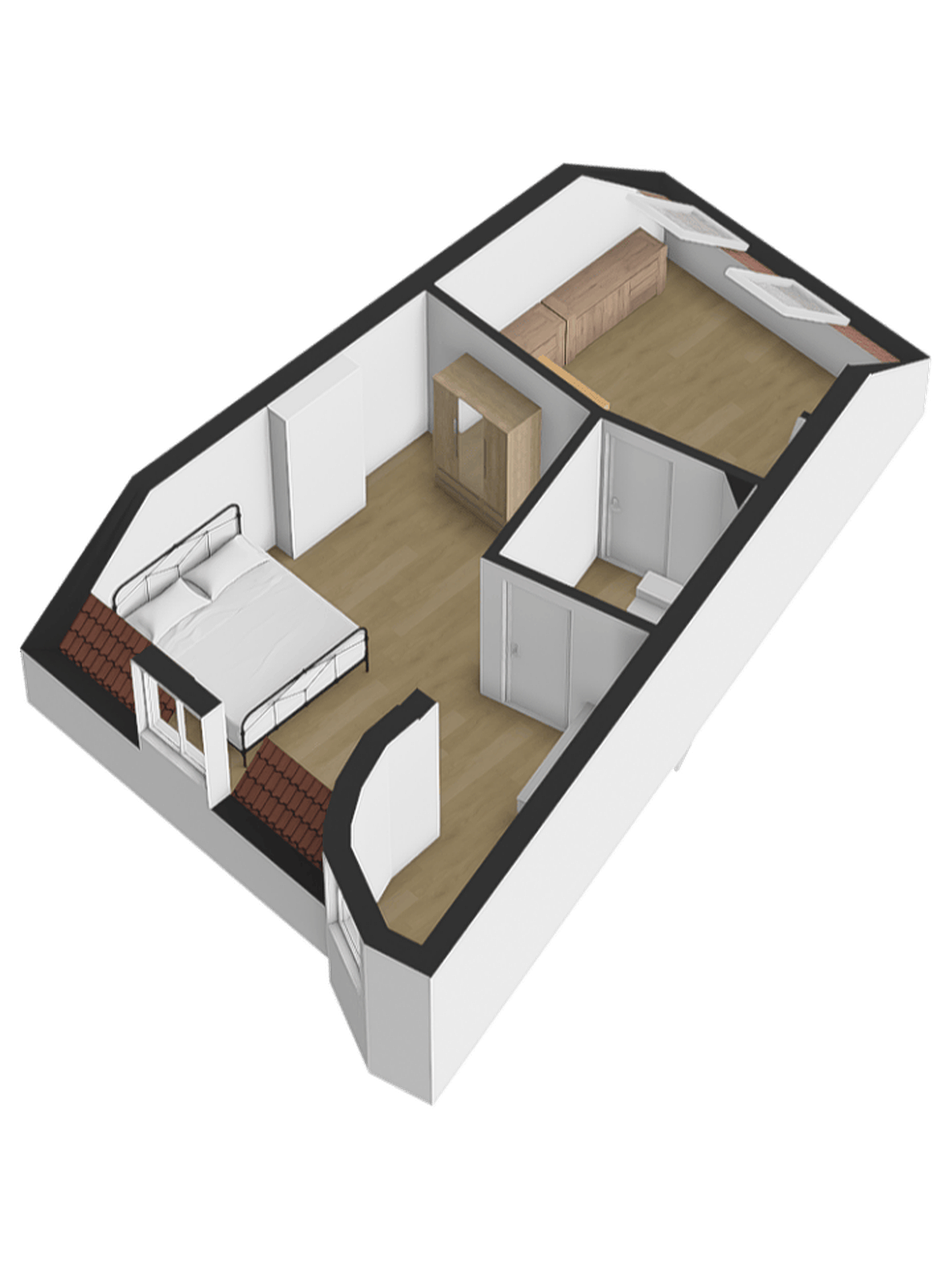 De slaapkamer aan de voorzijde beschikt over een karakteristieke torenkamer met meerdere draai-/kiepramen die zorgen voor een fraaie lichtinval. De kamer is afgewerkt met een laminaatvloer en spachtelputz wanden.