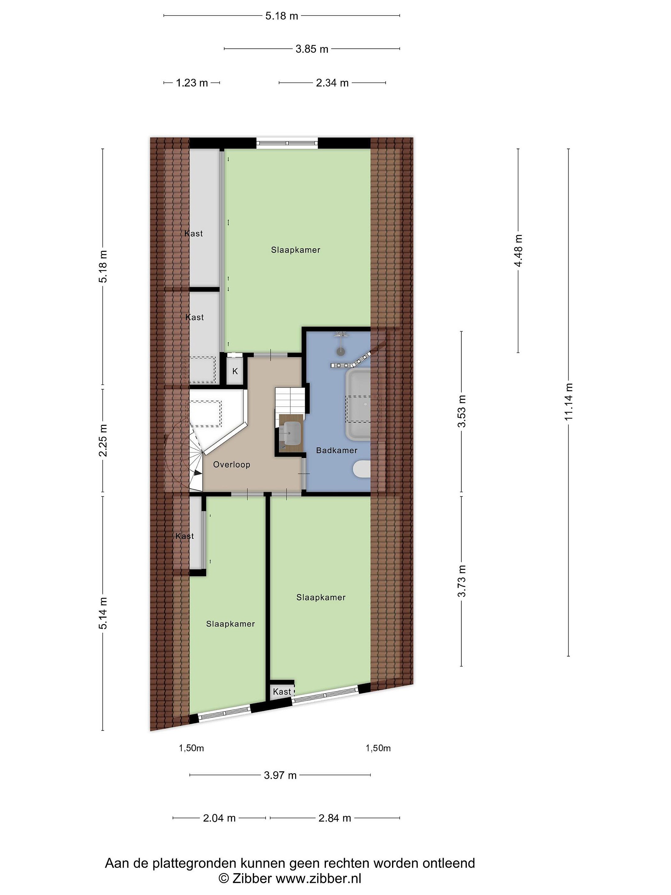 Eenzelfde prachtige en unieke halfronde trap met houten wanden geeft toegang tot de slaapverdieping. Boven de trapopgang komt het directe daglicht binnen middels een Velux raam. Op de overloop liggen houten vloerdelen die zijn doorgelegd in de slaapkamers.