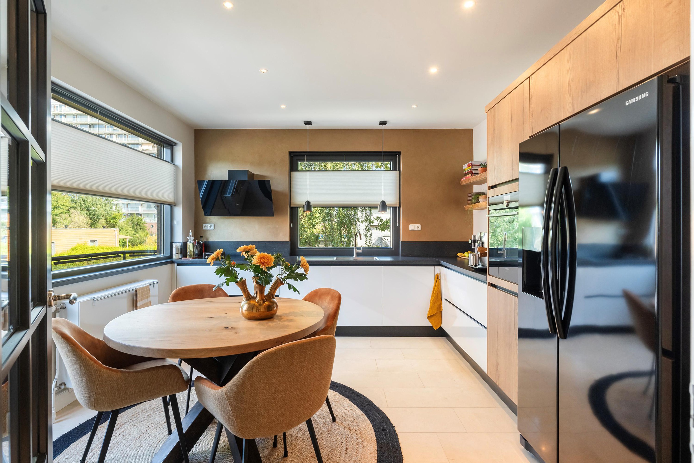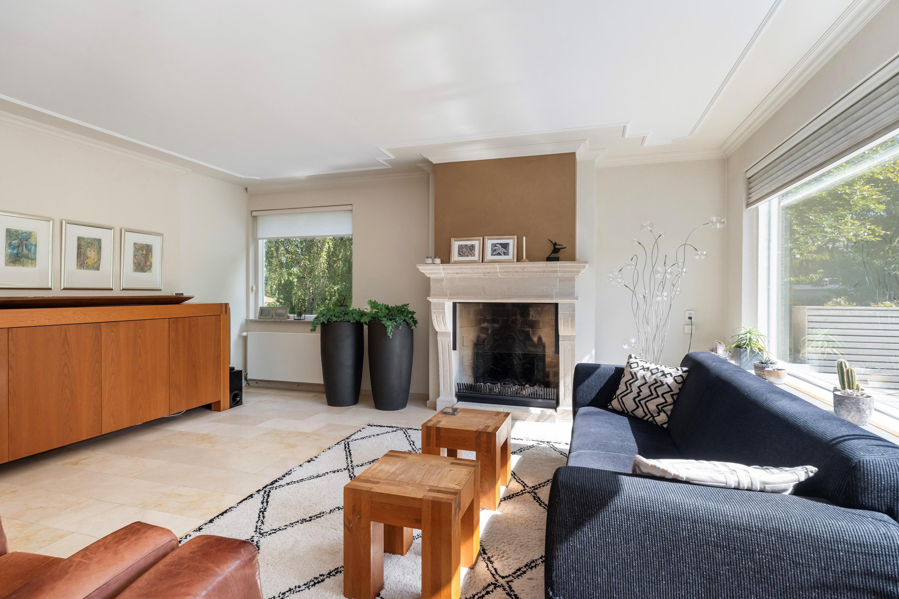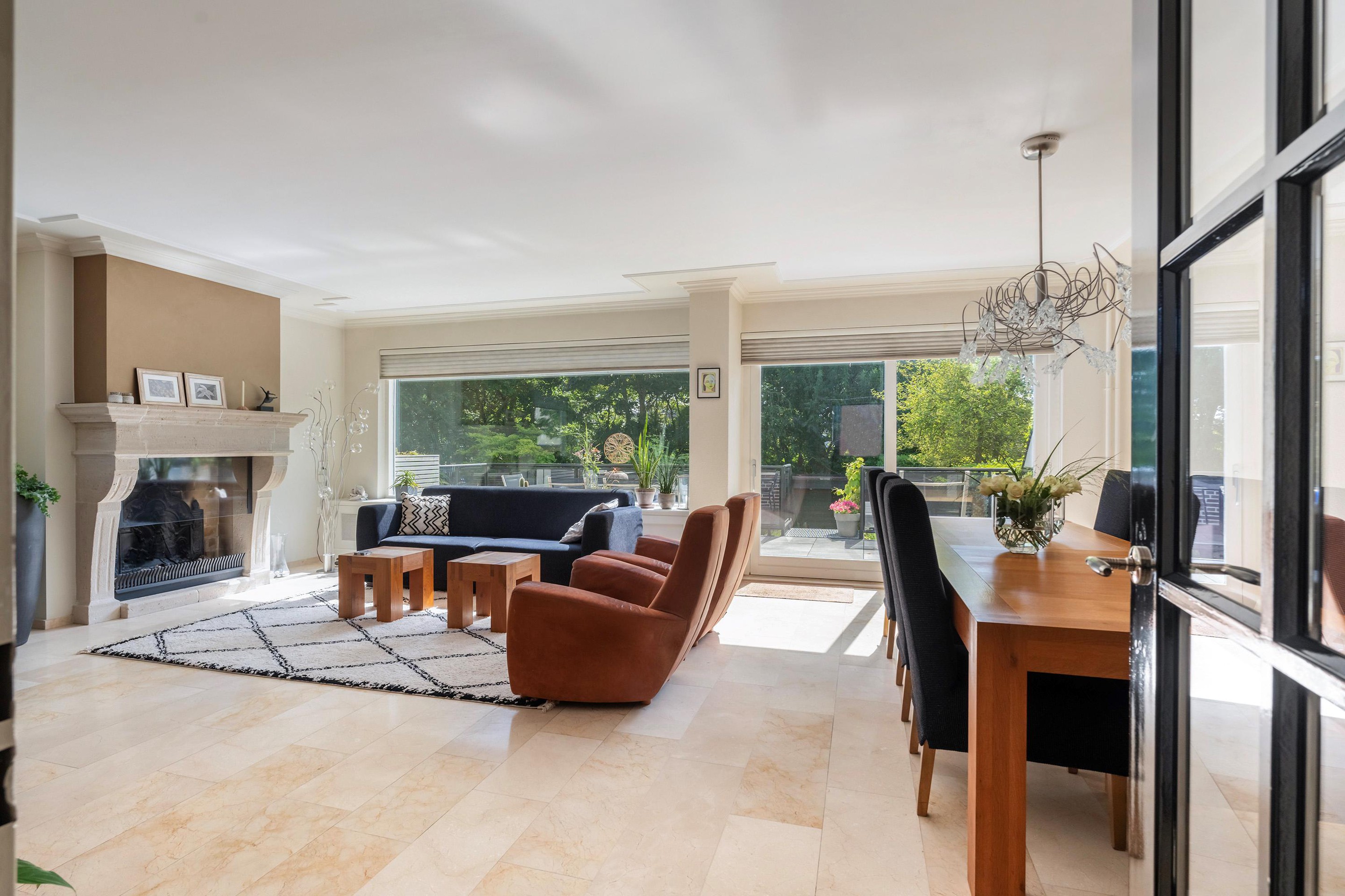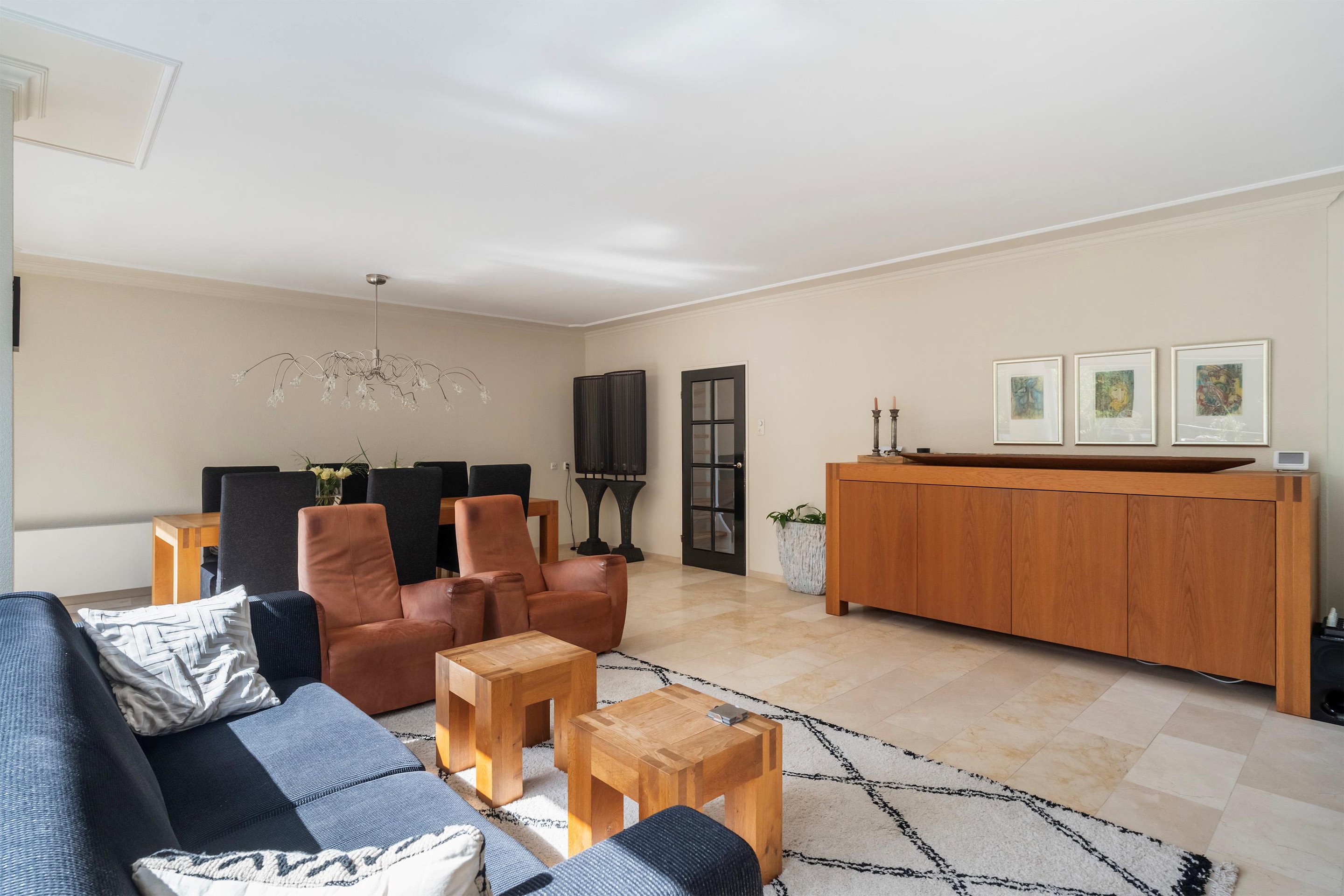 1e verdieping: Overloop met trapopgang 2e woonlaag. Modern toilet met fontein. Een lichte en luxe woonkeuken (ca. 16 m2) aan de voorzijde met moderne hoekopstelling, o.a. voorzien van een Samsung 'Amerikaanse' koelkast, inductiekookplaat, afzuiging en veel kastruimte. Vanuit hier stapt u zo op het balkon (ca. 3 m2) gesitueerd op het noordoosten. Een zeer royale living van ca. 42 m2, met marmeren vloer, karakteristieke schouw/open haard, veel lichtinval en schuifpui naar het zonnige terras op het zuidwesten (ca. 24 m2) – met moderne staal/glas omheining, trap naar de tuin en zonwering (doek dient te worden vervangen).