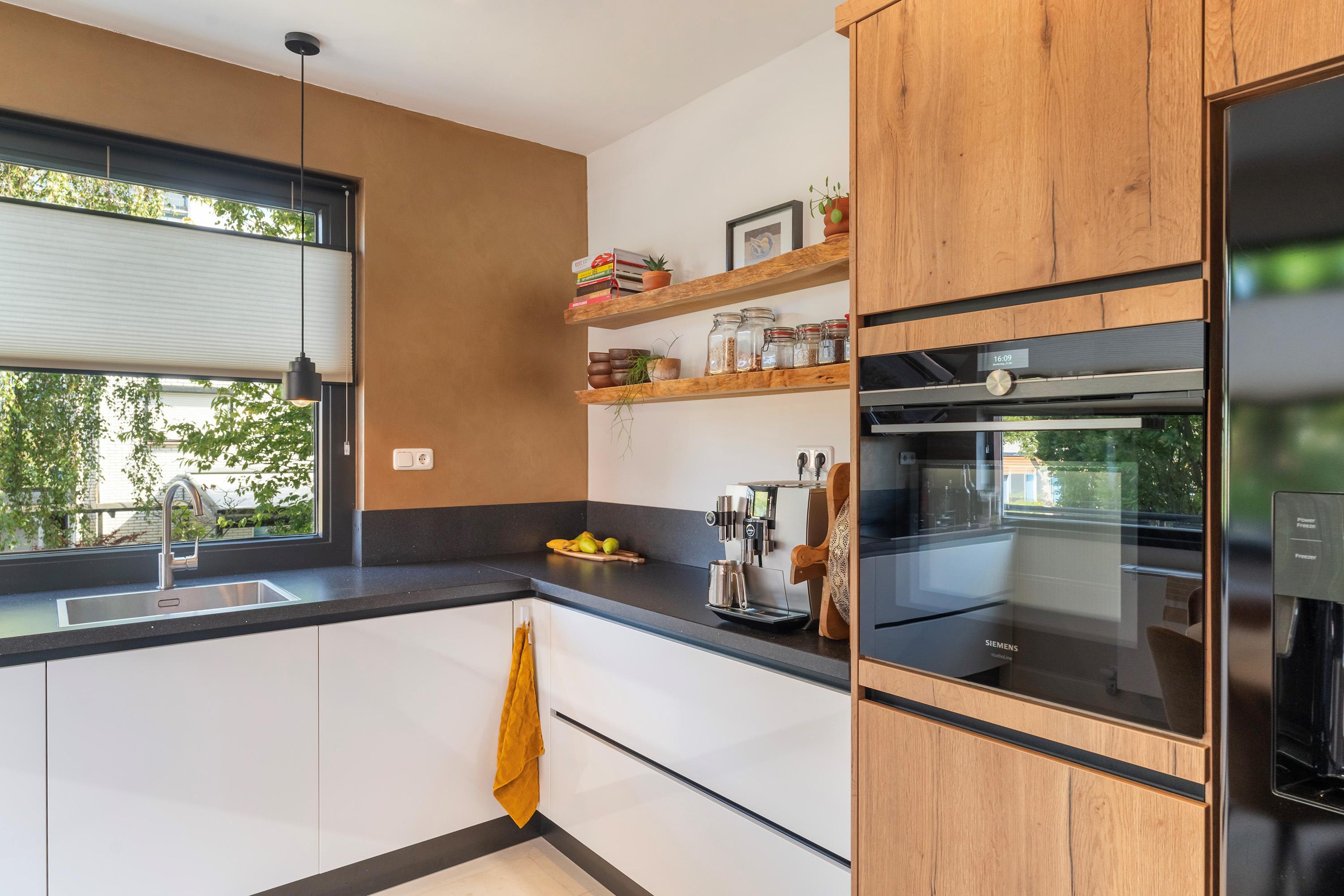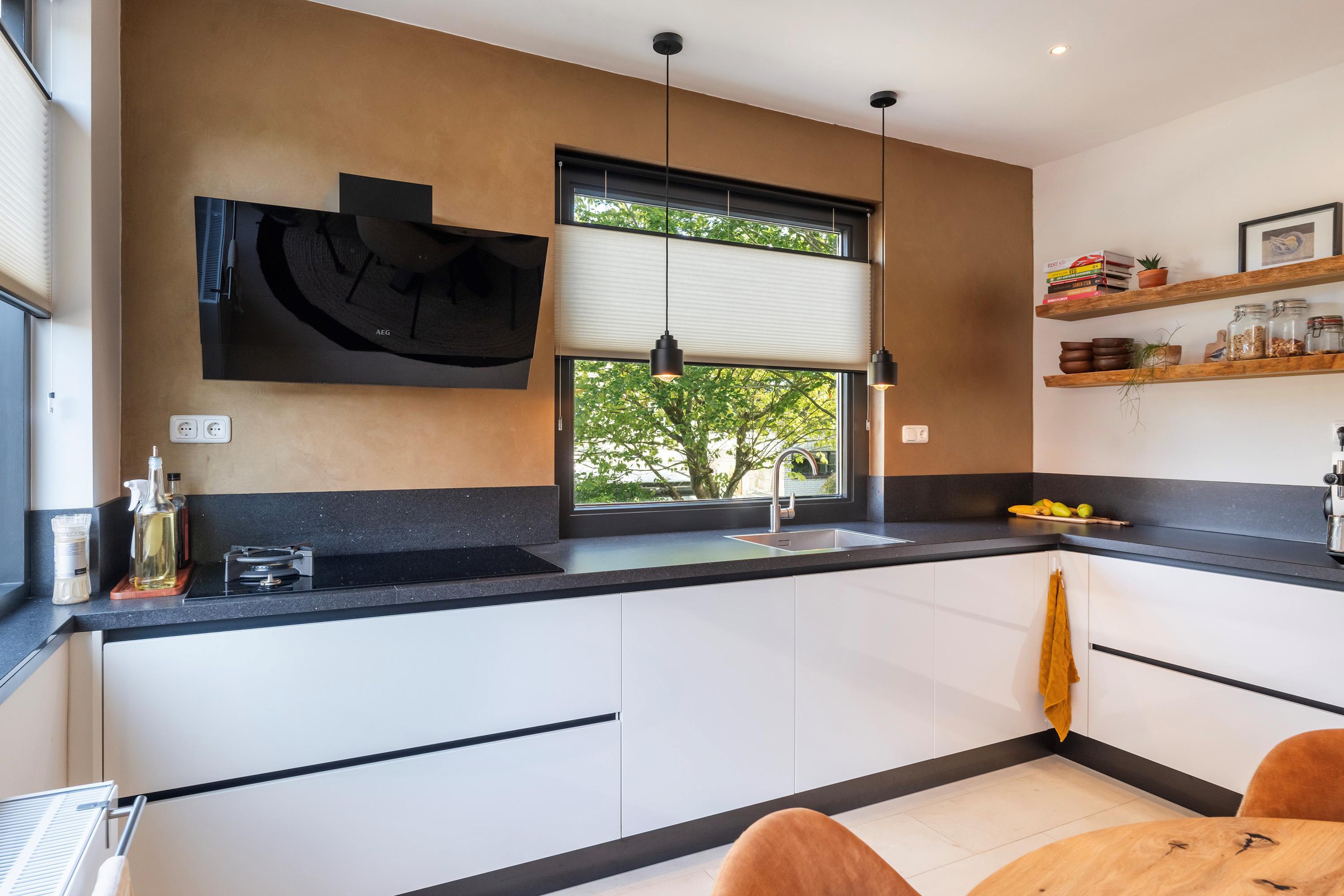 - Een inpandige berging met keukenblok, wasmachine-/drogeraansluiting, omvormer voor de zonnepanelen en toegang tot de tuin