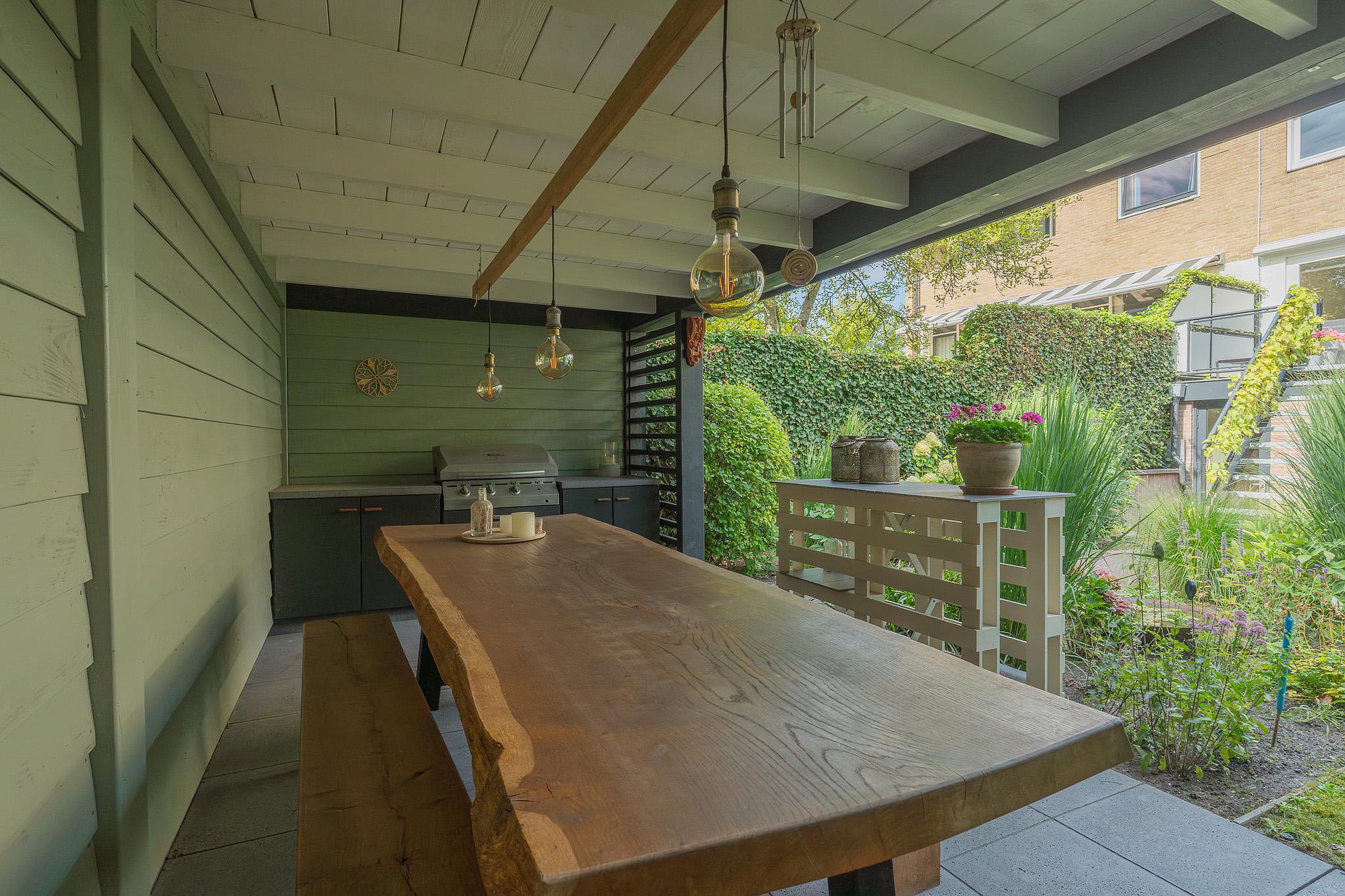 Fraai betegeld terras, vrijstaande houten berging, veel groen en beschutte zitplekken. Stoere houten veranda – ideaal voor lange zomeravonden, tuinfeestjes of een privé buitenkeuken. Extra stuk tuin van ca. 130 m2 wordt momenteel gehuurd van de gemeente Katwijk voor slechts € 115,- per jaar (contract aanwezig). Carport voor o.a caravan of extra auto, eigen parkeerplaats ervoor aan de straatzijde.