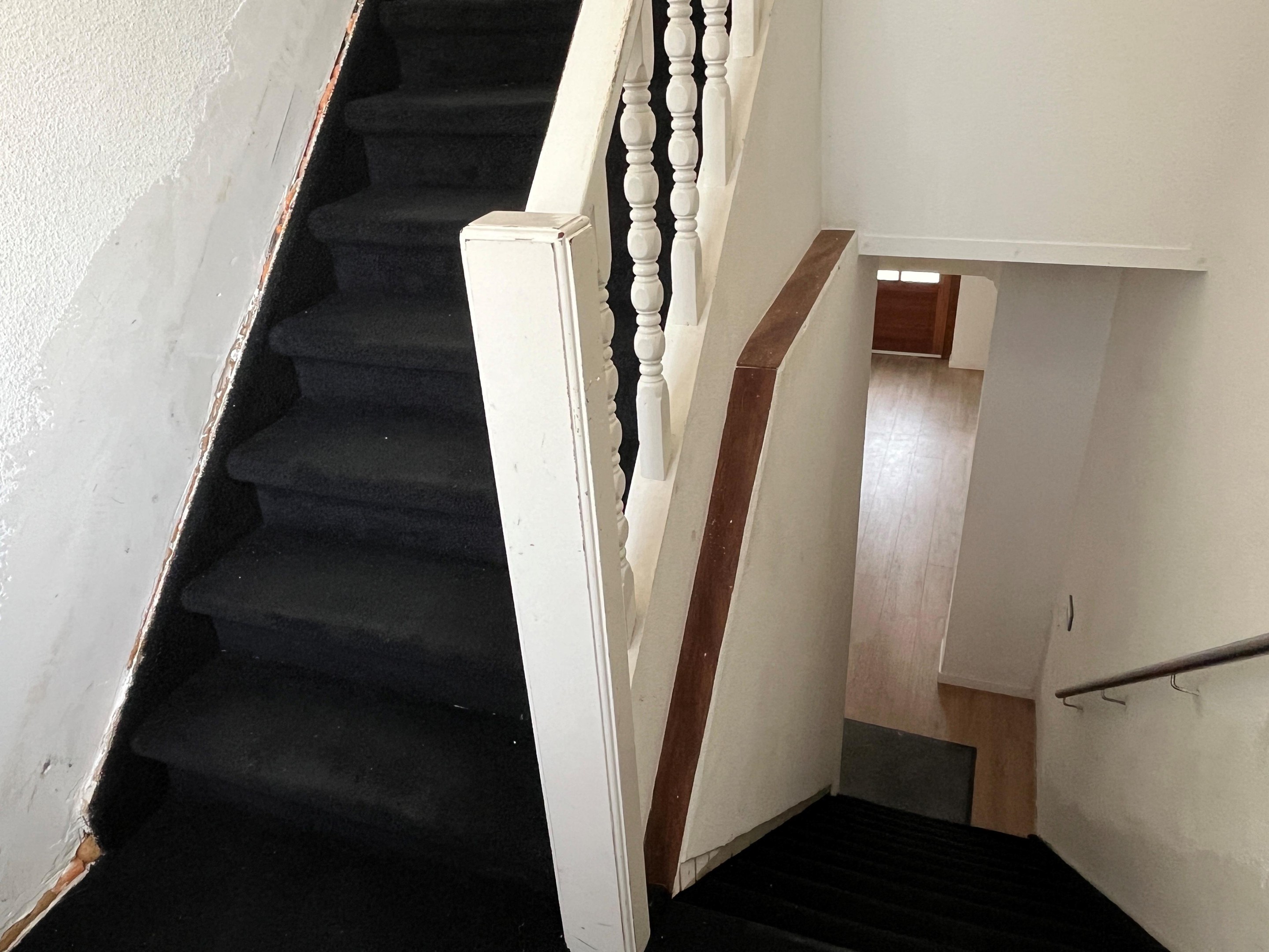 De overloop geeft toegang tot de slaapkamers, cv-ruimte en leefruimte. Tevens trap naar de vliering.