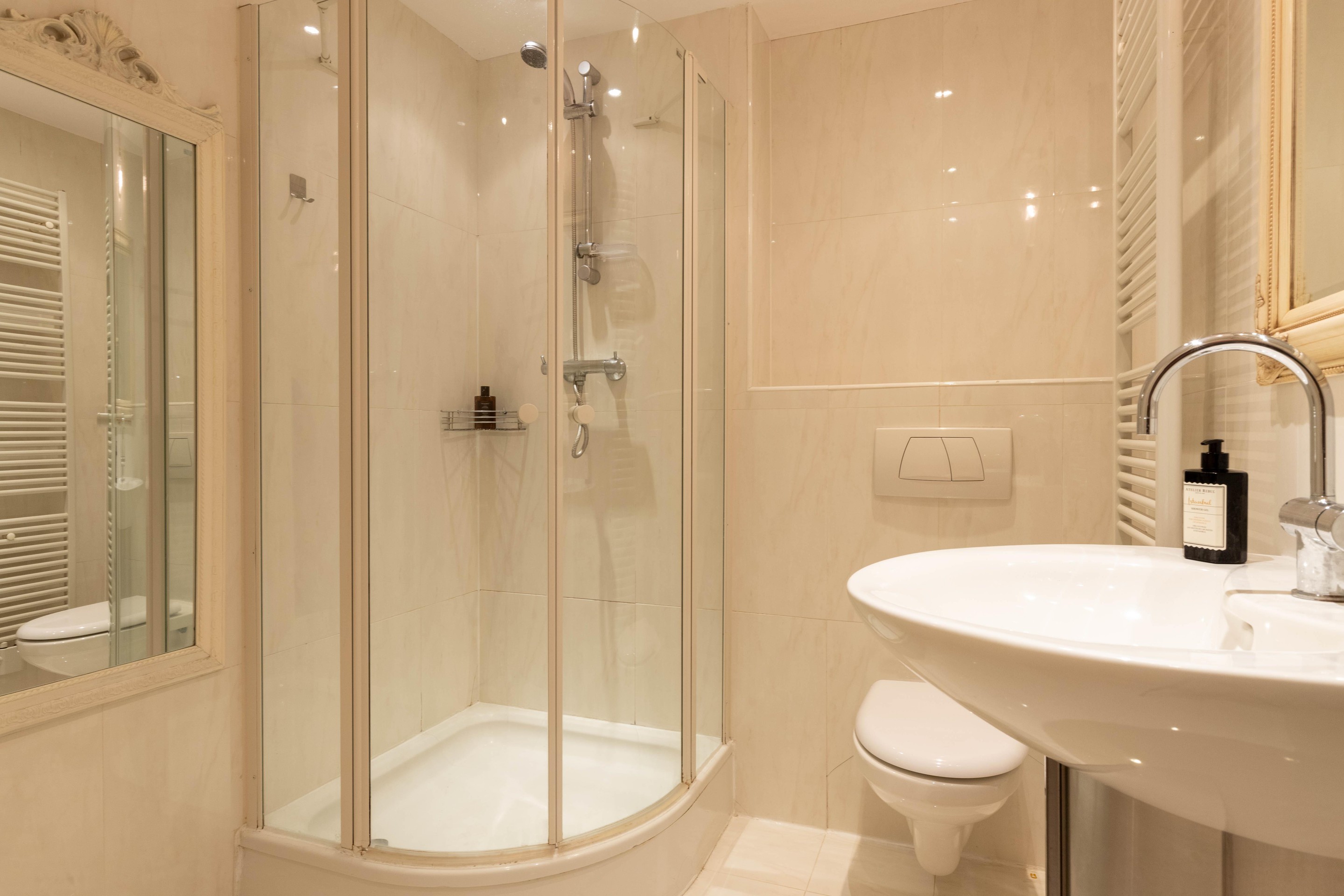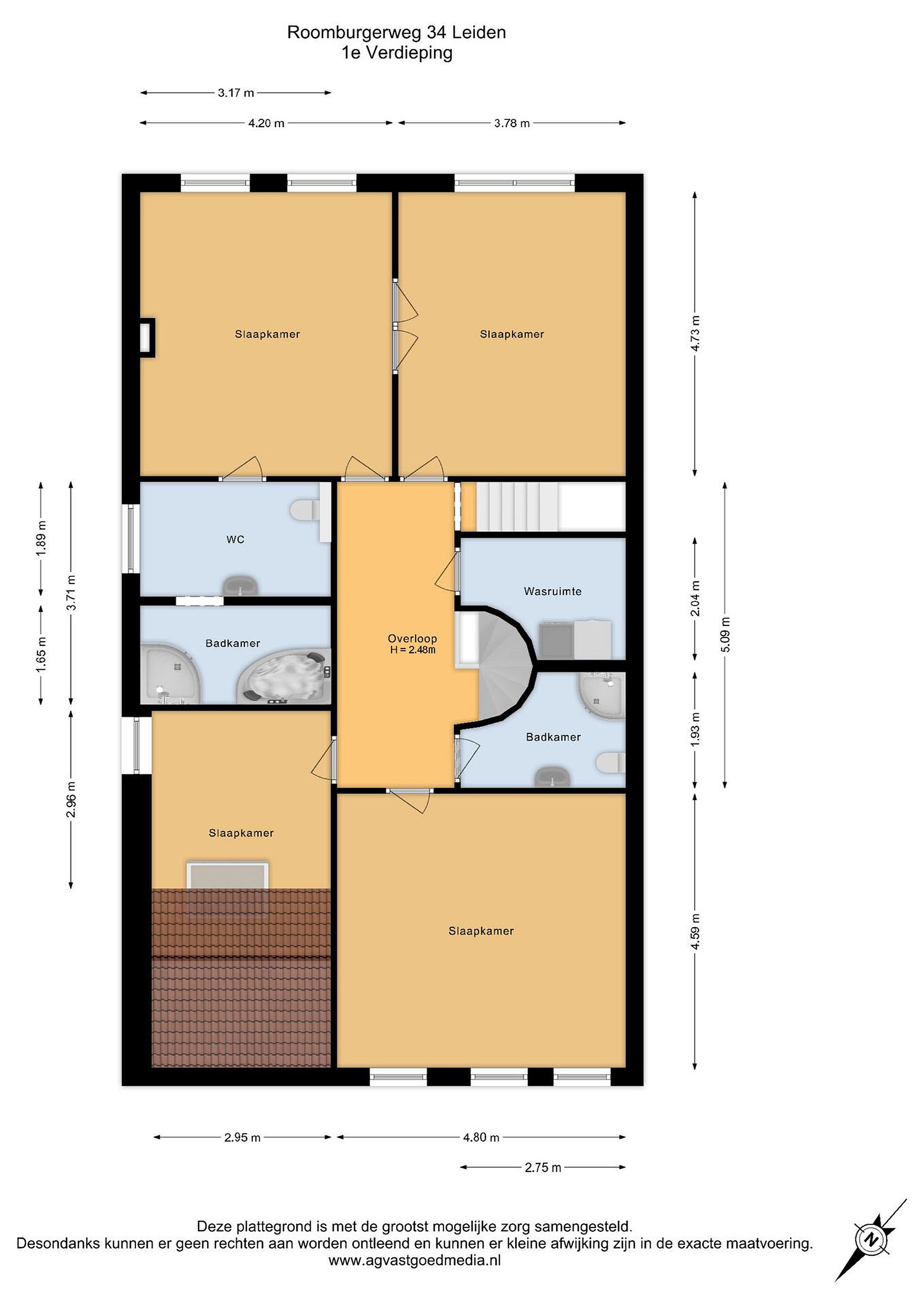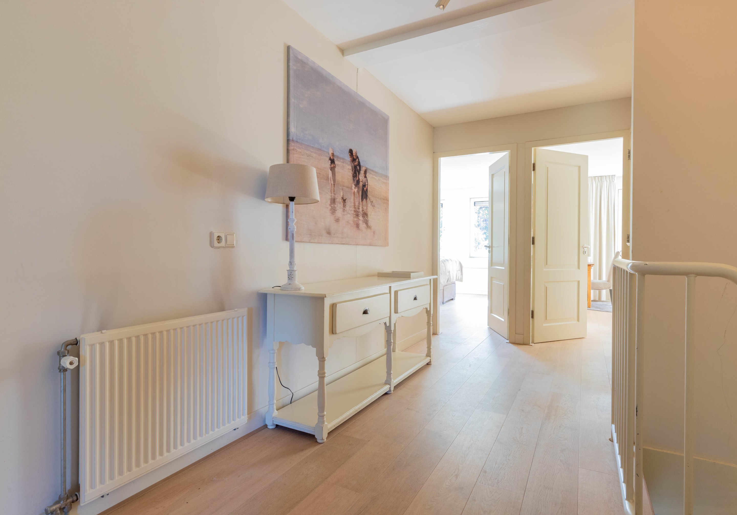 Eerste verdieping Op de royale overloop van de eerste verdieping ervaart u direct de ruime opzet van de woning. De badkamer is van alle gemakken voorzien en uitgerust met een wastafel met stijlvolle onderkast, een douchecabine, een zwevend toilet en een designradiator die zorgt voor extra comfort en warmte.