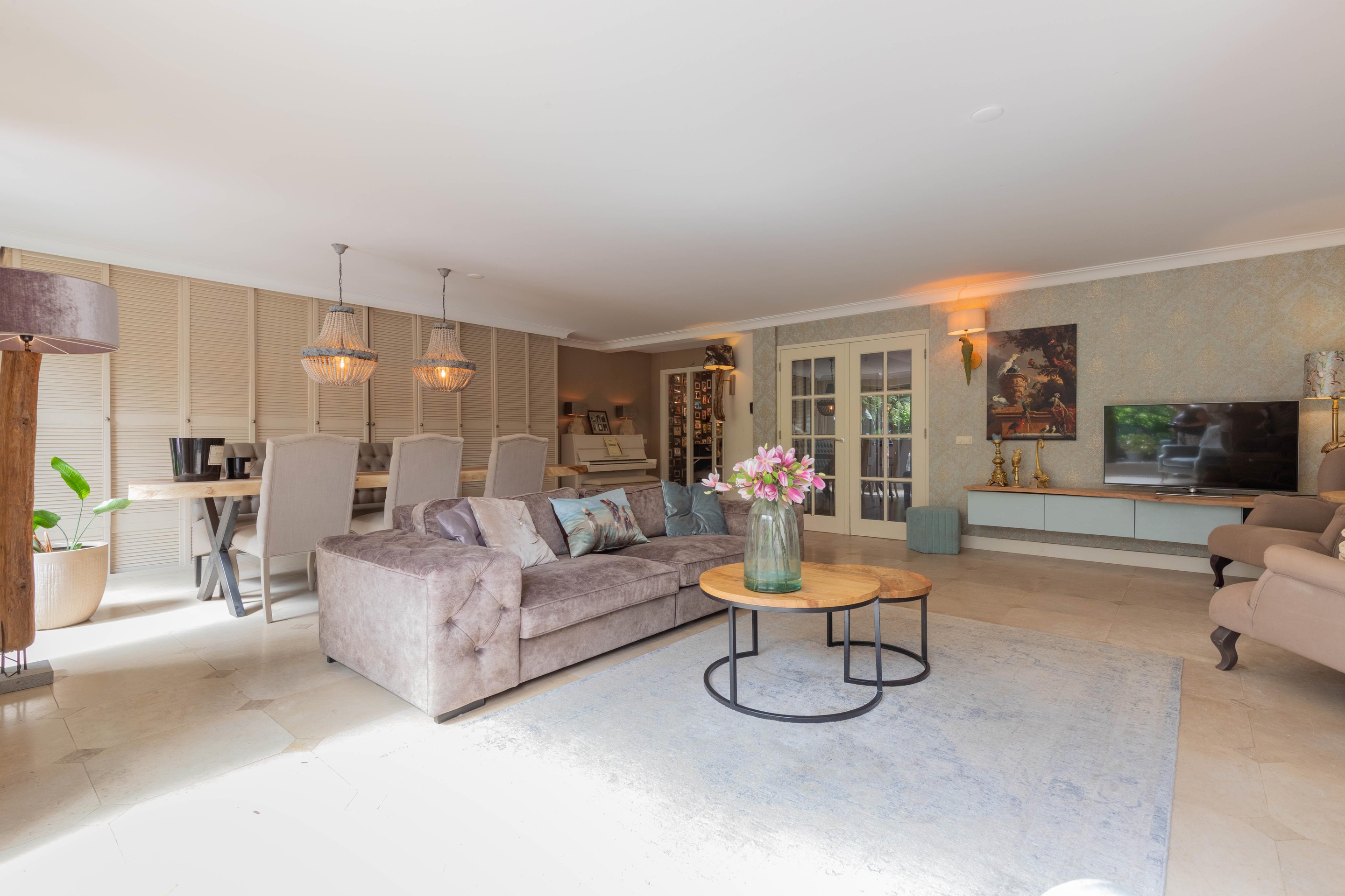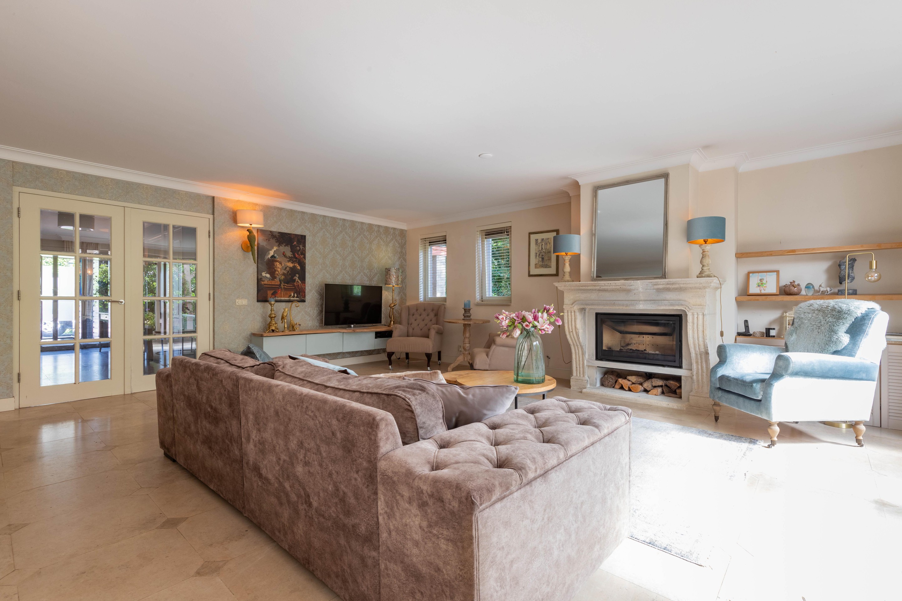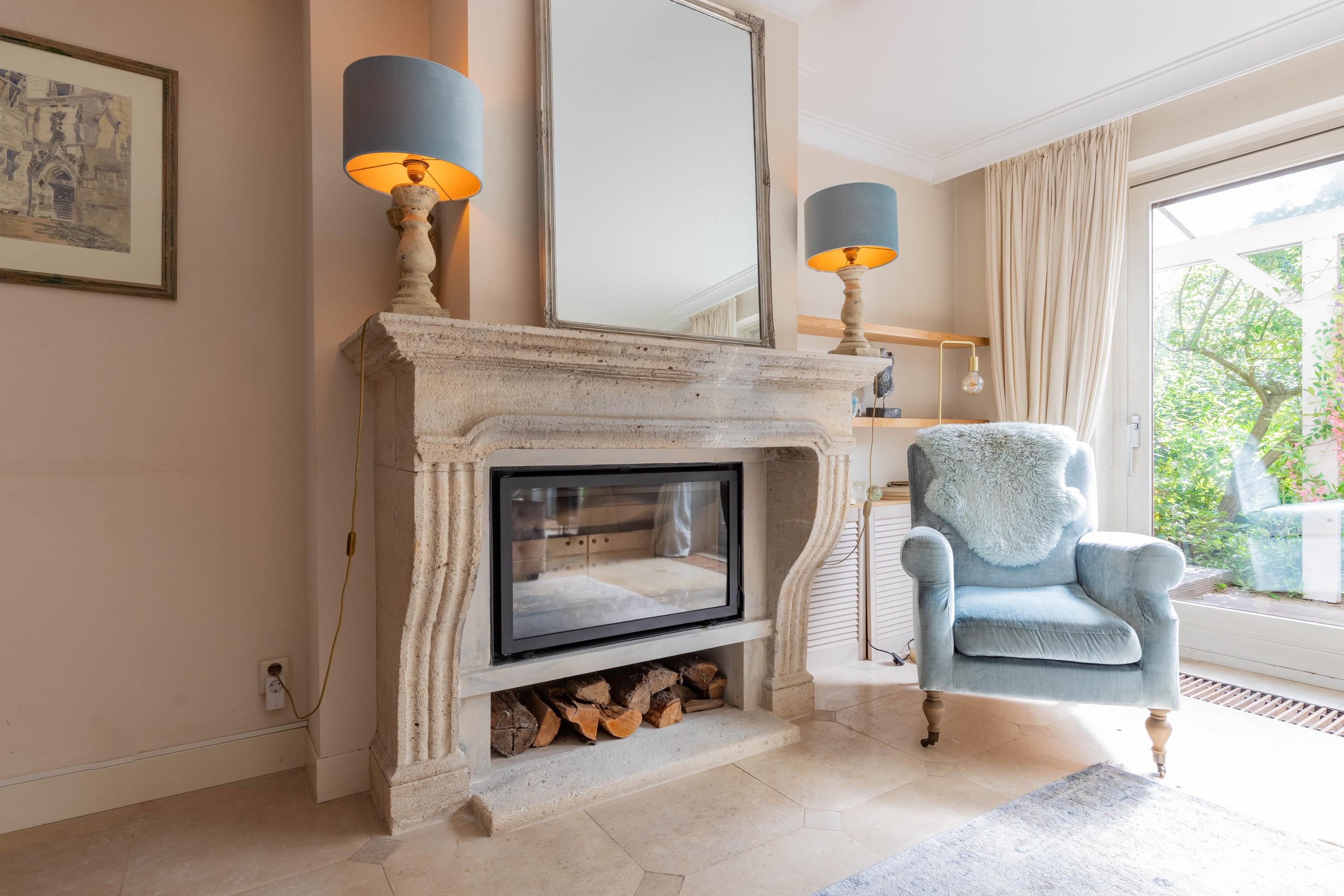 Zowel de hal, de woonkamer als de keuken zijn voorzien van vloerverwarming en een fraaie natuurstenen vloer, wat zorgt voor een aangename warmte en een stijlvolle, uniforme uitstraling. De royale woonkeuken is voorzien van diverse inbouwapparatuur, een ruim werkblad en veel kastruimte. De ruime woonkamer vormt het hart van het huis, waar licht en ruimte harmonieus samenkomen. Grote ramen bieden een prachtig uitzicht op de groene tuin en zorgen voor een aangename, natuurlijke lichtinval. " De woonkamer is verder uitgerust met een schuifpui die toegang biedt tot de fraai aangelegde, zonnige tuin. Hier kunt u ’s ochtends heerlijk ontbijten in één van de knusse zitjes, of na een dag hard werken ontspannen met een goed glas wijn. Binnen vindt u bovendien een fraaie open haard met hoog rendement, afgewerkt met een karakteristieke kalkzandstenen schouw – perfect voor extra sfeer en warmte tijdens de koudere maanden.