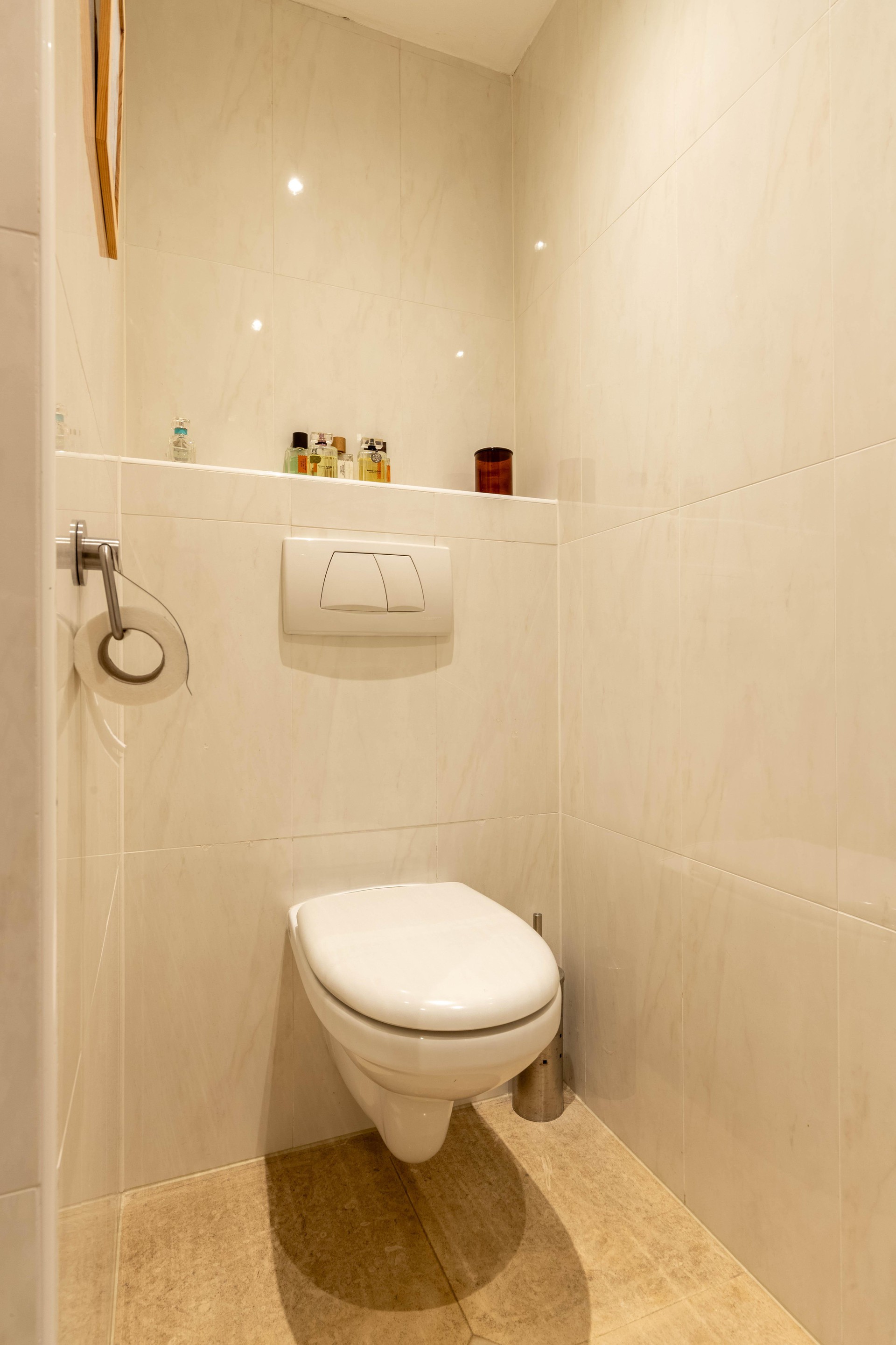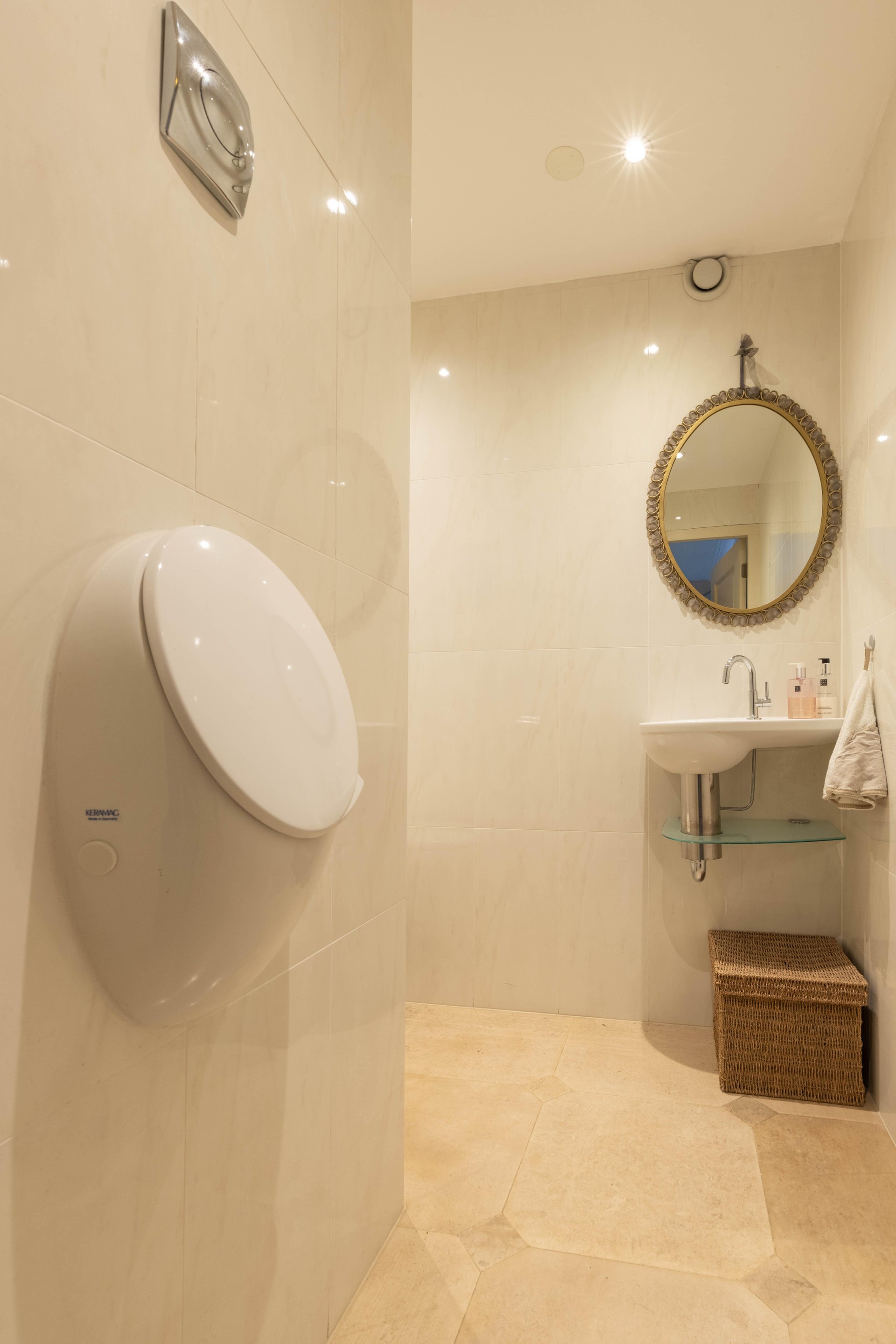 Begane grond Bij binnenkomst wordt u verwelkomd in een royale, lichte hal die direct een gevoel van ruimte en comfort uitstraalt. Hier vindt u de praktische meterkast en heeft u vanuit deze centrale plek toegang tot de grote garage en de kelder. Daarnaast is er een royale, stijlvol afgewerkte toiletruimte met modern zwevend toilet, handig urinoir en elegant fontein, wat een extra vleugje luxe toevoegt. Vanuit de hal heeft u tevens toegang tot de royale woonkeuken, die dankzij de open verbinding een perfecte doorloop biedt naar de woonkamer.