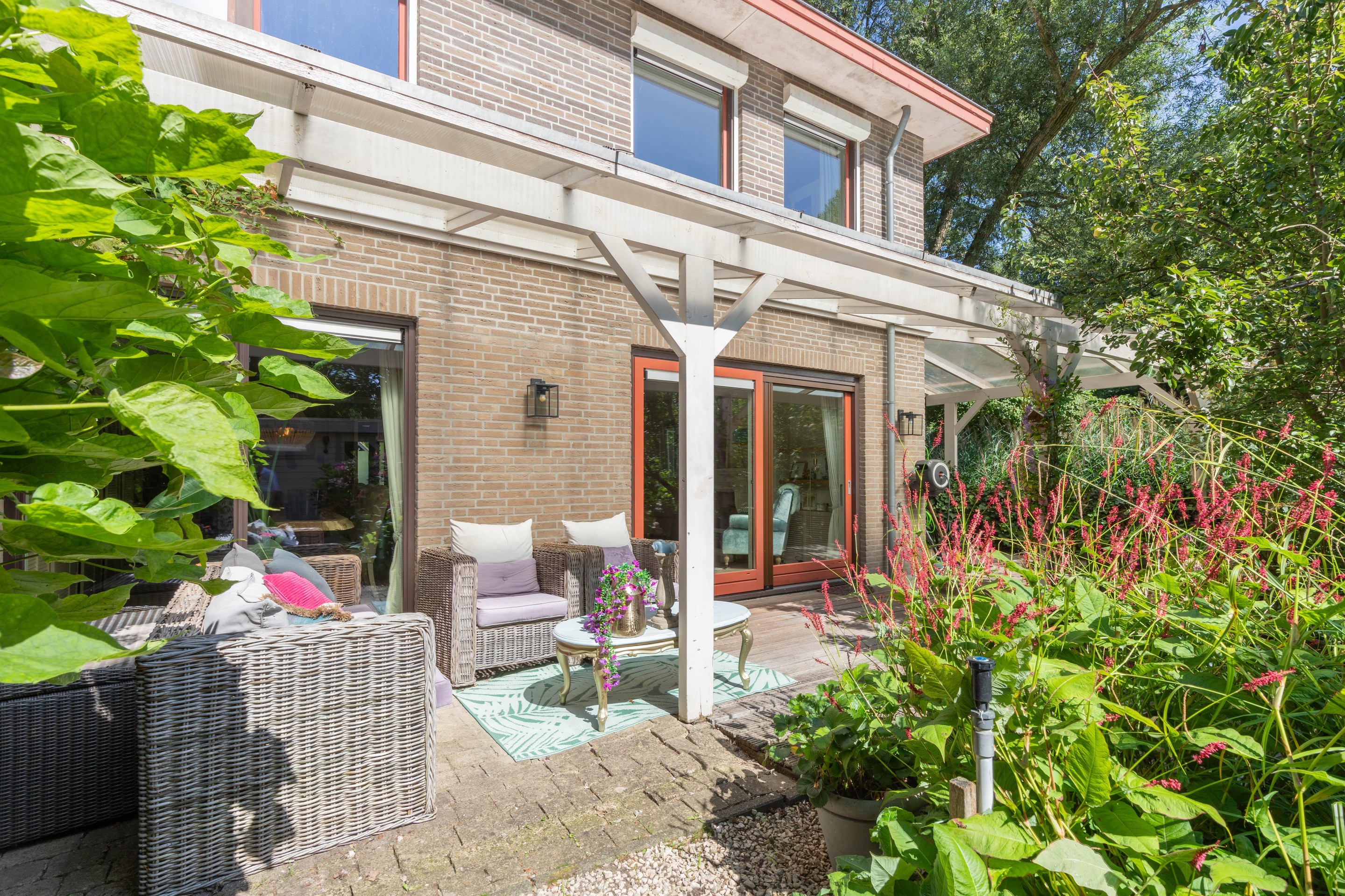 Daarnaast beschikt de woning over een grote garage (ca. 30m2), praktisch en ideaal voor meerdere doeleinden. Tevens is er een kelder, welke zeer geschikt is voor wijnopslag. De tuin beschikt over diverse gezellige zitjes, perfect om de gehele dag te kunnen genieten van de zon en/of de schaduw op te zoeken. Door de vrije ligging wordt u als het ware door het groen omarmt en kunt u heerlijk genieten van het zachte ruisen van de bladeren, het licht dat speels door de takken valt en de geur van verse natuur!