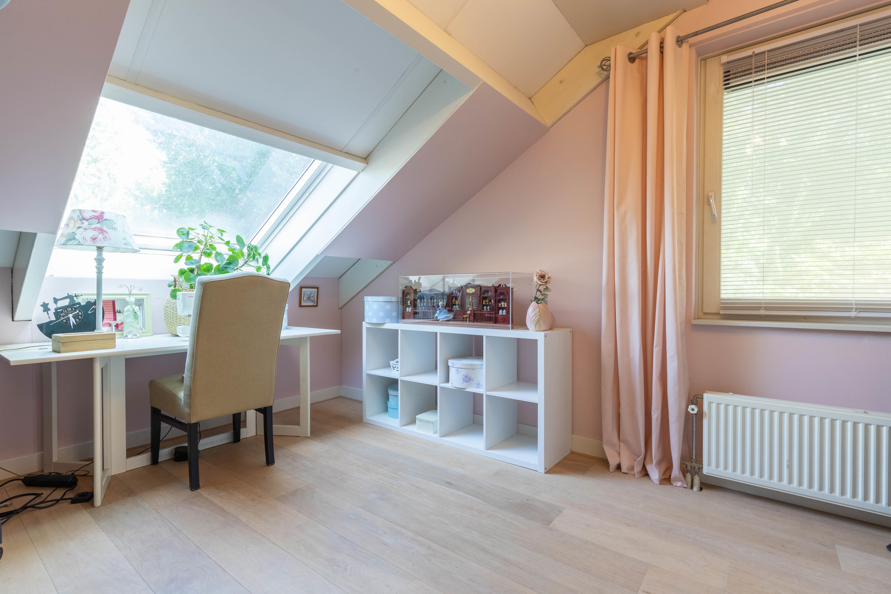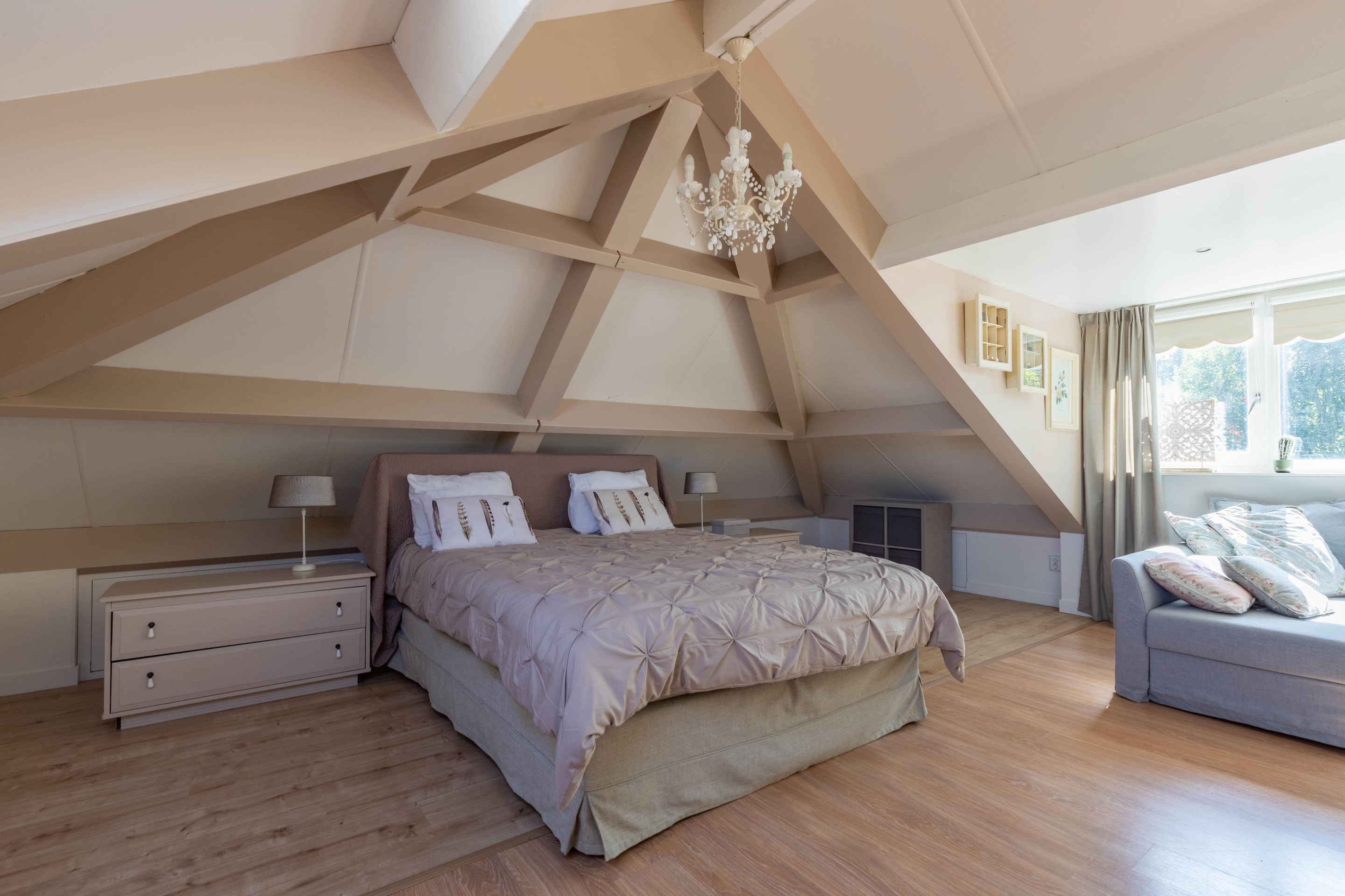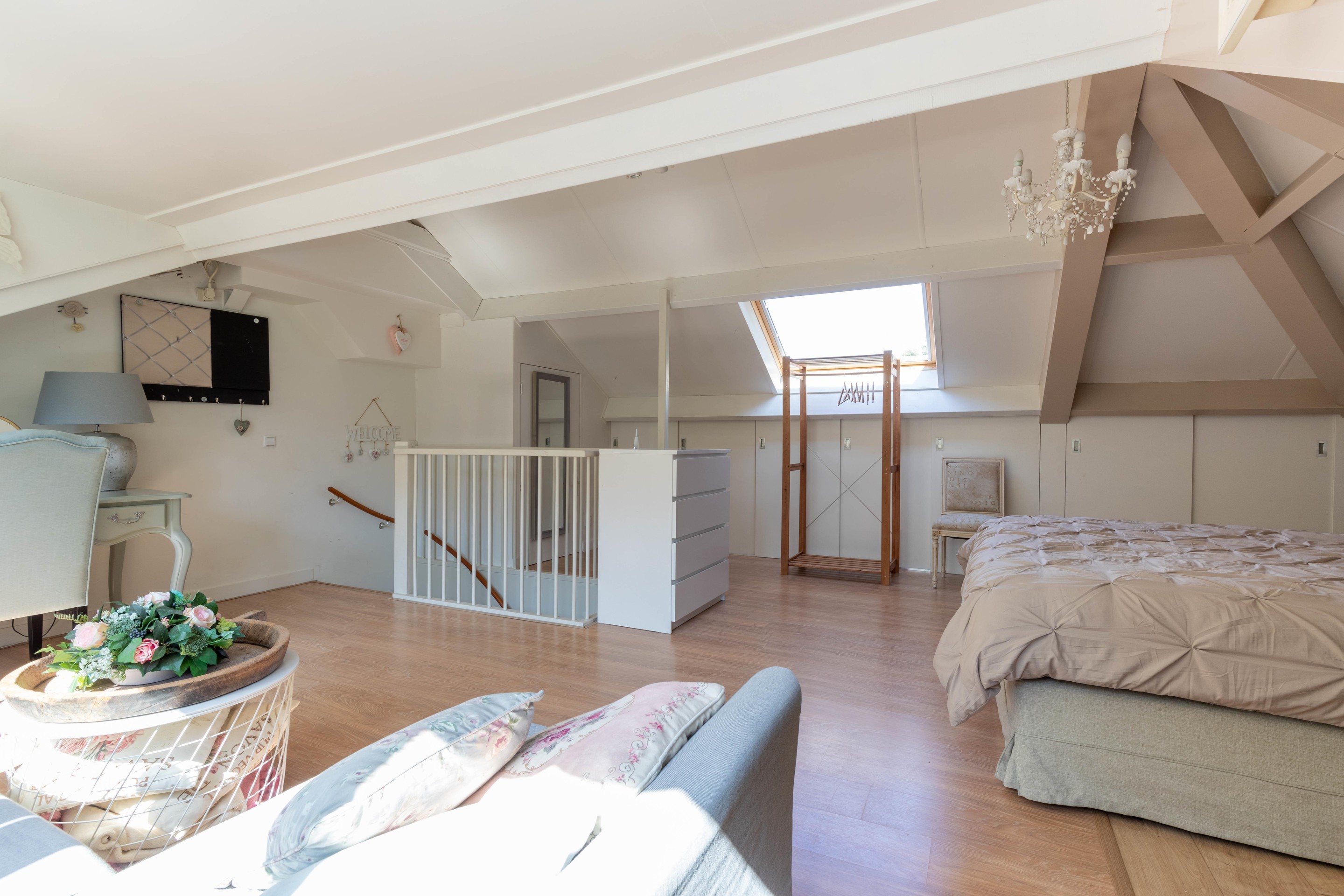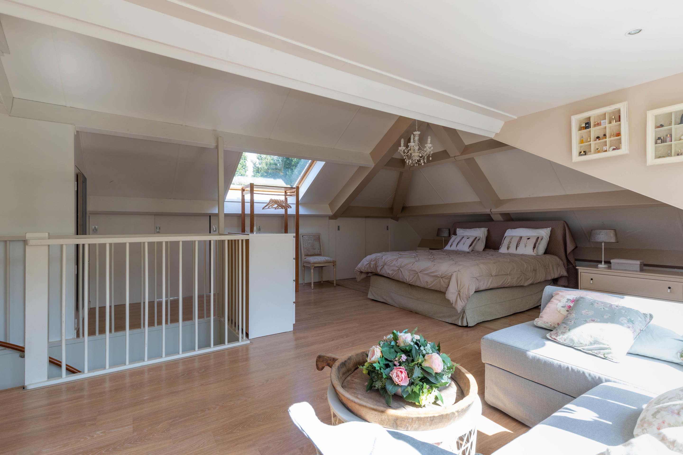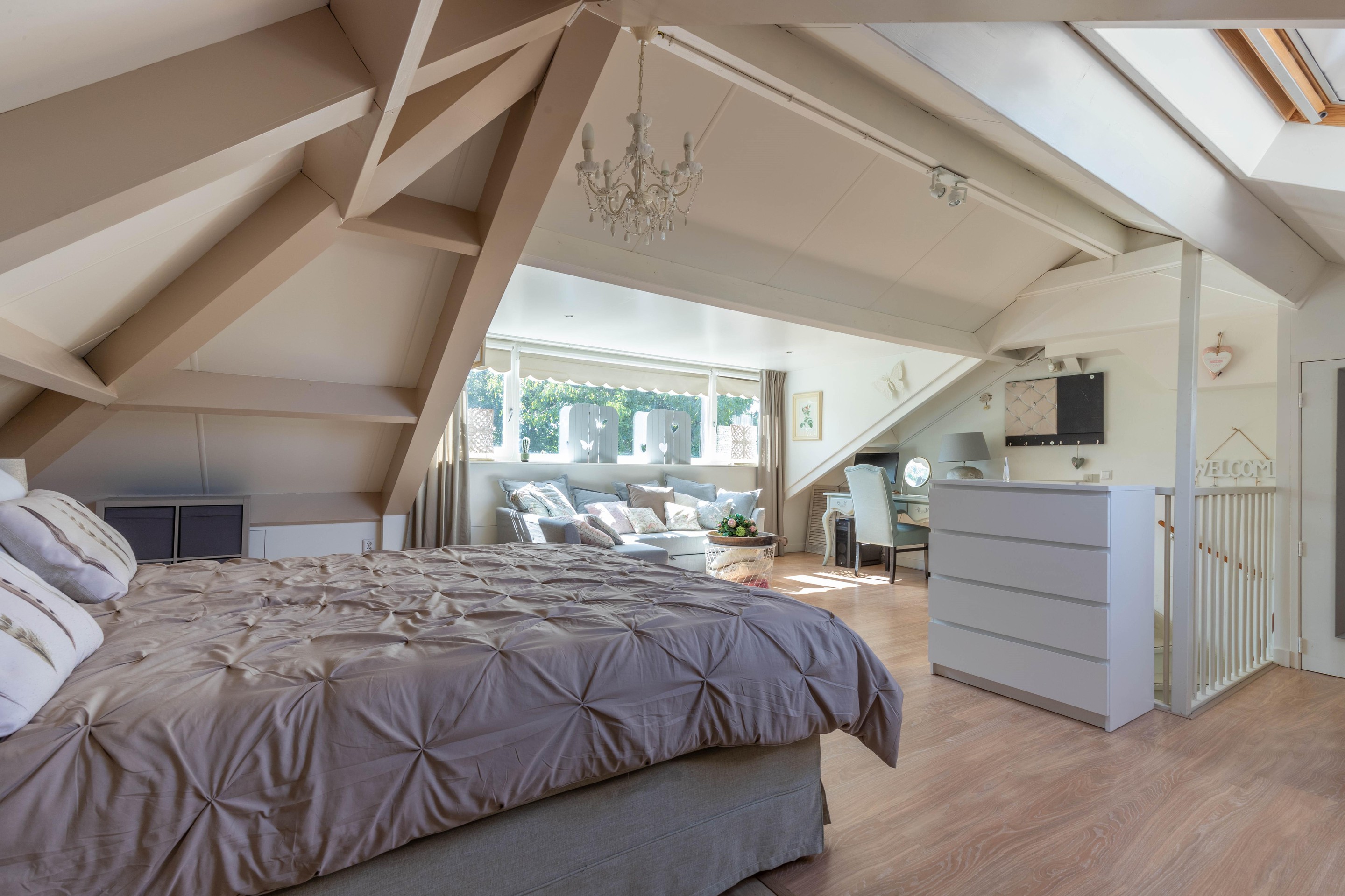 Tweede verdieping Zeer royale en sfeervolle slaapkamer, die dankzij de fraaie kapconstructie, de dakkapel en het Veluxraam een bijzondere uitstraling heeft en heerlijk licht en luchtig aanvoelt. De knusse ambiance maakt dit tot een plek waar u volledig tot rust komt – ideaal als slaapvertrek, inspirerende werkkamer of creatieve studio.