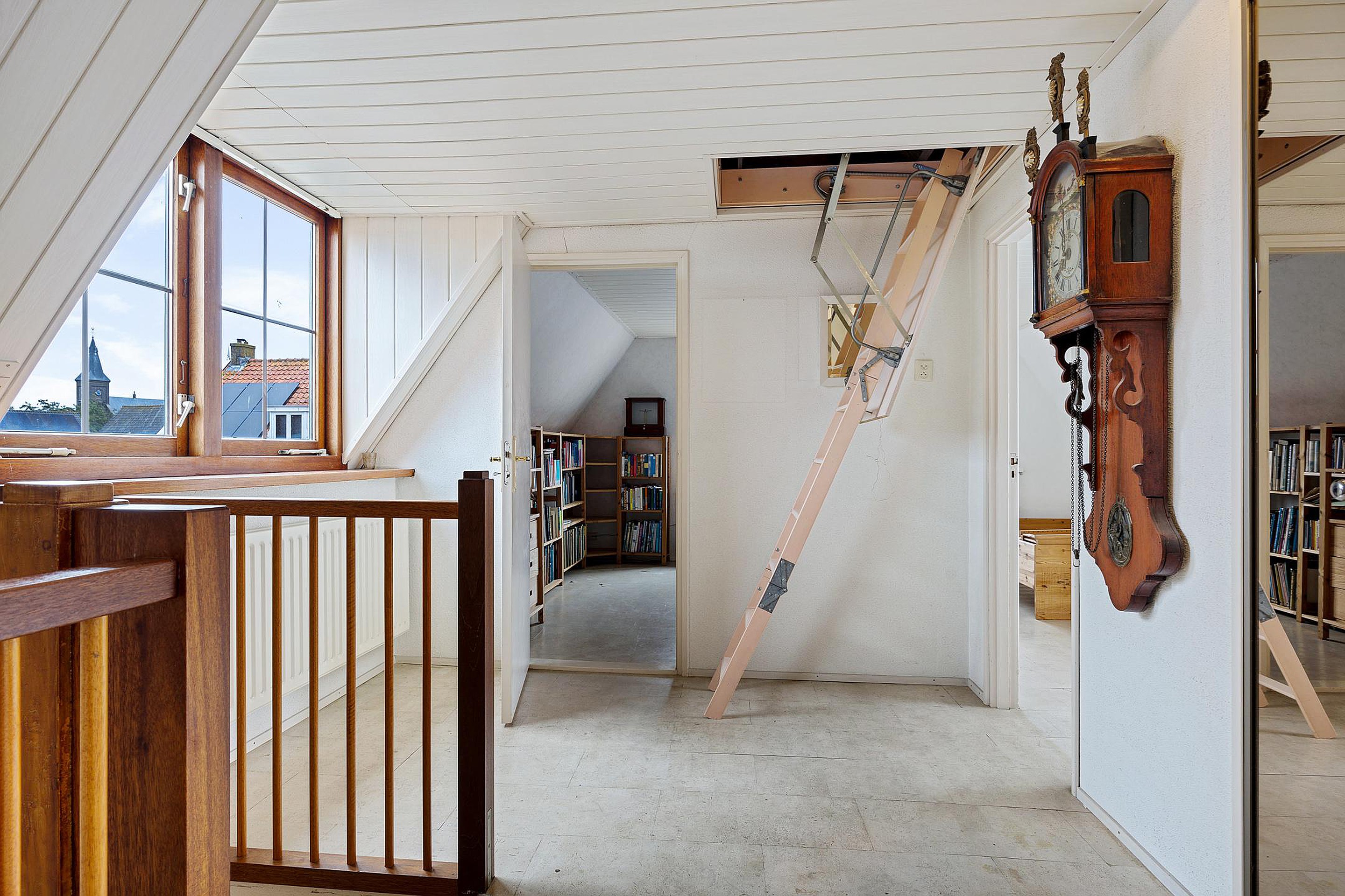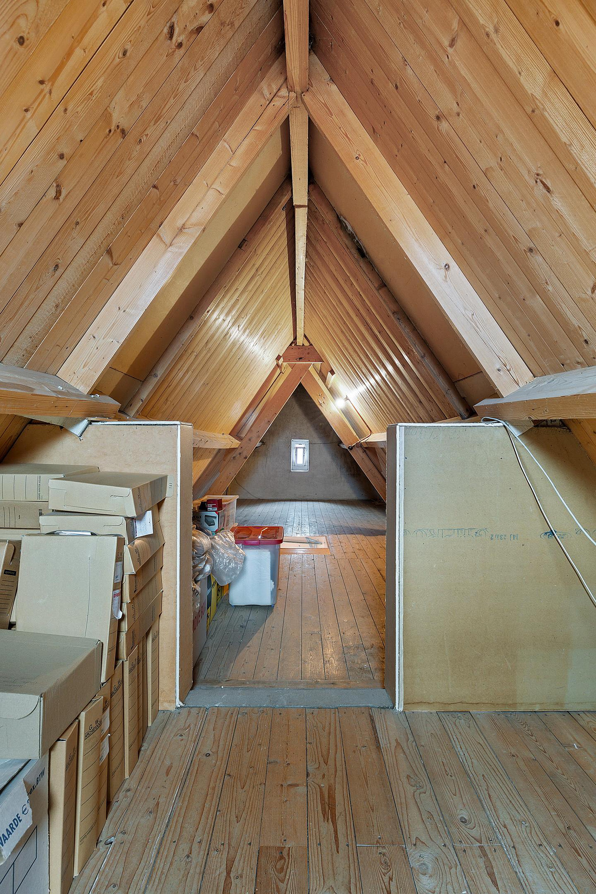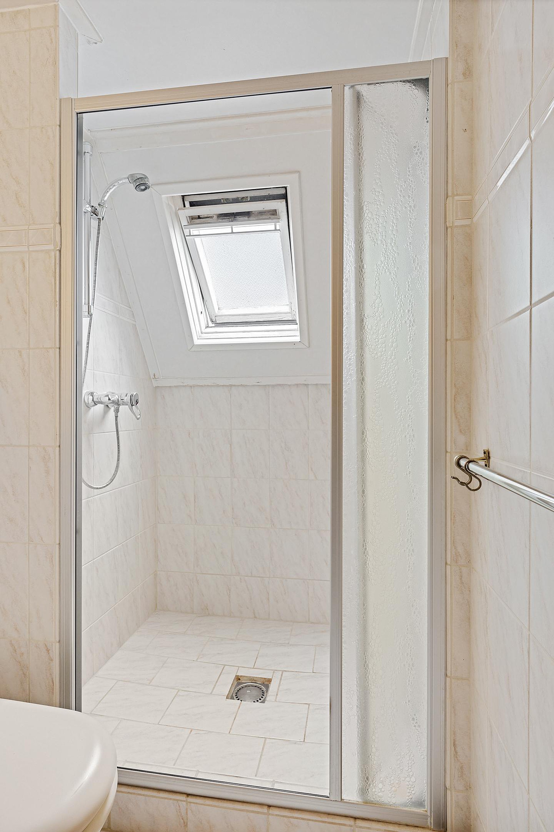 Vanaf de overloop met praktische bergruimte, bereik je de vier slaapkamers en de tweede badkamer. Aan de voorzijde bevinden zich twee kleinere slaapkamers, waarvan één met een extra dakraam en inbouwkast. Aan de achterzijde zijn twee grotere slaapkamers te vinden. De badkamer op de verdieping, voorzien van dakraam, is eenvoudig maar netjes en praktisch qua indeling met een wastafel, tweede toilet en inloopdouche. Ook deze etage biedt potentie voor een vernieuwde indeling en tal van mogelijkheden. Een vlizotrap op de overloop biedt toegang tot de grote zolder met veel opbergruimte en eventueel de mogelijkheid voor een extra kamer, na plaatsing van dakkapellen.