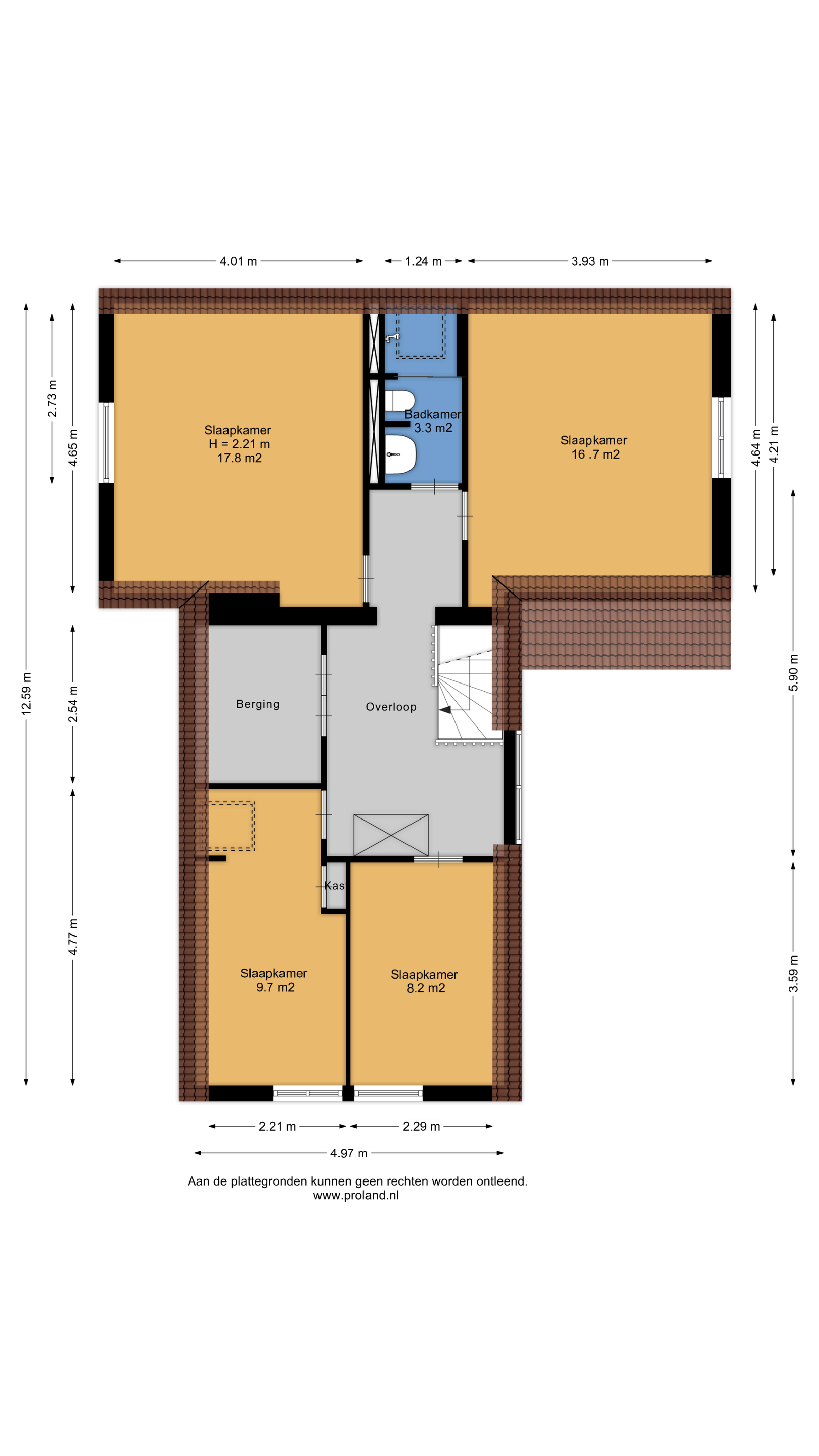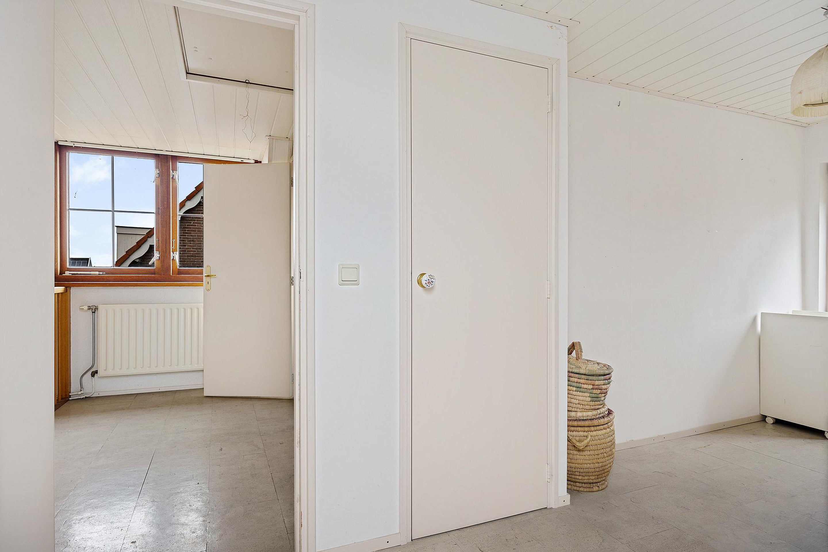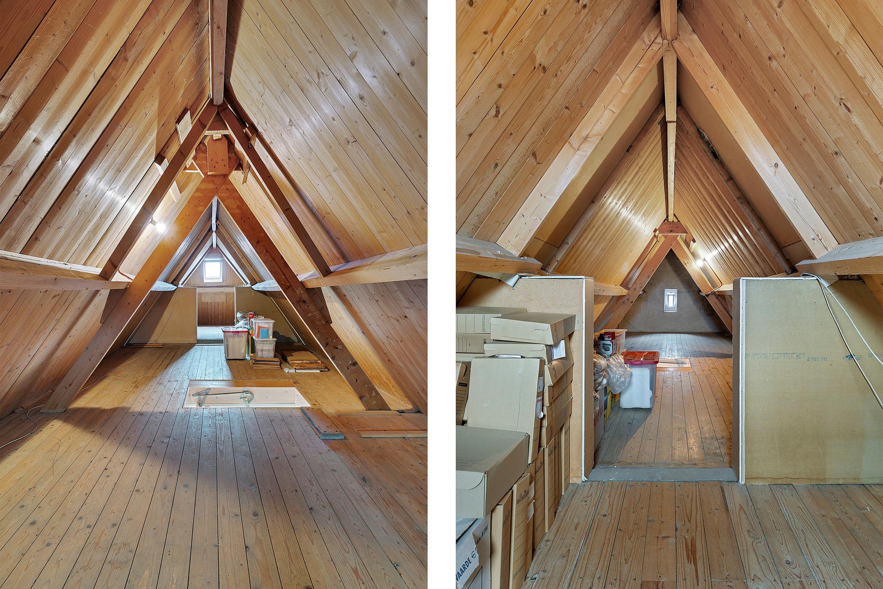 Vanaf de overloop met praktische bergruimte, bereik je de vier slaapkamers en de tweede badkamer. Aan de voorzijde bevinden zich twee kleinere slaapkamers, waarvan één met een extra dakraam en inbouwkast. Aan de achterzijde zijn twee grotere slaapkamers te vinden. De badkamer op de verdieping, voorzien van dakraam, is eenvoudig maar netjes en praktisch qua indeling met een wastafel, tweede toilet en inloopdouche. Ook deze etage biedt potentie voor een vernieuwde indeling en tal van mogelijkheden. Een vlizotrap op de overloop biedt toegang tot de grote zolder met veel opbergruimte en eventueel de mogelijkheid voor een extra kamer, na plaatsing van dakkapellen.