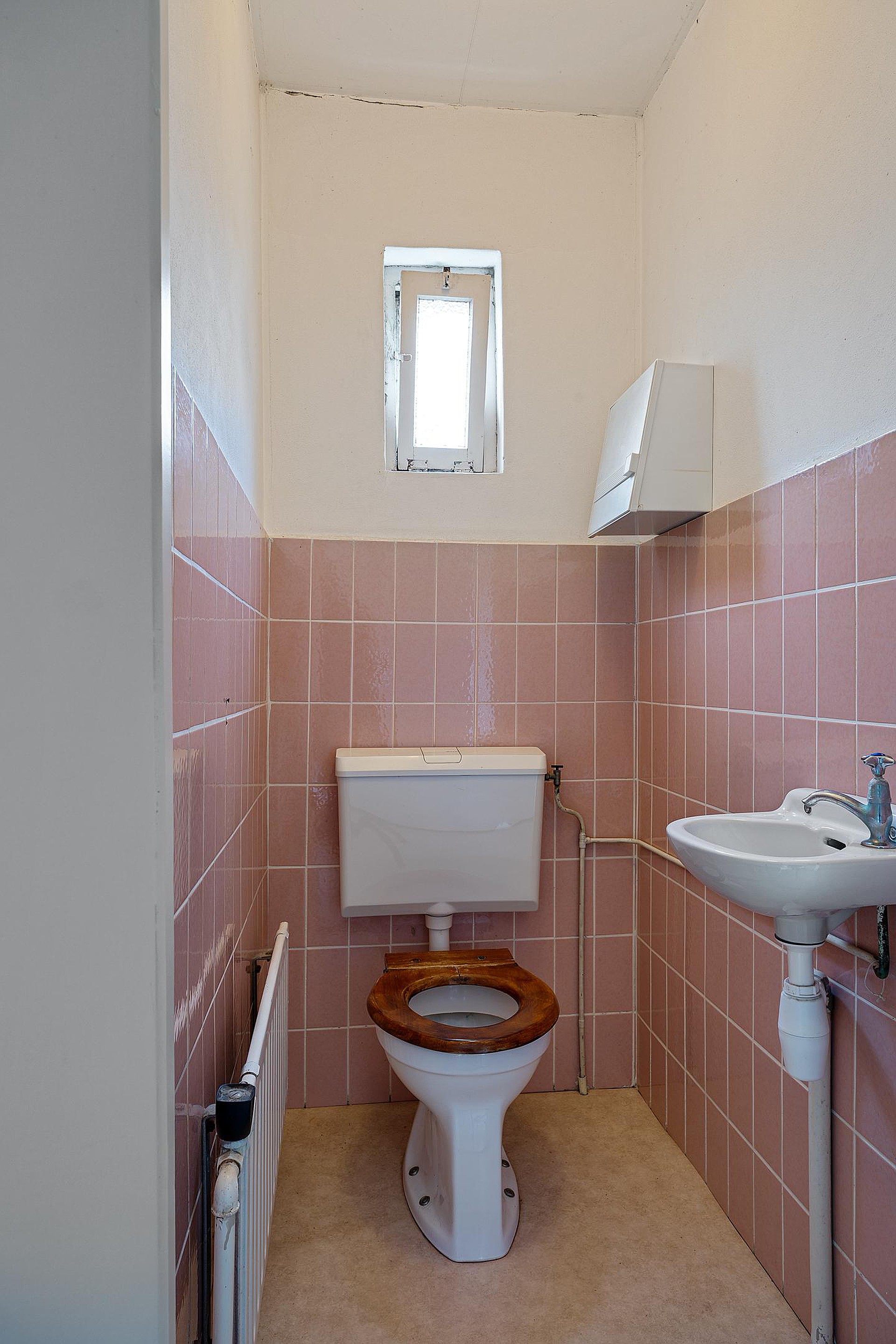 Met een entree in het midden van het huis, worden de vertrekken op de begane grond in tweeën gedeeld. De hal, met eenvoudige toiletruimte met fonteintje, meterkast en trapopgang, biedt toegang tot al deze ruimtes. Aan de voorzijde, met zicht op de groene voortuin en de straat, is een bijna 30m2 grote woonkamer met ramen aan twee zijden te vinden. Vanuit de woonkamer is de praktische trapkast bereikbaar. Aan de hal is ook de eerste badkamer te vinden. Gedateerd, maar met voldoende ruimte voor een douche en wastafel met meubel. Deze badkamer heeft nu nog 2 deuren, waarvan er eentje in de bijkeuken uitkomt. Maak je die deur dicht, dan is er ruimte voor bijvoorbeeld een dubbele wastafel met meubel en een royalere douche.