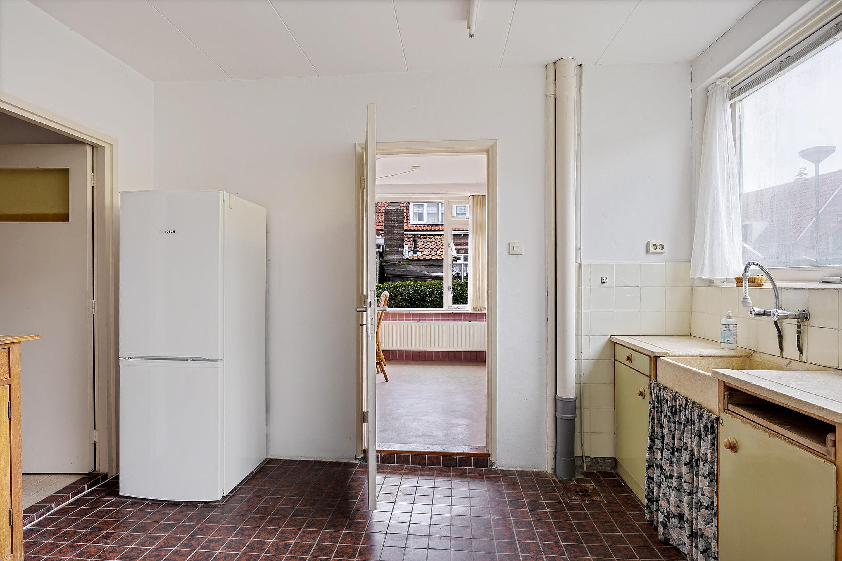 Aan de tuingerichte achterzijde is een praktisch bemeten, verouderde keukenruimte te vinden, die aansluit op de naastgelegen bijkeuken met aansluiting voor de wasmachine. Beide ruimtes hebben de potentie om, na verbouwing, samen een heerlijke grote woonkeuken te worden. Vanuit de bijkeuken bereik je de verwarmde, inpandige garage met toegang tot de kelder. Hier is de recente Cv-ketel (Nefit, 2022) te vinden. Vanuit de garage bereik je de achtergelegen tuin.