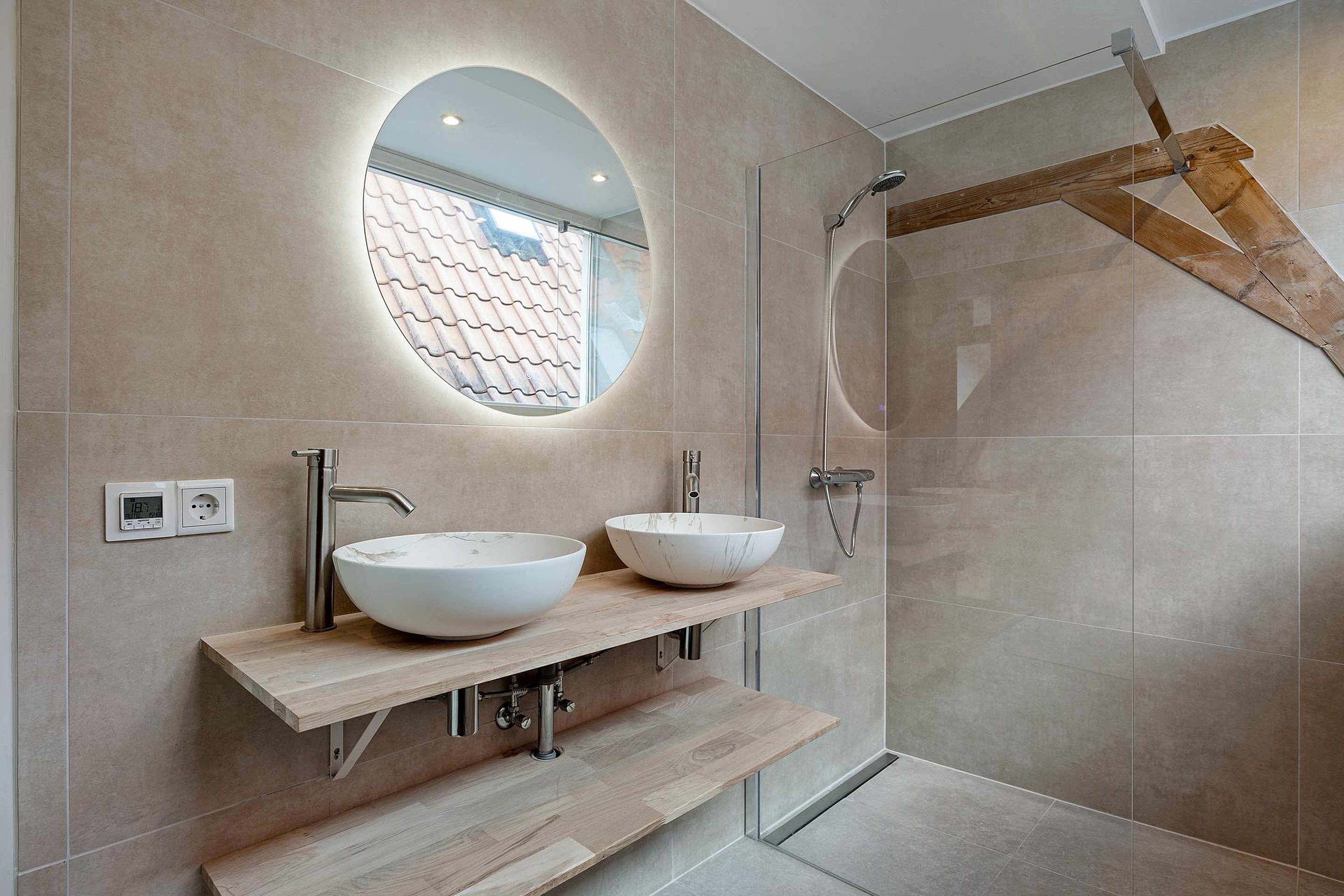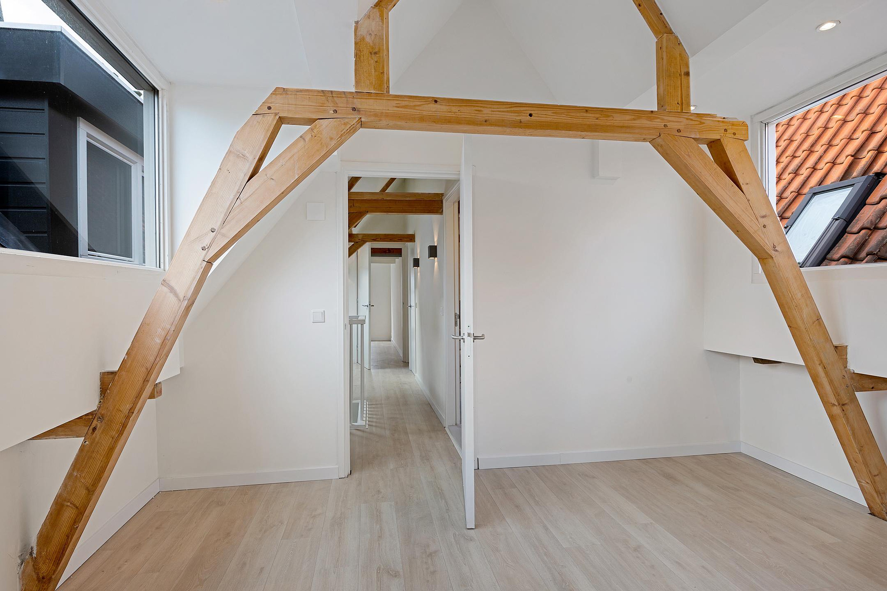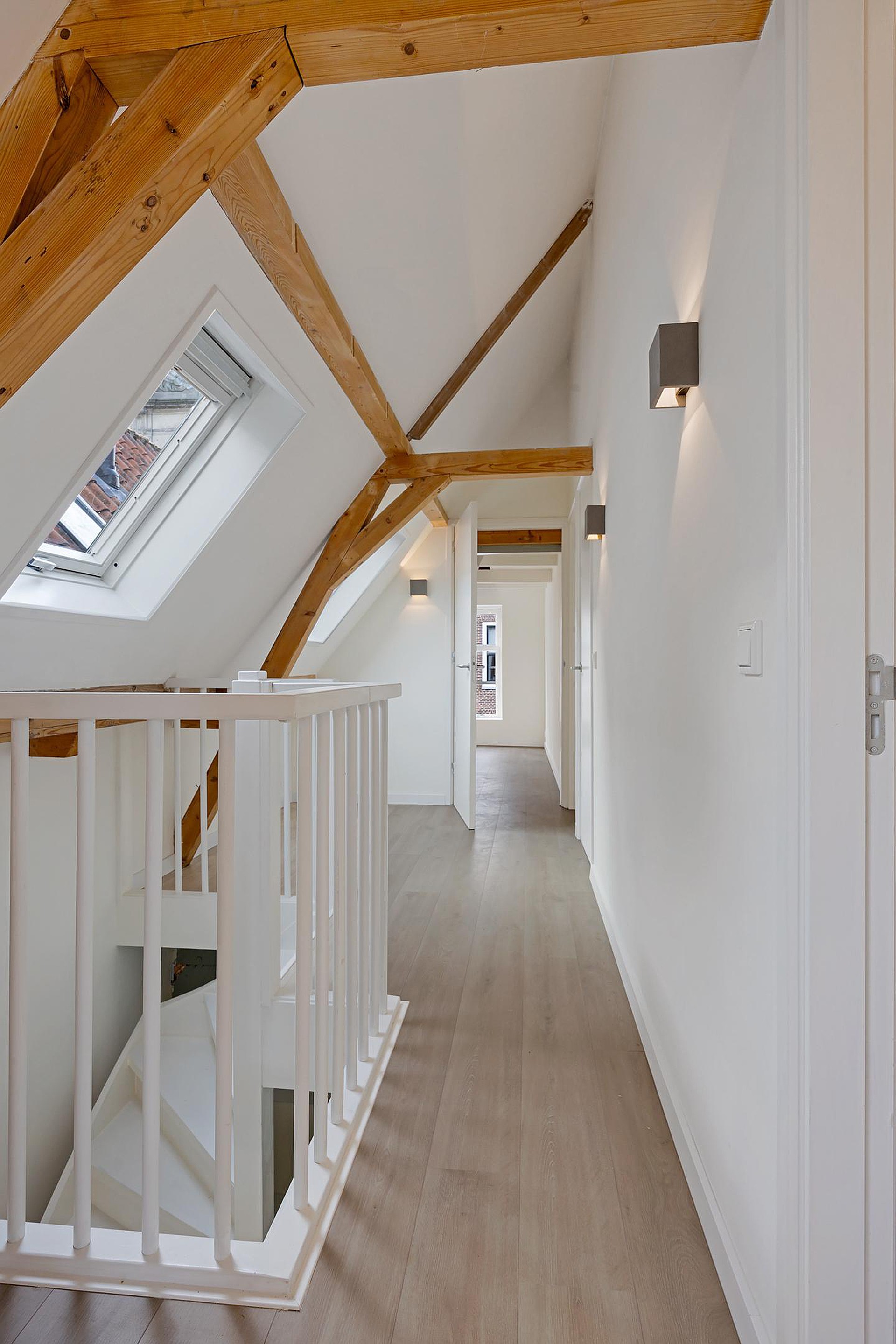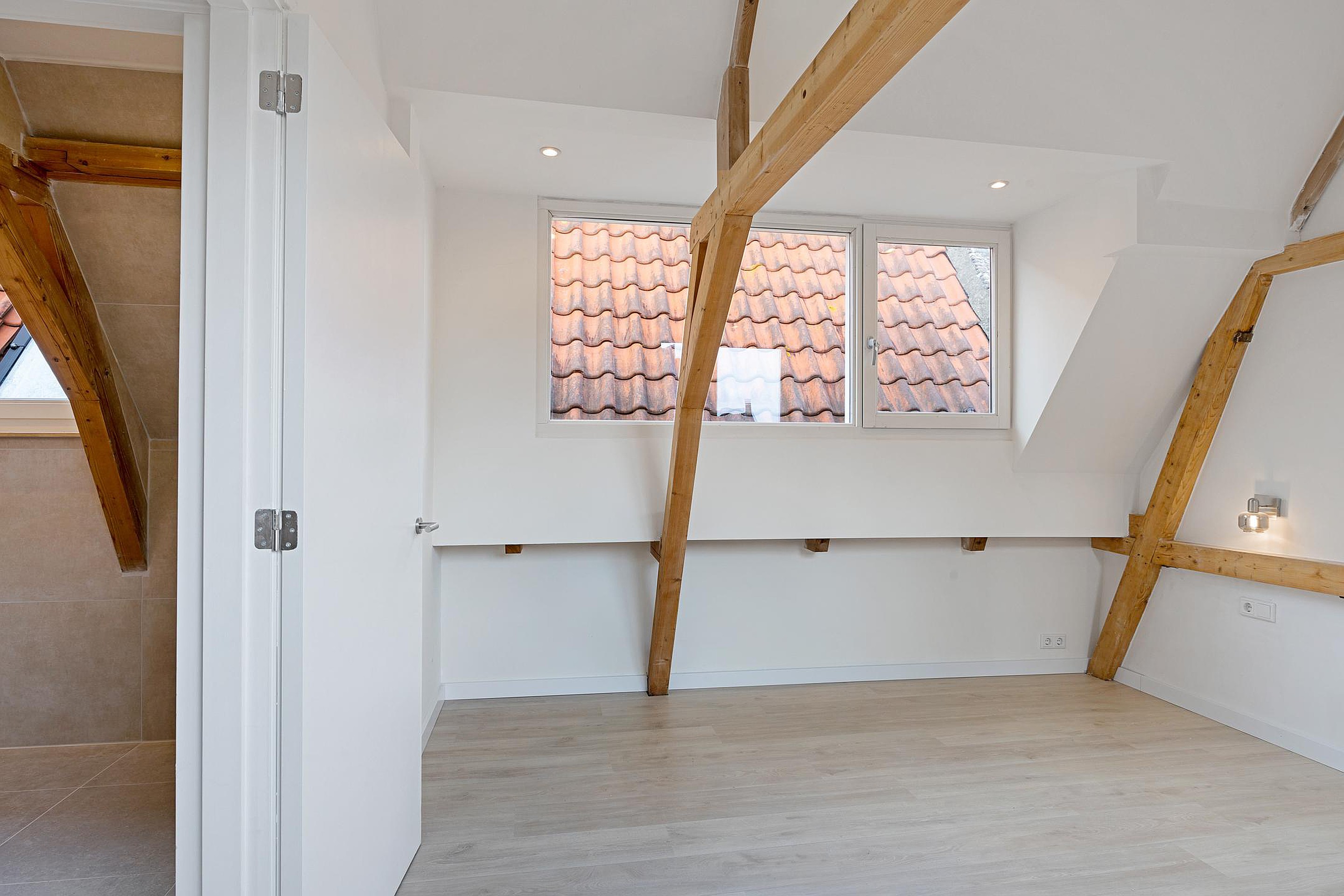 De overloop op de eerste etage heeft daglicht dankzij de dakramen en ook hier is de combinatie van oud met nieuw mooi zichtbaar. Ook op deze etage is het comfortabel dankzij vloerverwarming onder de houtlook vloer. Vanaf de overloop bereik je alle vertrekken. De ouderslaapkamer is gelegen aan de rustige achterzijde. De fraaie dakconstructie is hier in het zicht gelaten. Aan de voorzijde bevinden zich 2 ruime slaapkamers, waarvan één met een verrassende trap naar de nokverdieping. Hierdoor is een mooie extra ruimte gecreëerd: een leuke slaapplek of speelplek voor de kinderen. Hier is ook de Cv-ketel te vinden (Intergas, 2025). De moderne badkamer heeft een royale inloopdouche, dubbele wastafel en een tweede toilet. Tot slot is er aan de overloop nog een wasruimte gerealiseerd, met aansluiting voor wasmachine en droger.