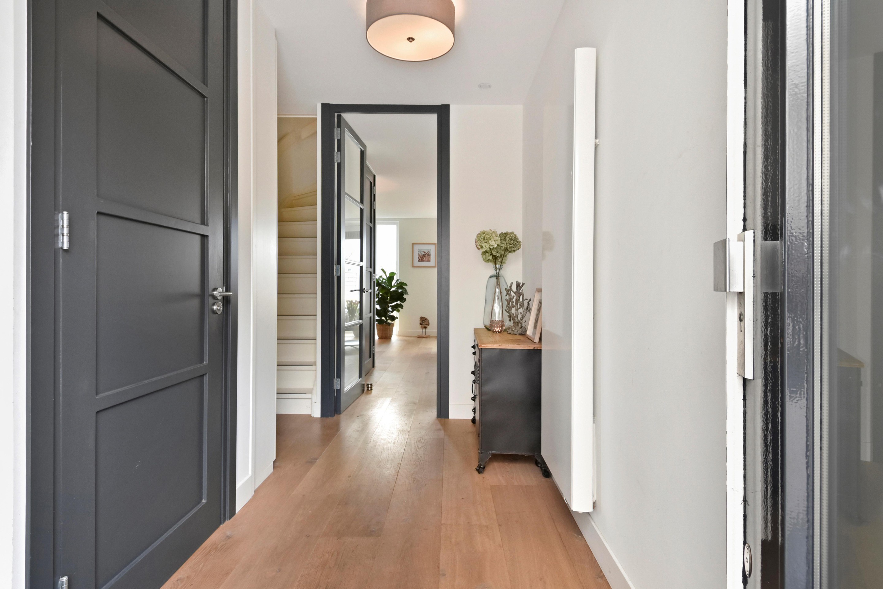Volledig instapklaar herenhuis met eigen parkeerplaats en diepe achtertuin grenzend aan doorgaand vaarwater.