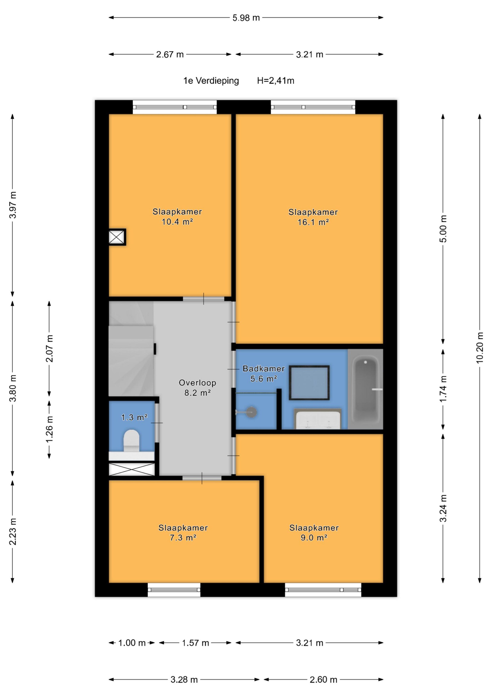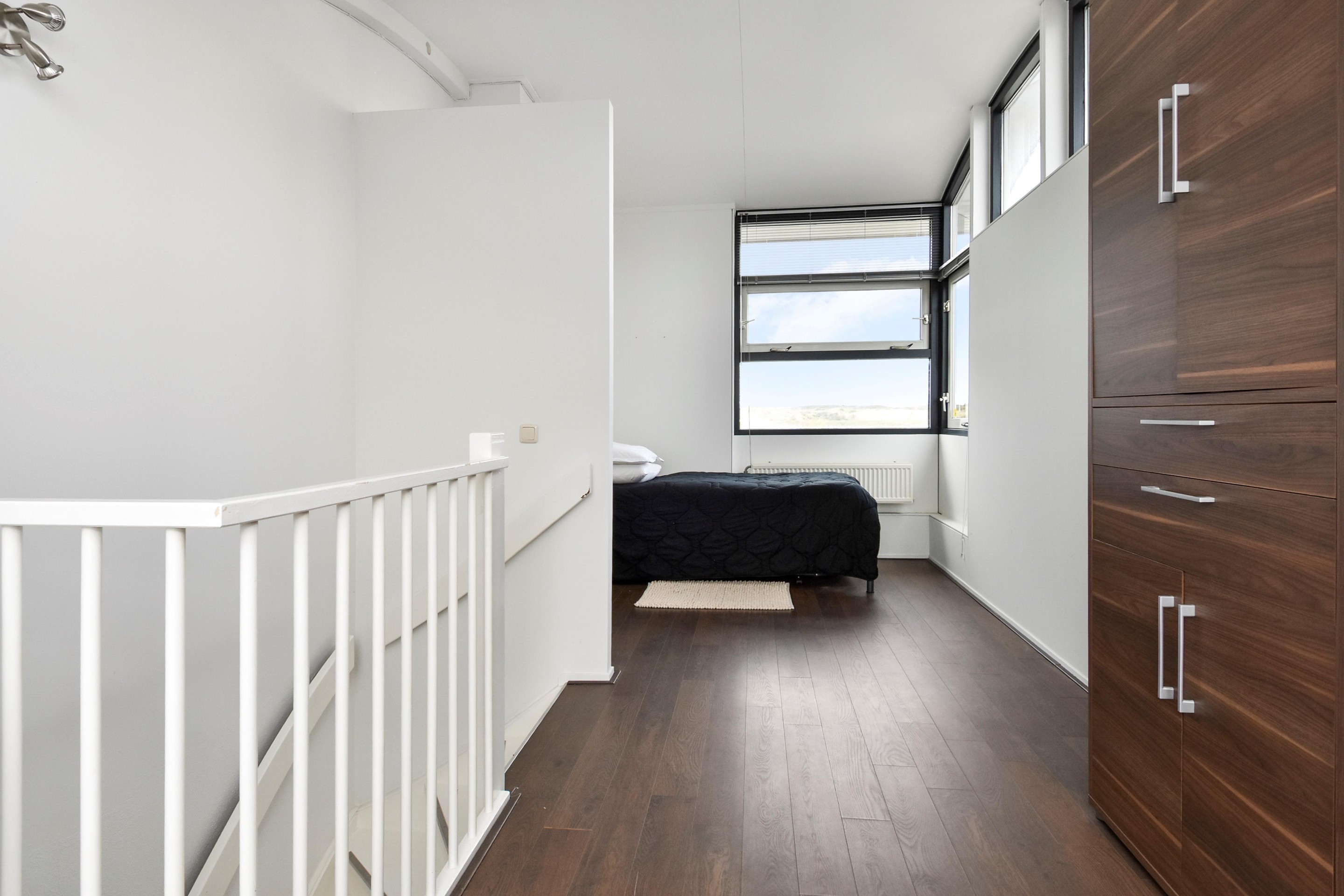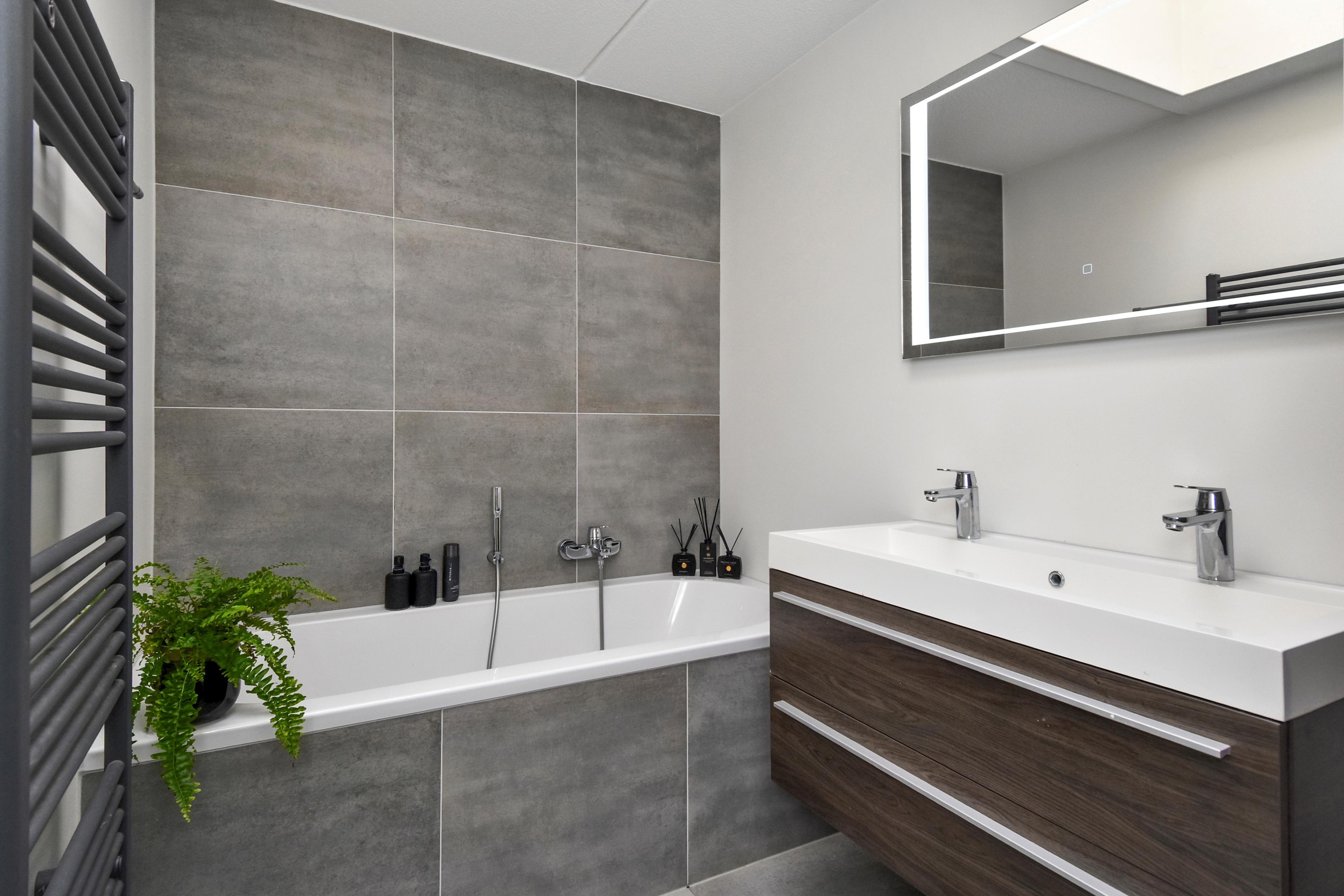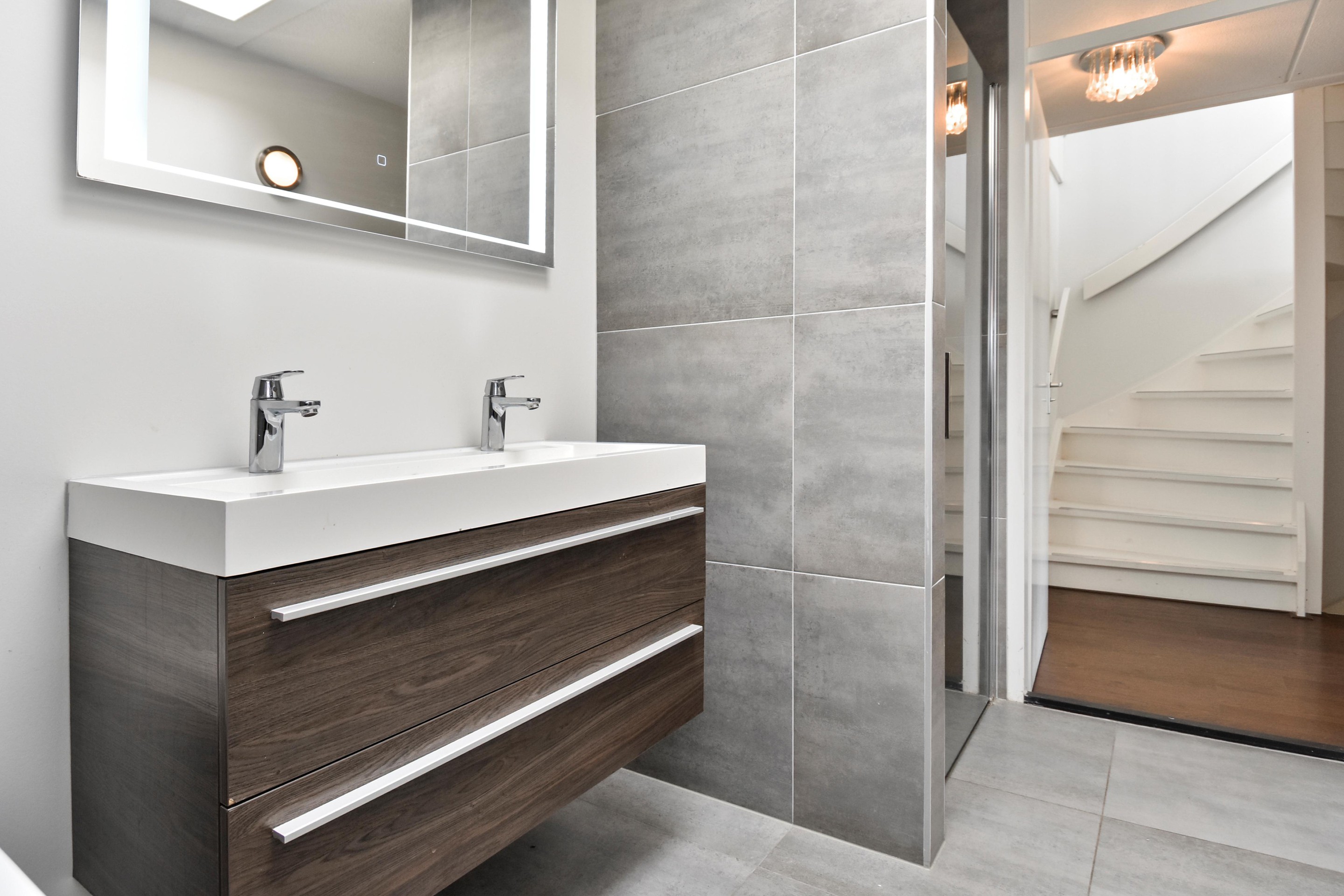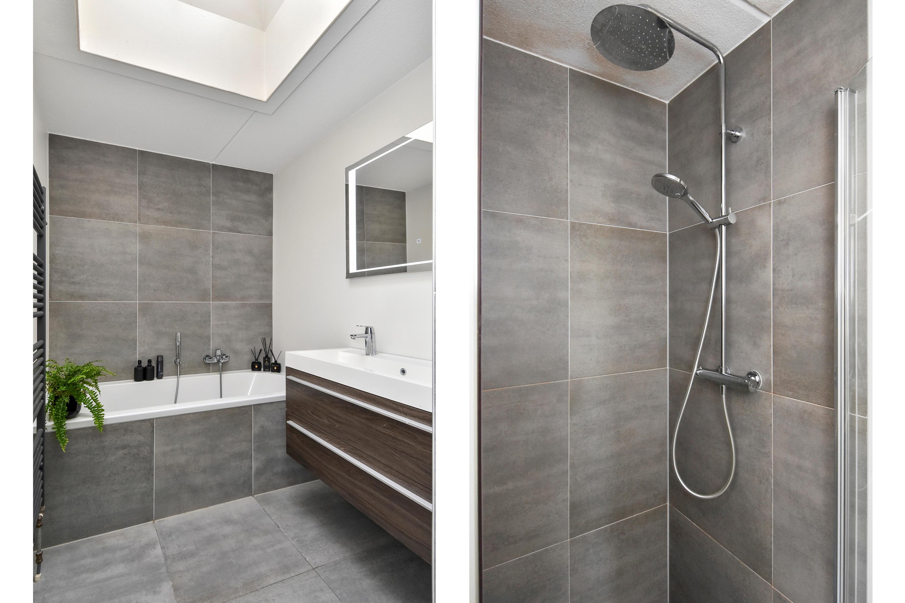 Ruime overloop welke toegang biedt tot separaat modern toilet met fontein en 4 slaapkamers. Aan de achterzijde is de hoofdslaapkamer te vinden met een naast gelegen tweede slaapkamer. Tussen gelegen moderne badkamer uitgevoerd met grijze wand- en vloertegels en voorzien van inloopdouche, ligbad, wastafelmeubel met dubbele mengkranen en een dakraam.
