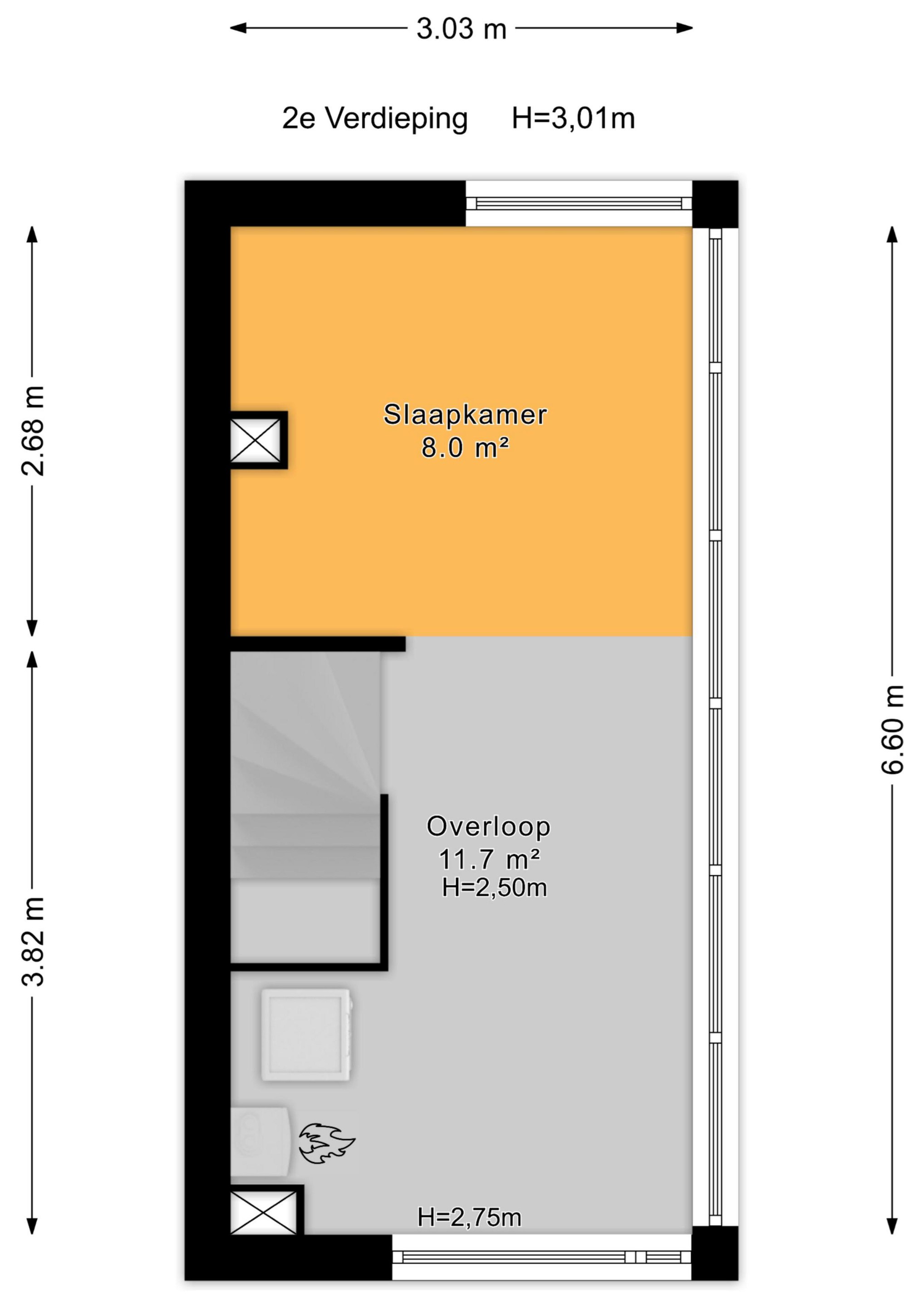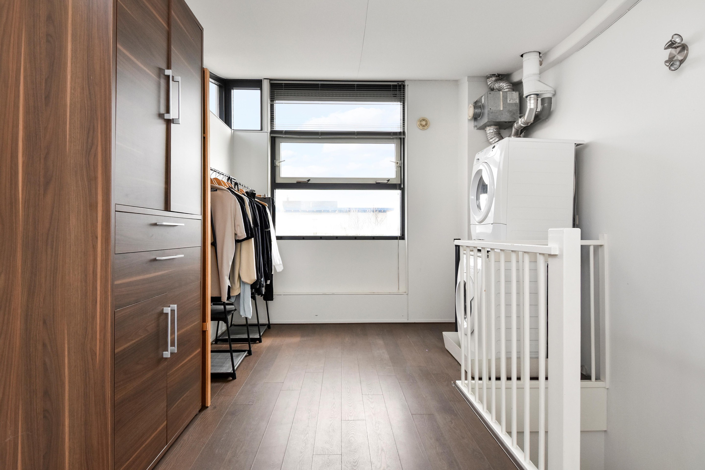 De tweede verdieping is ingericht als logeerkamer in combinatie met wasruimte waar ook de opstelplaats voor de CV ketel is te vinden. Het is mogelijk om een deur te maken naar het platte dak alwaar een dakterras kan worden gerealiseerd.