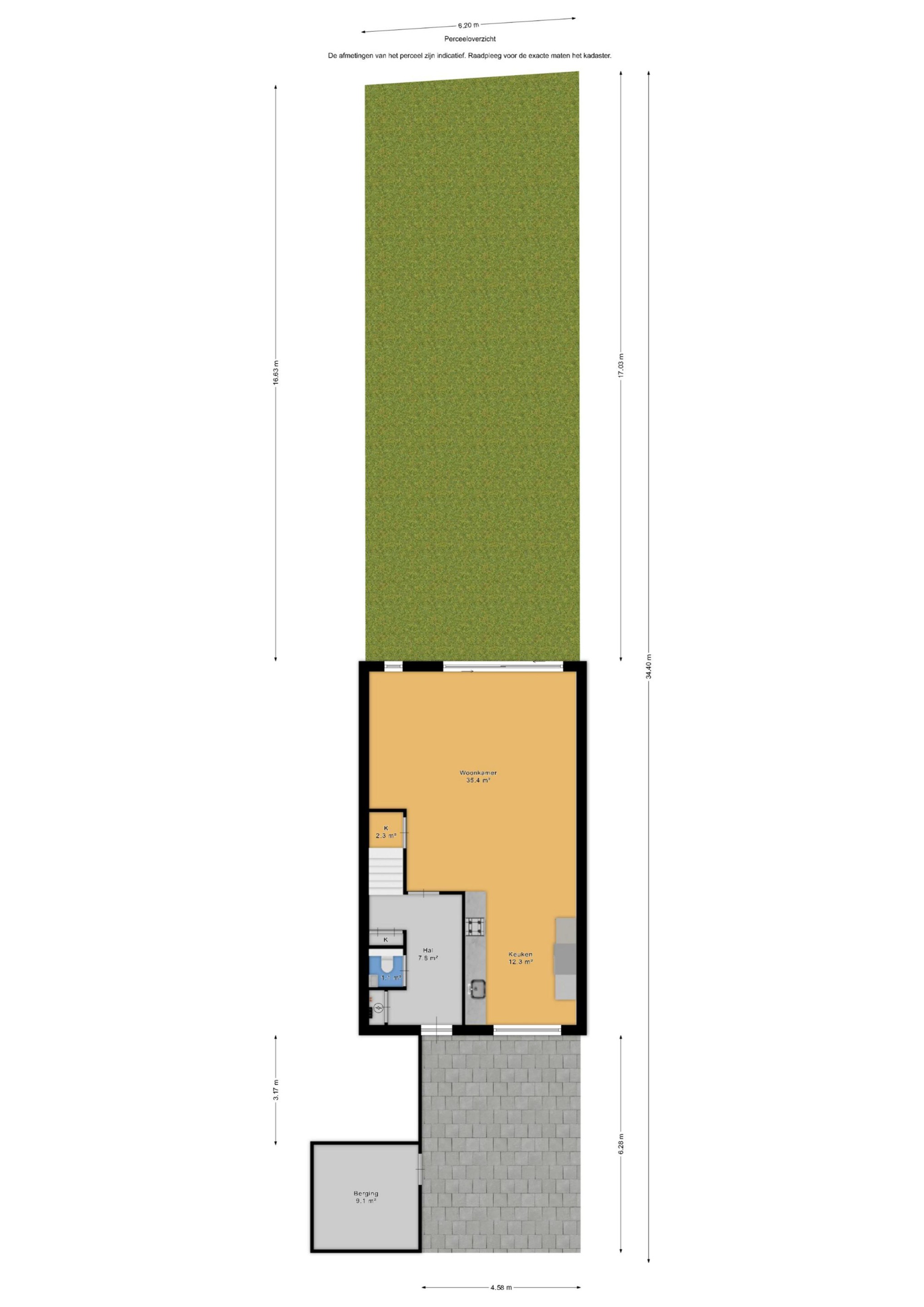 - diepe achtertuin van ca. 17meter;