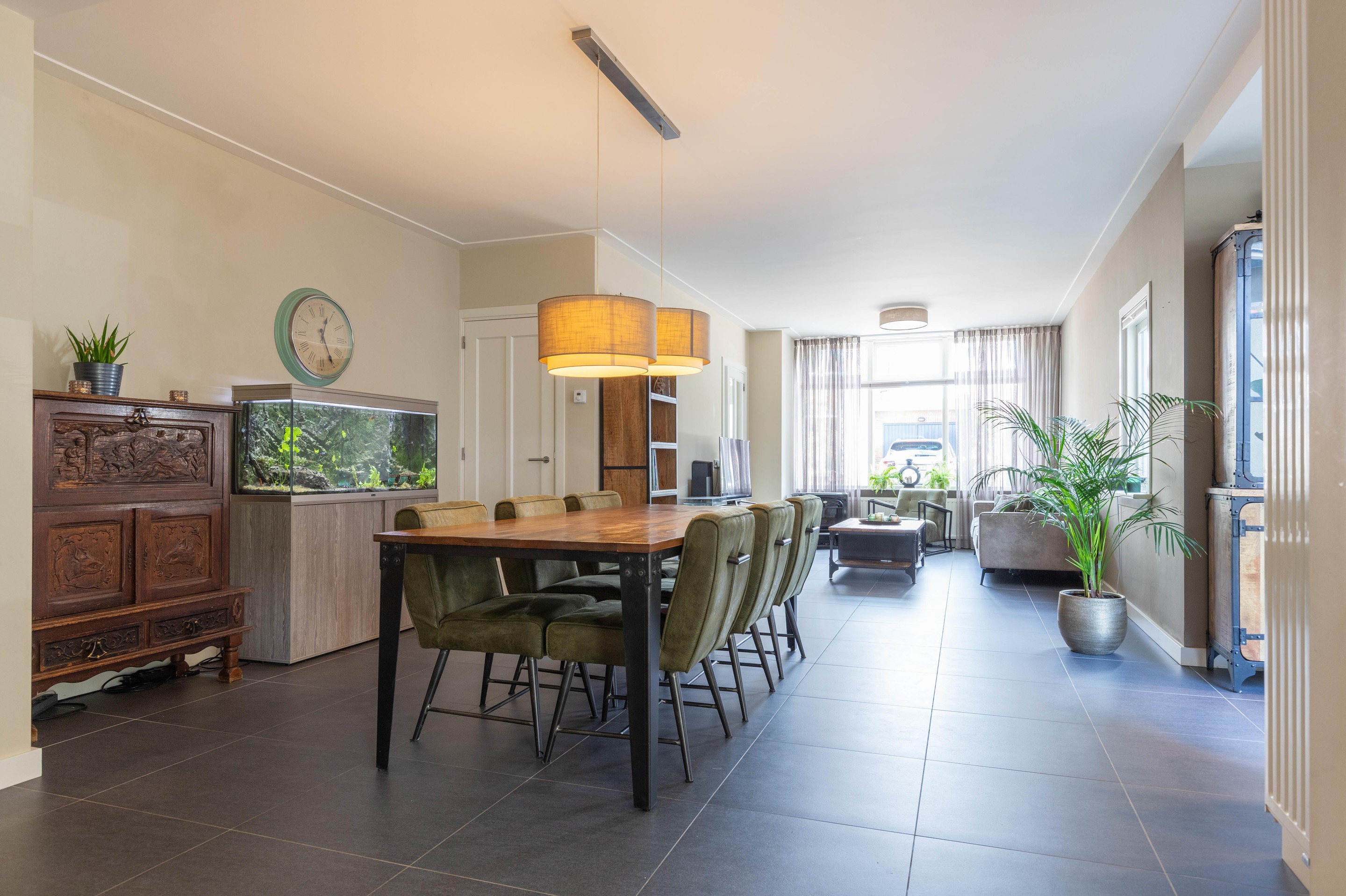 Begane grond Via de entree bereikt u de hal met trapopgang, garderobe en een moderne meterkast. De ruime en lichte woonkamer is voorzien van vloerverwarming en geniet van een stijlvolle afwerking met behoud van de karakteristieke jaren ’30 sfeer. Dankzij de sfeervolle erker is er een royale leefruimte ontstaan met volop plek voor zowel een zit- als eethoek. Grote raampartijen en een schuifpui zorgen voor een prettige lichtinval en een directe verbinding met de zonnige tuin.