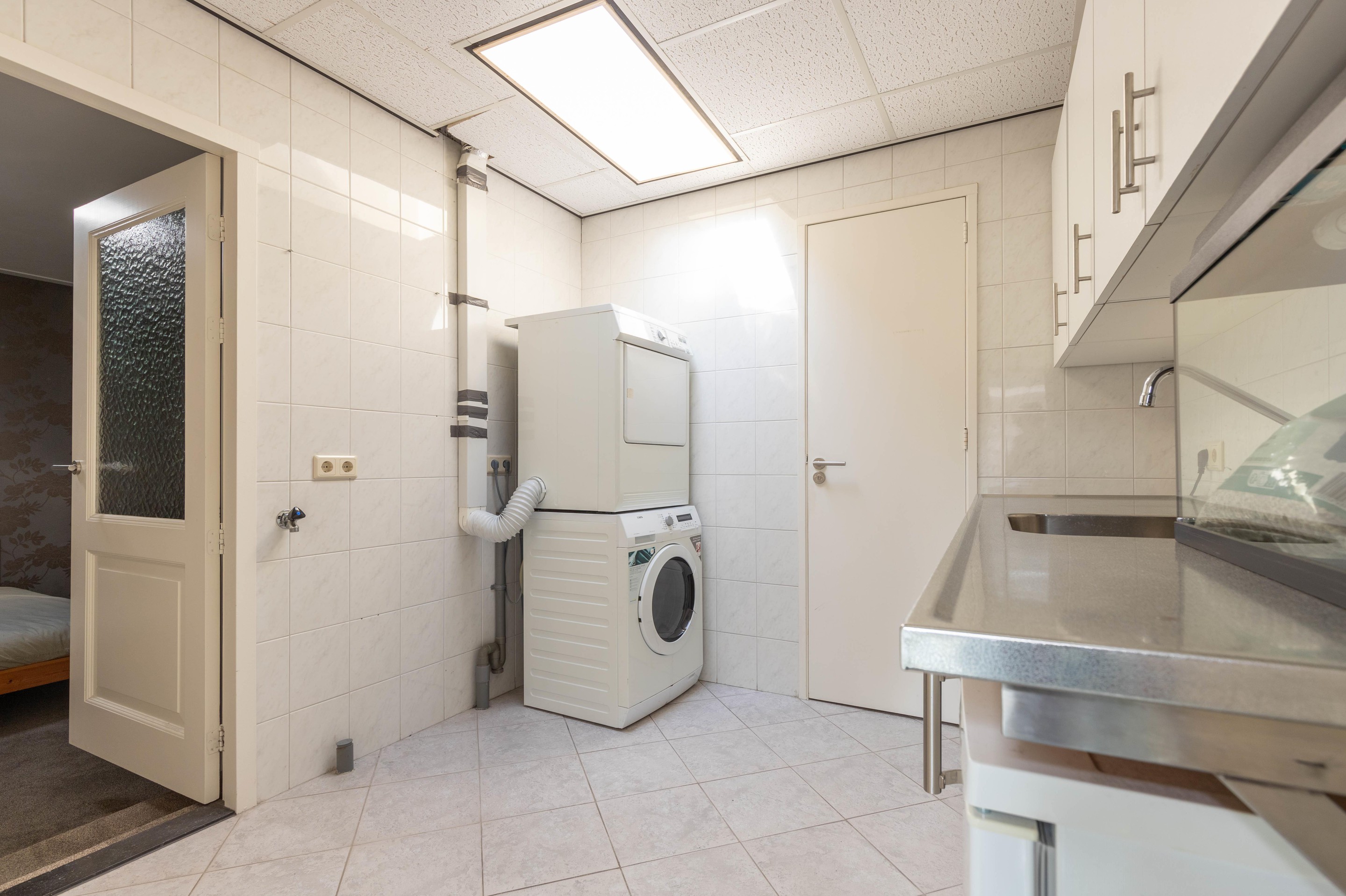 De moderne open keuken (2016) is uitgerust met diverse inbouwapparatuur en biedt een ideale plek voor kookliefhebbers. Vanuit de keuken staat u in direct contact met de tuin, waardoor koken en buiten leven mooi samengaan. Aansluitend aan de keuken is er een praktische bijkeuken met aansluitingen voor wasmachine en droger en een pantry.