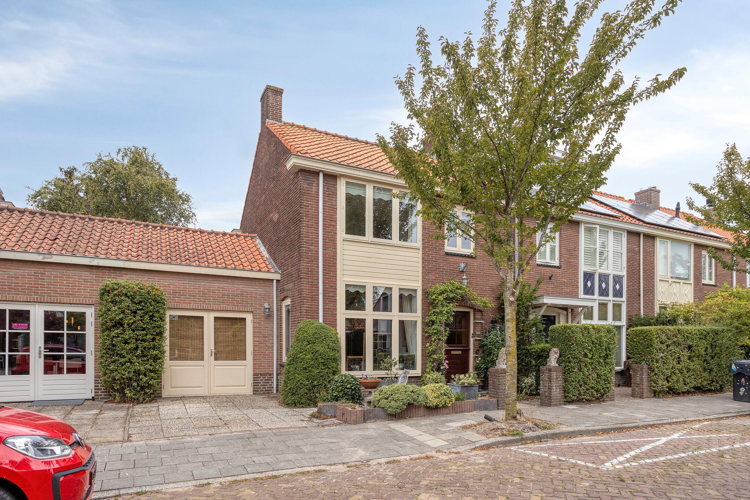 - Fraai aangelegde en bestrate voortuin met parkeergelegenheid op eigen terrein en via openslaande deuren toegang tot de inpandige garage met bergzolder;