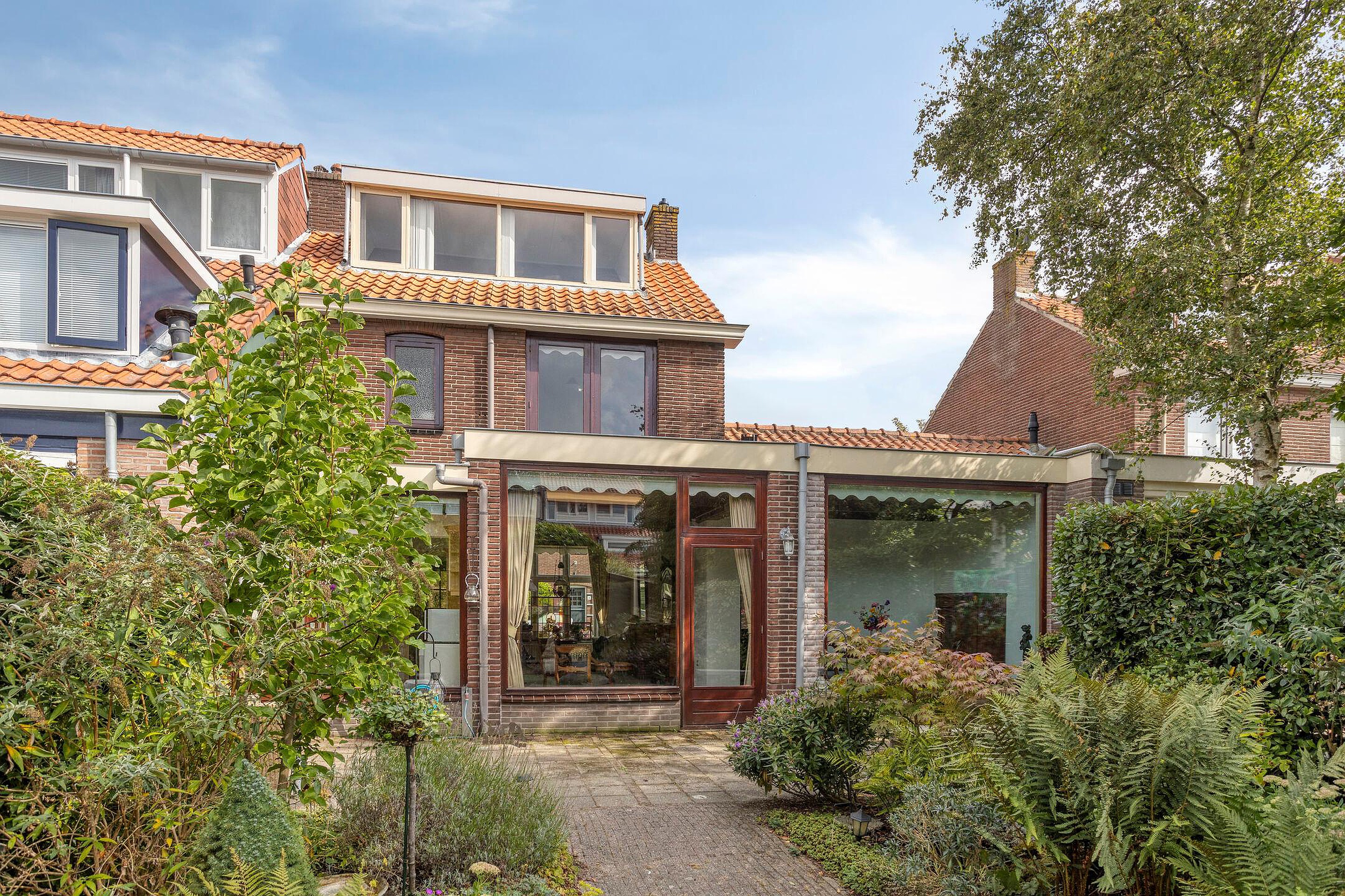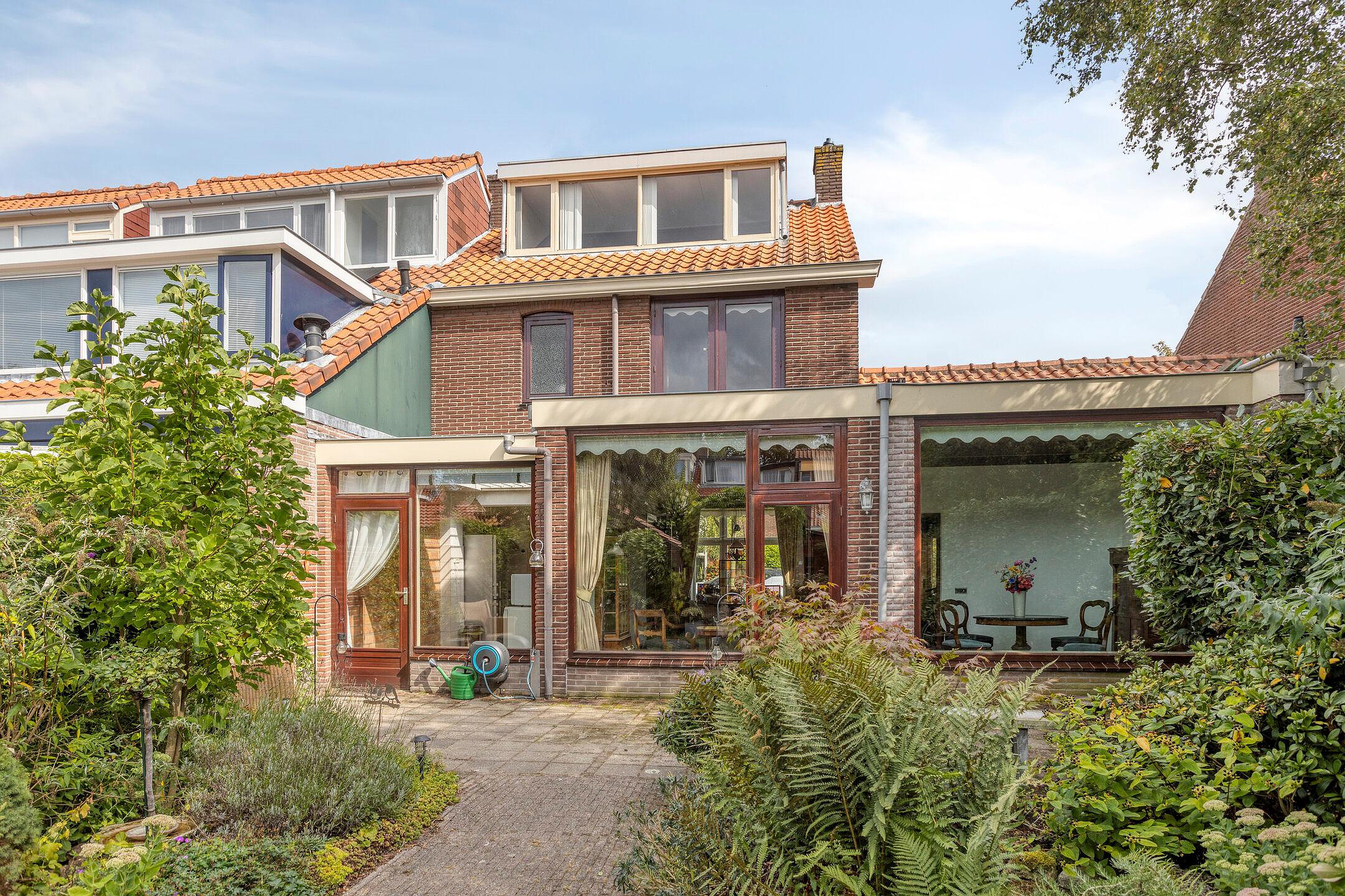 De woning beschikt o.a. over 4 (slaap)kamers, ruime keuken, provisiekast, 2 wc’s, badkamer, dakkapel 2e verdieping achterzijde, parkeergelegenheid op eigen terrein, vernieuwde houten kozijnen voorzijde voorzien van dubbelglas, uitgebouwde, lichte L-vormige woon-eetkamer met toegangsdeur tot de inpandige garage met ruime bergzolder voorzien van opstelplaats c.v.- installatie (2013), opstelplaats wasapparatuur en verwarming. Schitterend aangelegde, brede ca. 9,80 m, groene, beschutte en diepe (ca. 15 m) achtertuin op het zonnige westen met vrijstaande houten bergingen en originele stenen berging met handige achterom.