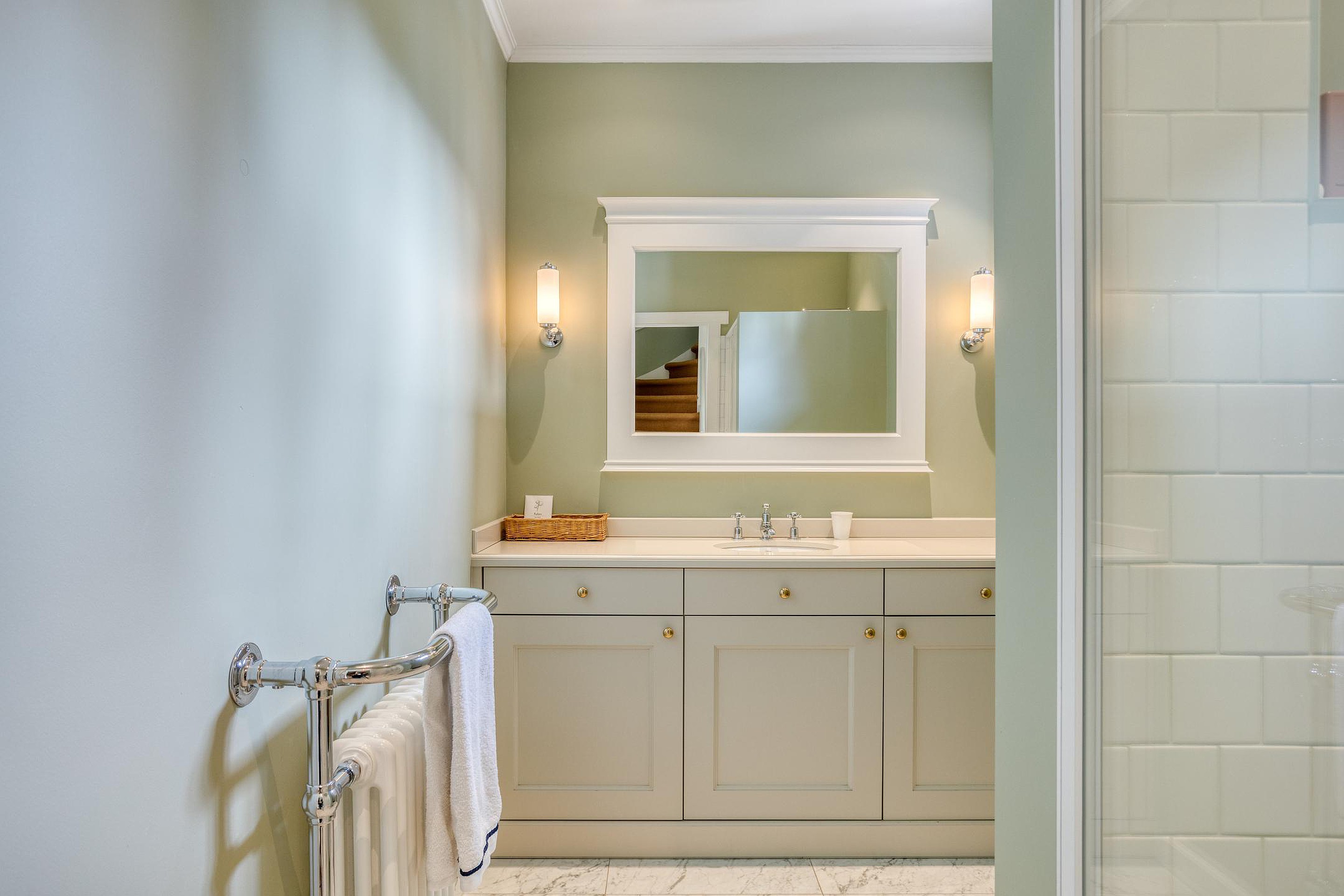 Eerste verdieping Bordestrap naar de 1e verdieping: overloop met toegang tot twee ruime slaapkamers en een moderne badkamer. De riante en lichte slaapkamer met inbouw(kleding)kast over de volle breedte aan de voorzijde (voorheen 2 slaapkamers), met erker en vele raampartijen dankzij de hoekligging, heeft een prachtig uitzicht over de villa’s aan de Julianalaan. Tweede ruime (slaap)kamer aan de achterzijde, thans in gebruik als werkkamer/thuiswerkplek, met openslaande deuren naar een zonnig balkon en met een fraai zicht op achtergelegen vrijstaande herenhuizen. Moderne badkamer met inloopdouche met regen- en handdouche, vrij hangend toilet, handdoekenradiator en breed wastafel(meubel) uit 2017.