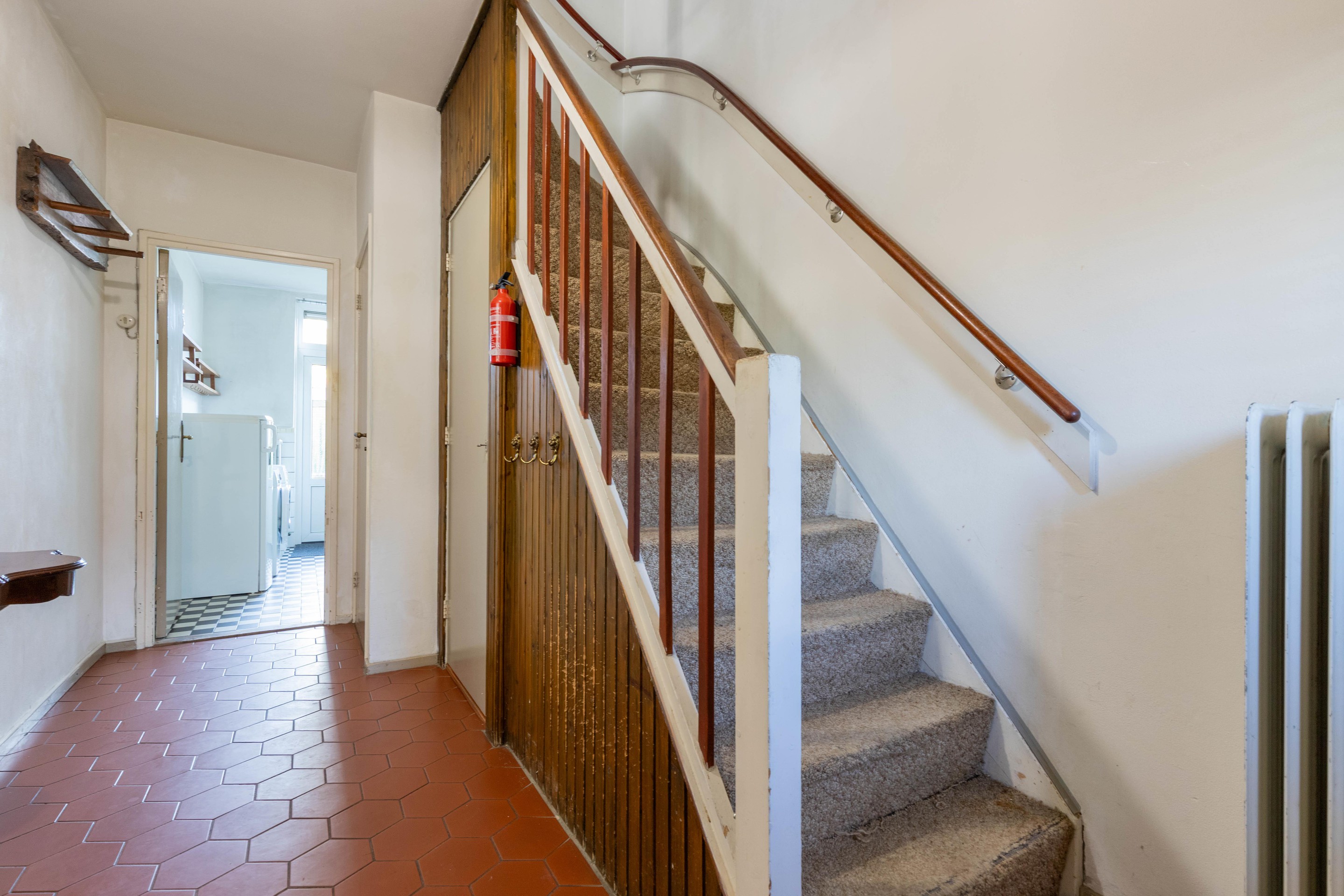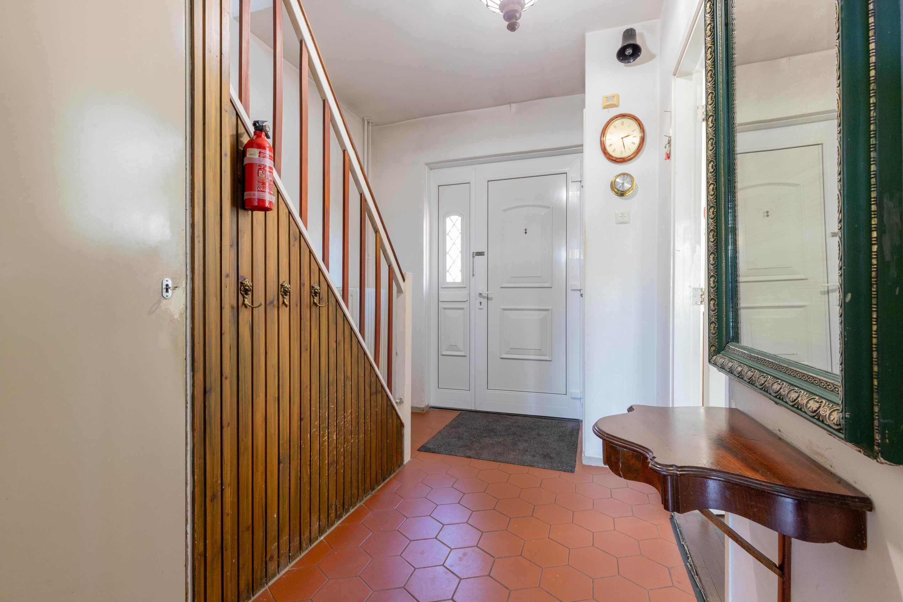 Begane grond Aan de voorzijde ligt een verzorgde voortuin met toegang tot de woning. Via de entree kom je in een ruime hal met trapopgang, garderobe, toiletruimte en een praktische vaste kast.