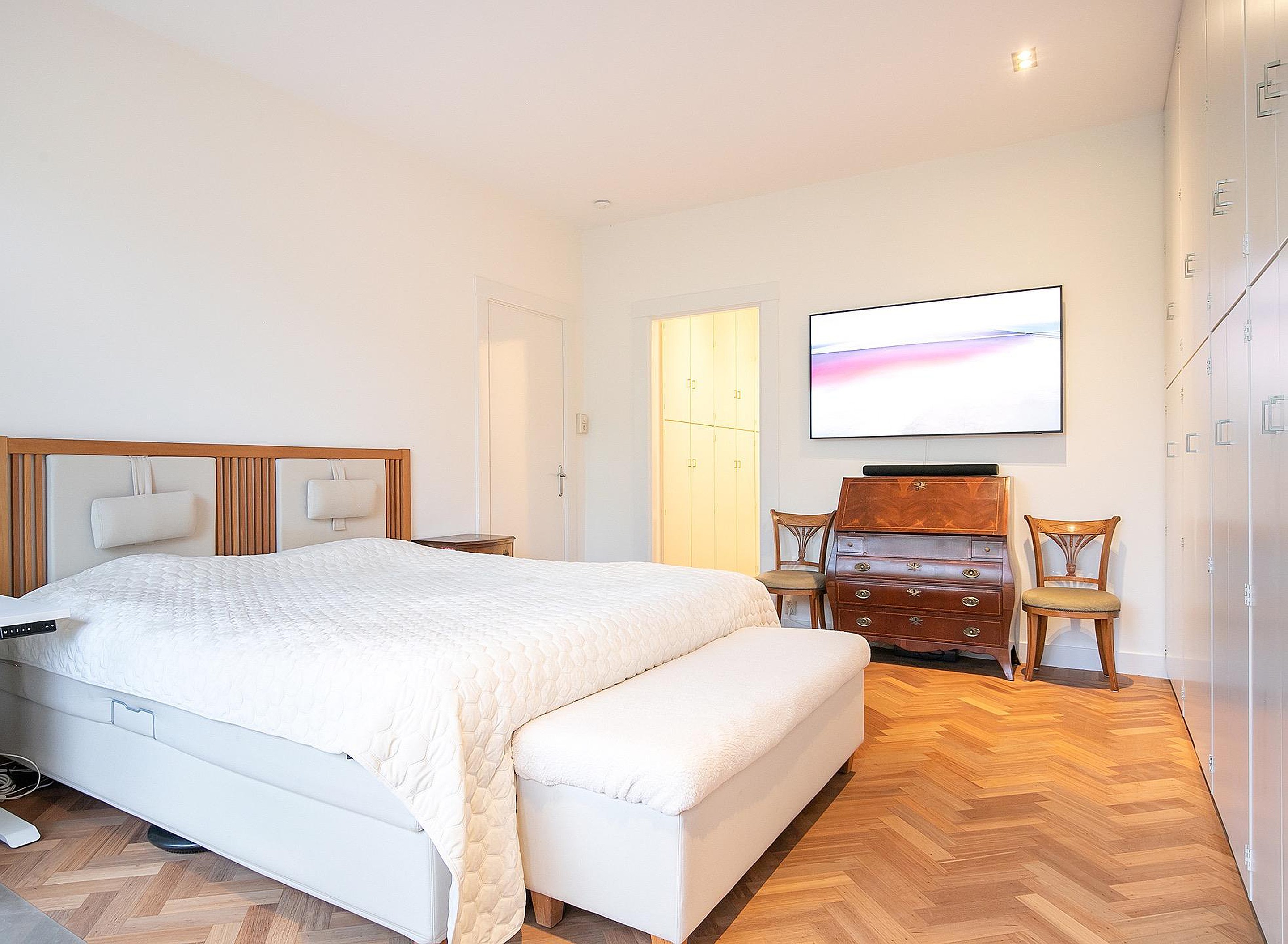 Nog meer ruimte! Drie slaapkamers bieden elk unieke kenmerken, zoals: inbouwkasten en toegang tot een balkon. De badkamer heeft een ligbad, een ruime inloopdouche en twee brede wastafels. Derde toilet op de gang.