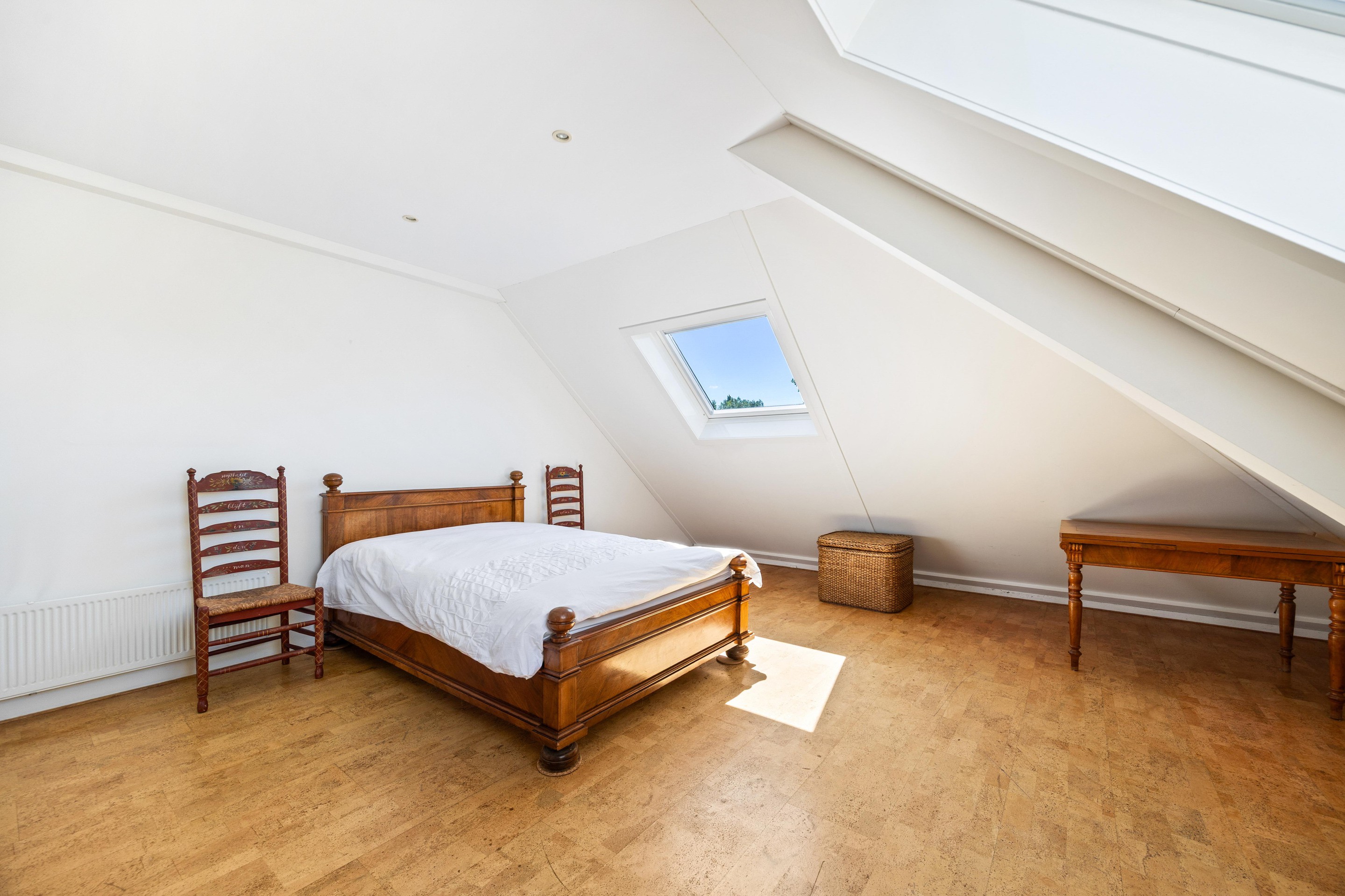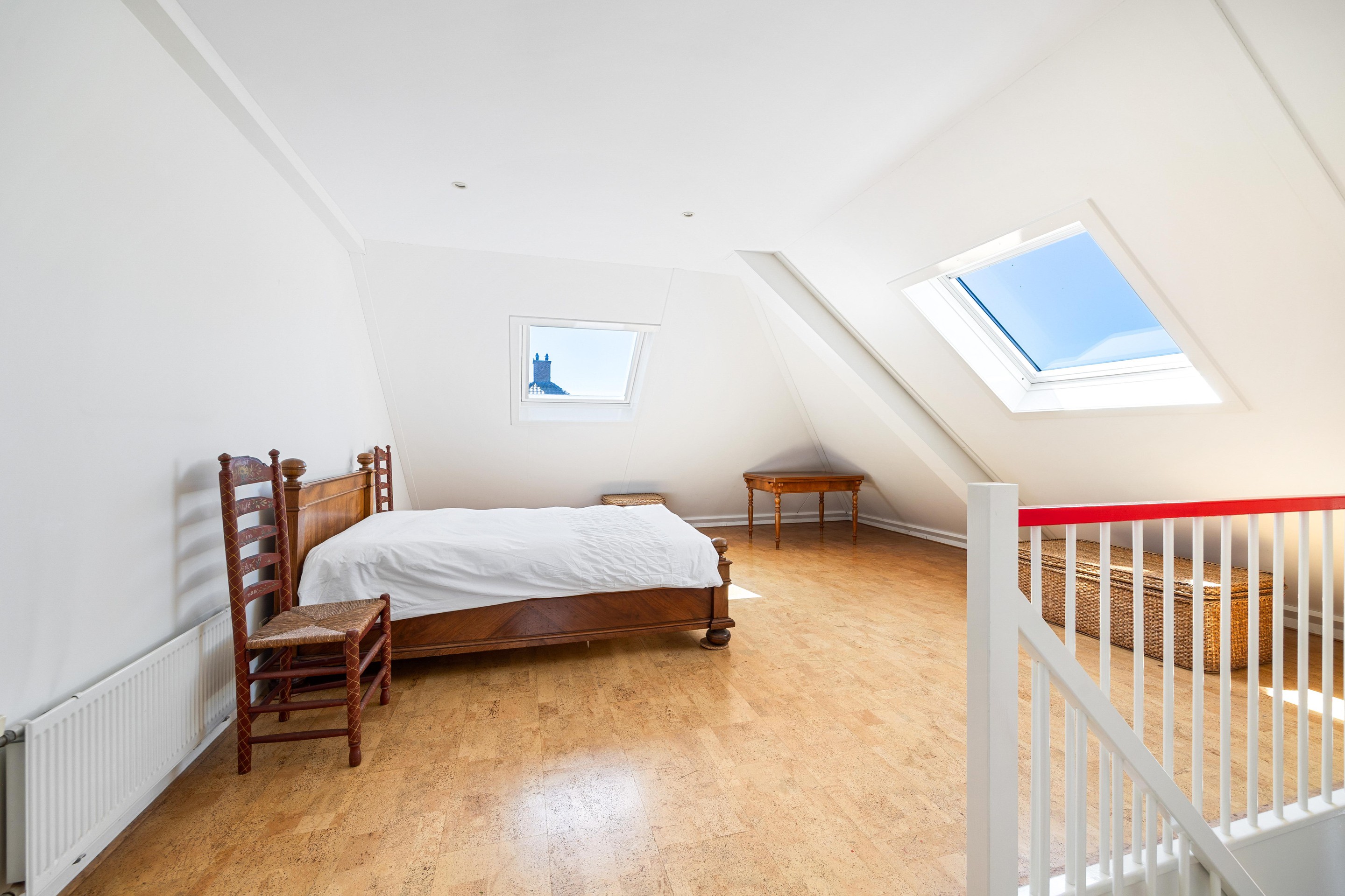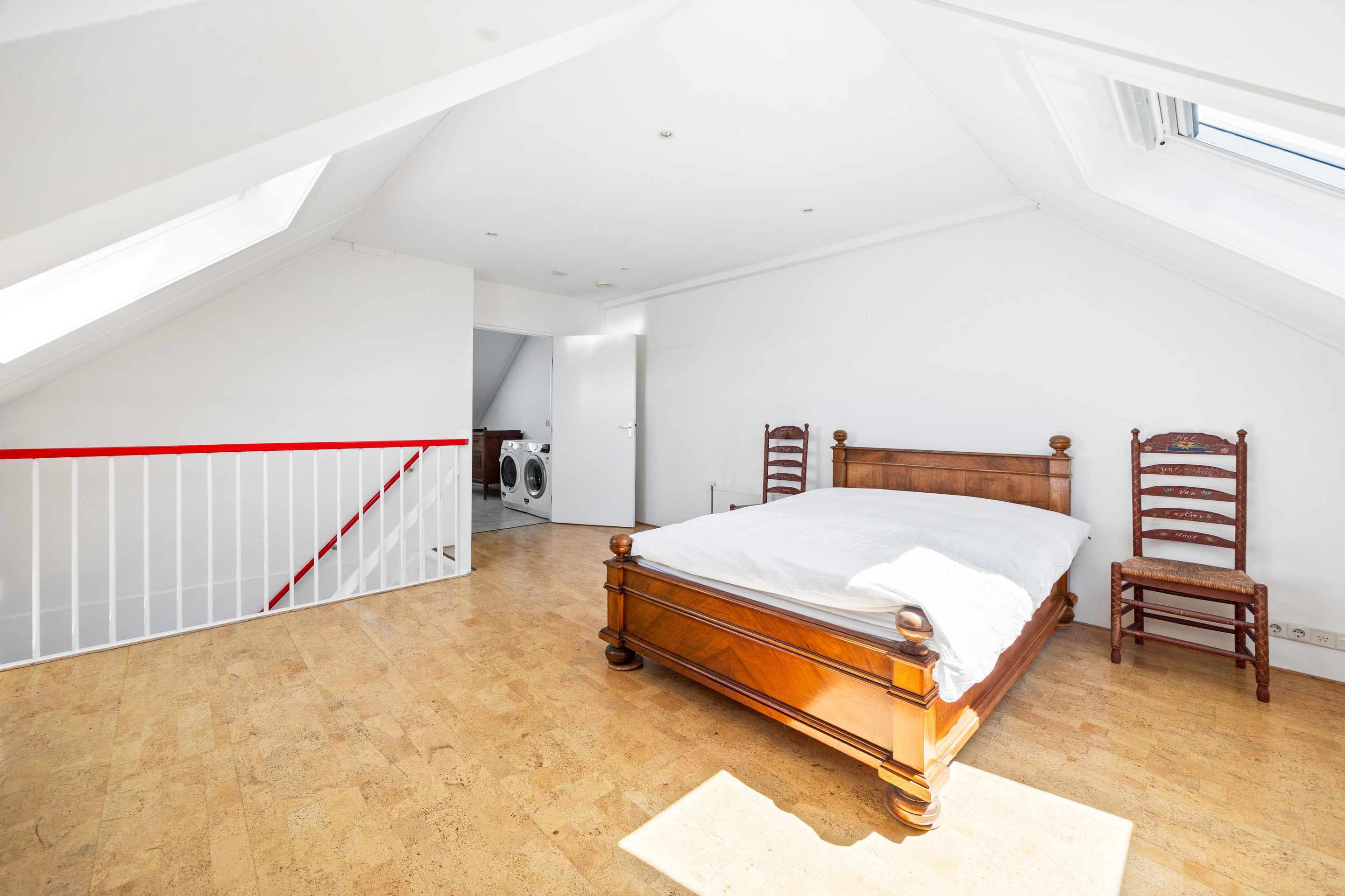 Op de tweede verdieping vindt u de ruime vierde slaapkamer die beschikt over een kurkvloer en twee grote Velux-dakramen, voorzien van zonwering. De deur links leidt naar een grote ruimte waar de cv-ketel, de WtW-unit en de witgoedopstelling zijn geplaatst. Hier heeft u de mogelijkheid een vijfde slaapkamer te realiseren, al dan niet in combinatie met een dakkapel.