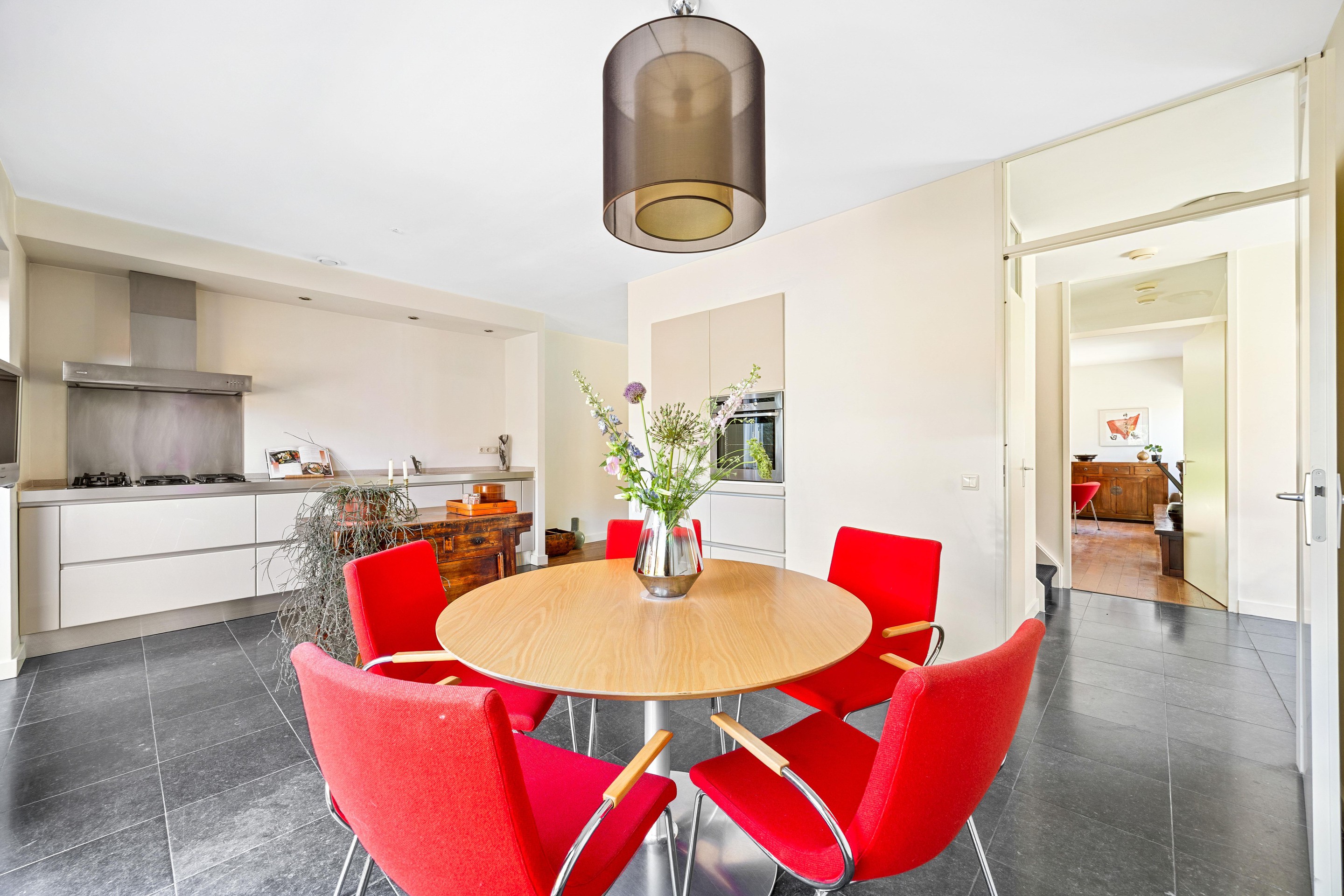 De living heeft een open verbinding met de keuken – die u overigens ook vanuit de entree kunt bereiken. De keuken is gesplitst in twee delen: een langgerekt granieten werkblad aan de rechterzijde met daaronder alle kasten en laden, waardoor de ruimtebeleving optimaal blijft. Aan de bovenkant is een koof met inbouwspots. Het tweede deel is een geïntegreerd wandelement. De keuken is voorzien van een 5-pits gasfornuis en diverse inbouwapparatuur.