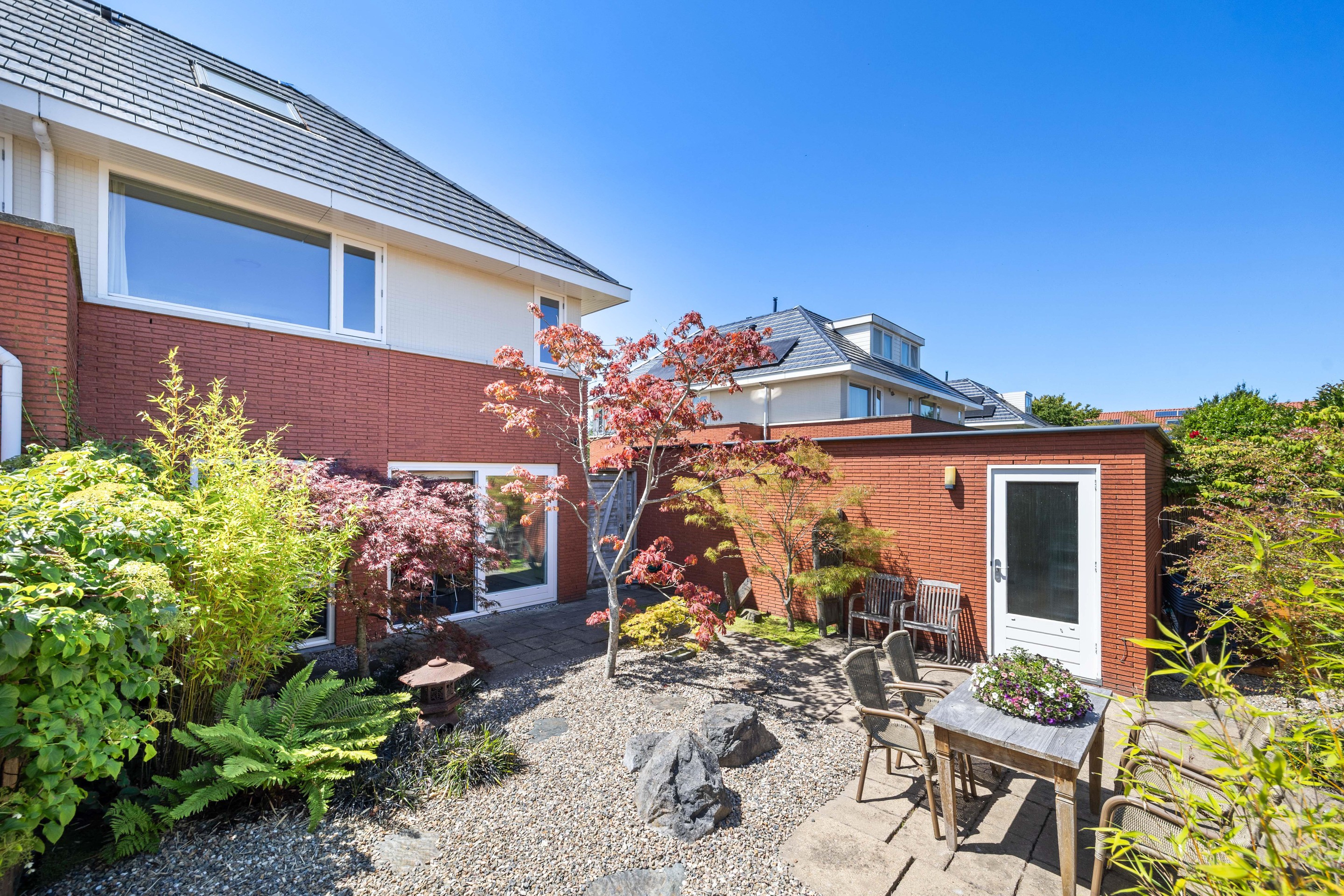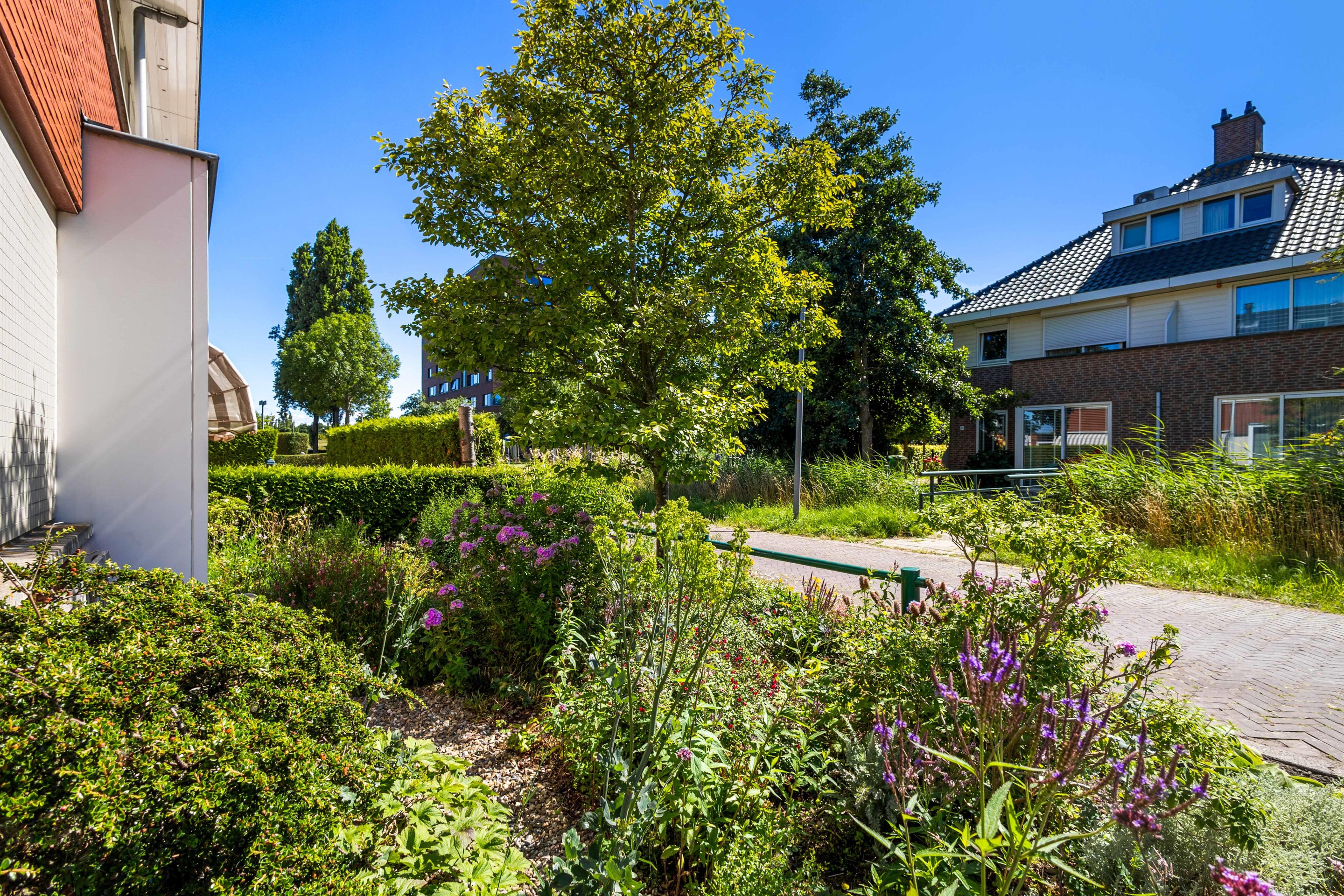 De buitenruimte bestaat uit een voortuin en een achtertuin. Beide zijn met veel liefde en aandacht aangelegd. De achtertuin is iets bijzonders, vanwege de Japanse stijlelementen, waaronder fraaie boompjes, grind en enkele grote stenen in het midden. Alles staat in het teken van rust, harmonie en verbinding met de natuur. De bamboeschutting maakt de oosterse sfeer compleet.