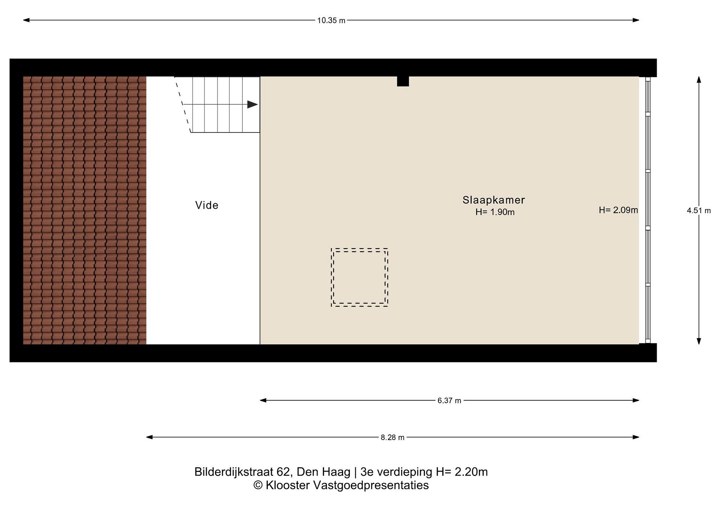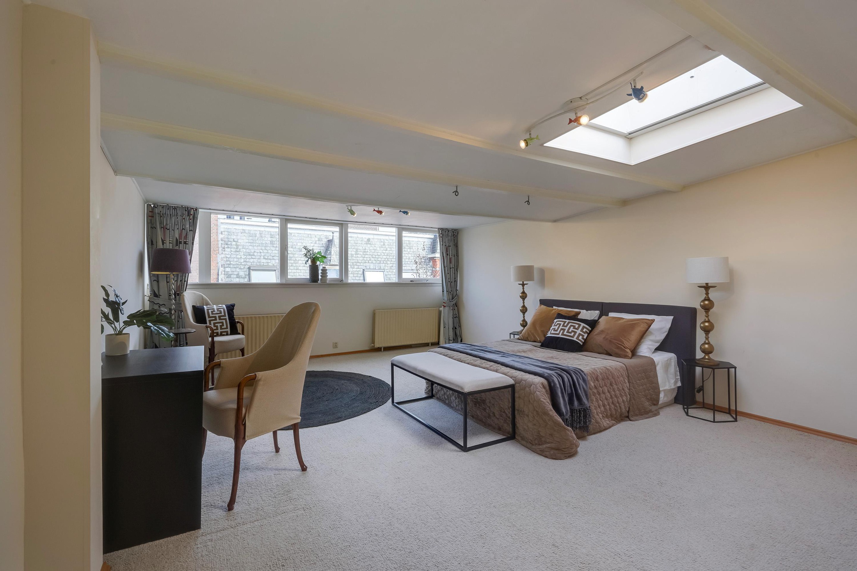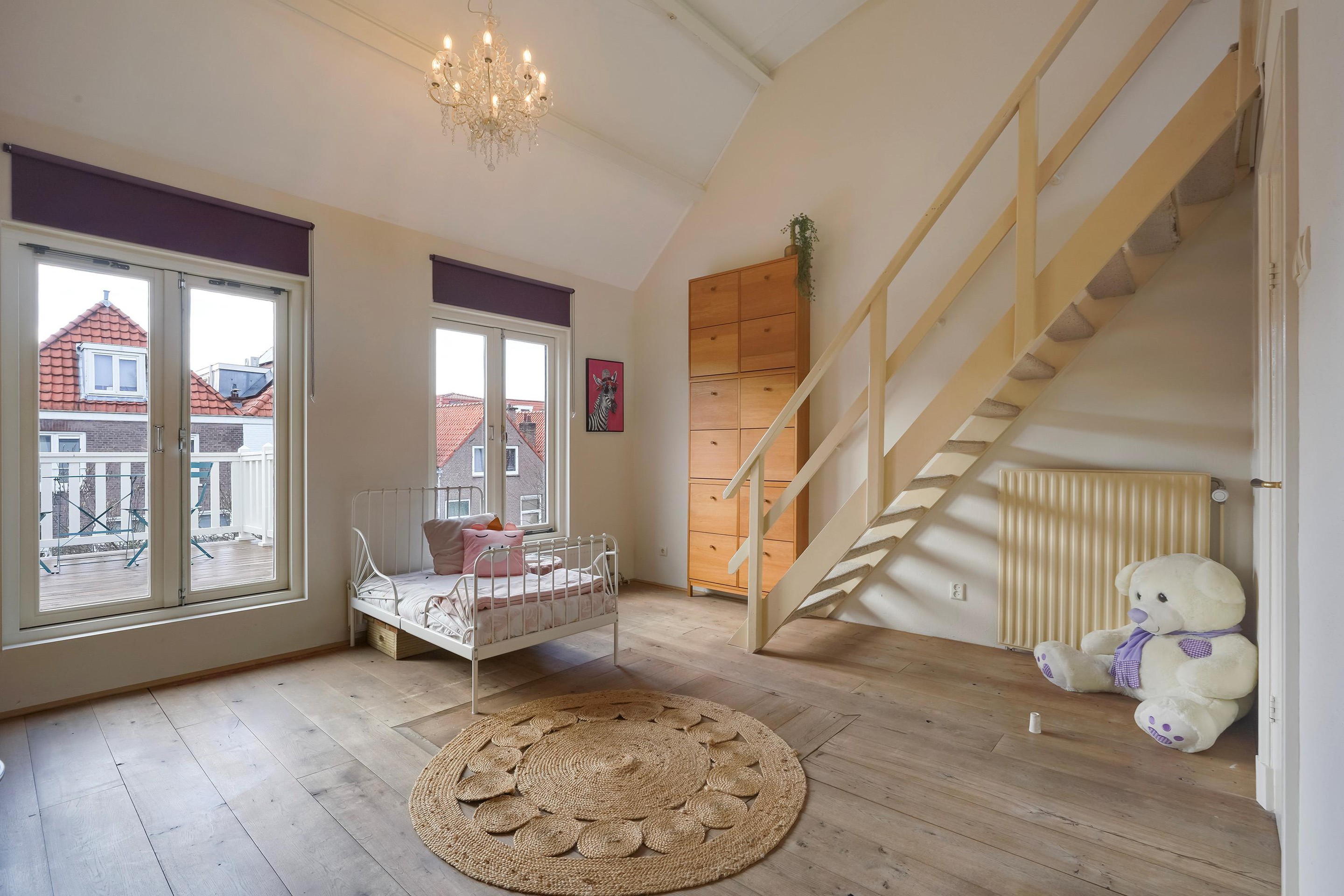 De vide is bereikbaar via de trap vanuit de garderobekamer. Deze heerlijke, lichte ruimte biedt volop mogelijkheden als slaapkamer of studeerkamer. Vanuit de dakkapel heeft u een prachtig uitzicht op het Vredespaleis, de Koninklijke Stallen en het centrum van Den Haag