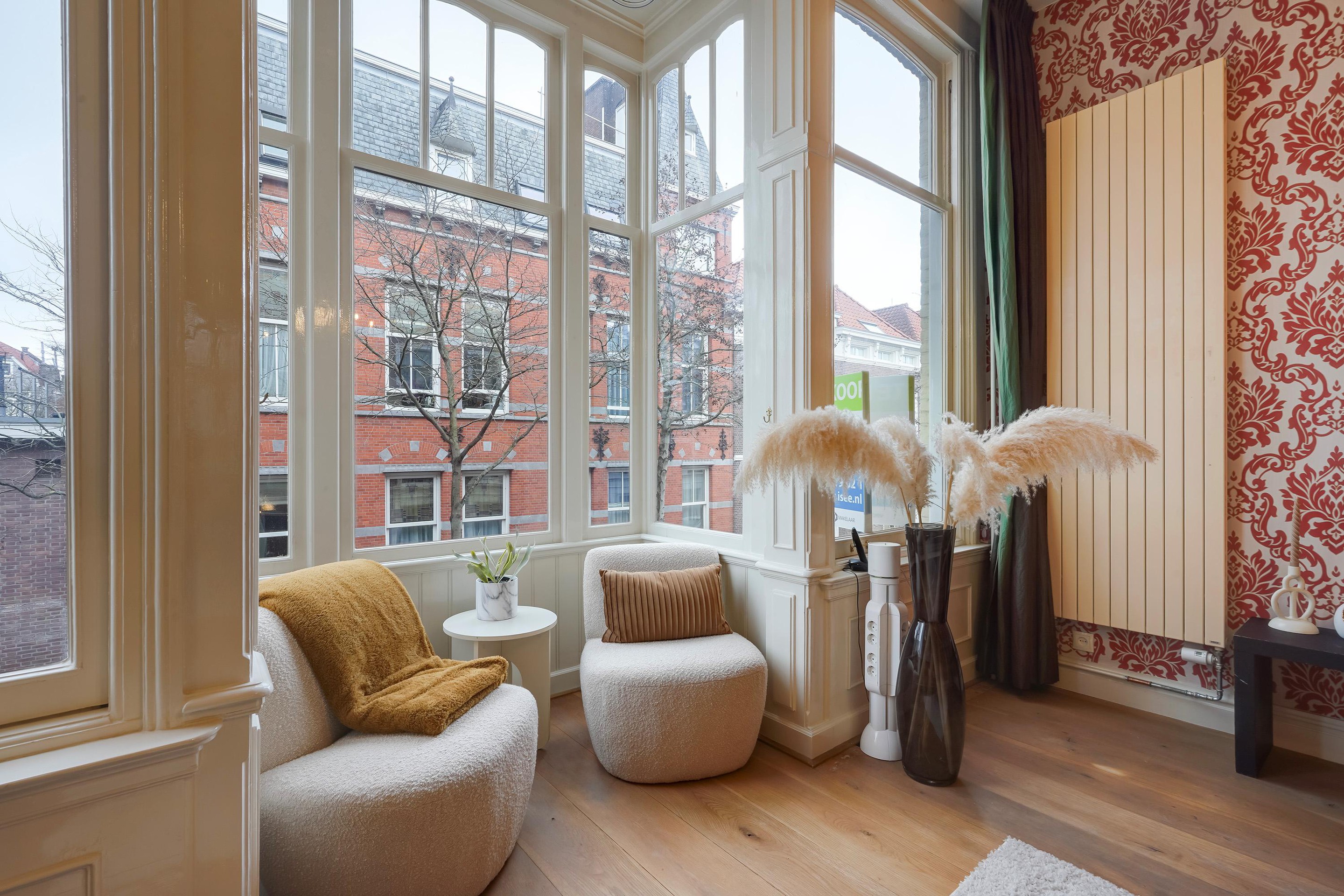 Dit klassieke herenhuis van vier lagen, gelegen op eigen grond, is zorgvuldig gerestaureerd en gerenoveerd met behoud van originele details, zoals ornamenten, paneeldeuren, luiken, glas-in-loodramen, een drieslagseparatie en een monumentaal, origineel trappenhuis. Binnenshuis zijn nieuwe paneeldeuren en luiken naar oud voorbeeld nagemaakt, voorzien van klassiek messing hang- en sluitwerk.