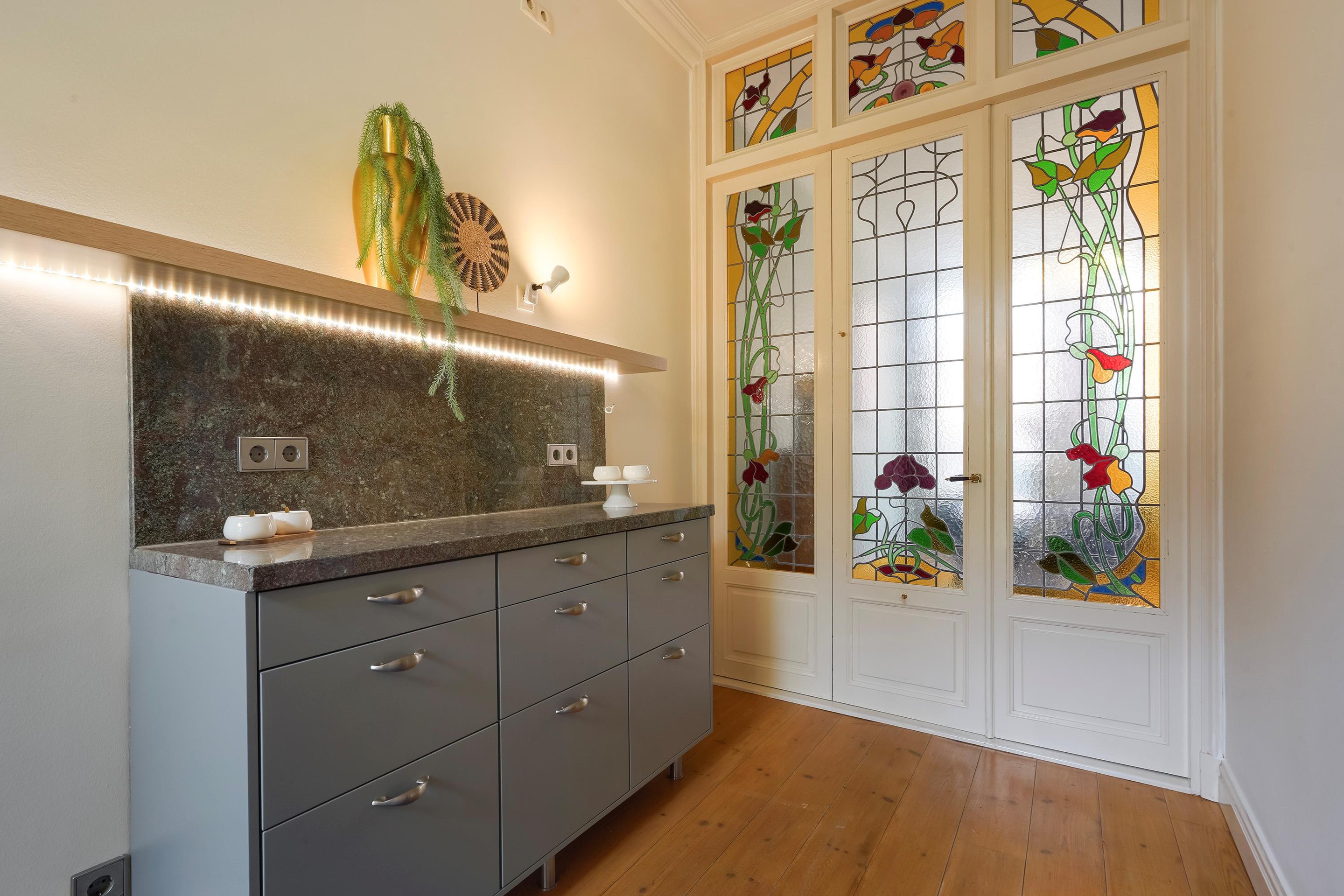 - Diverse originele details, waaronder glas-in-loodramen en klassieke panelen met glas-in-lood