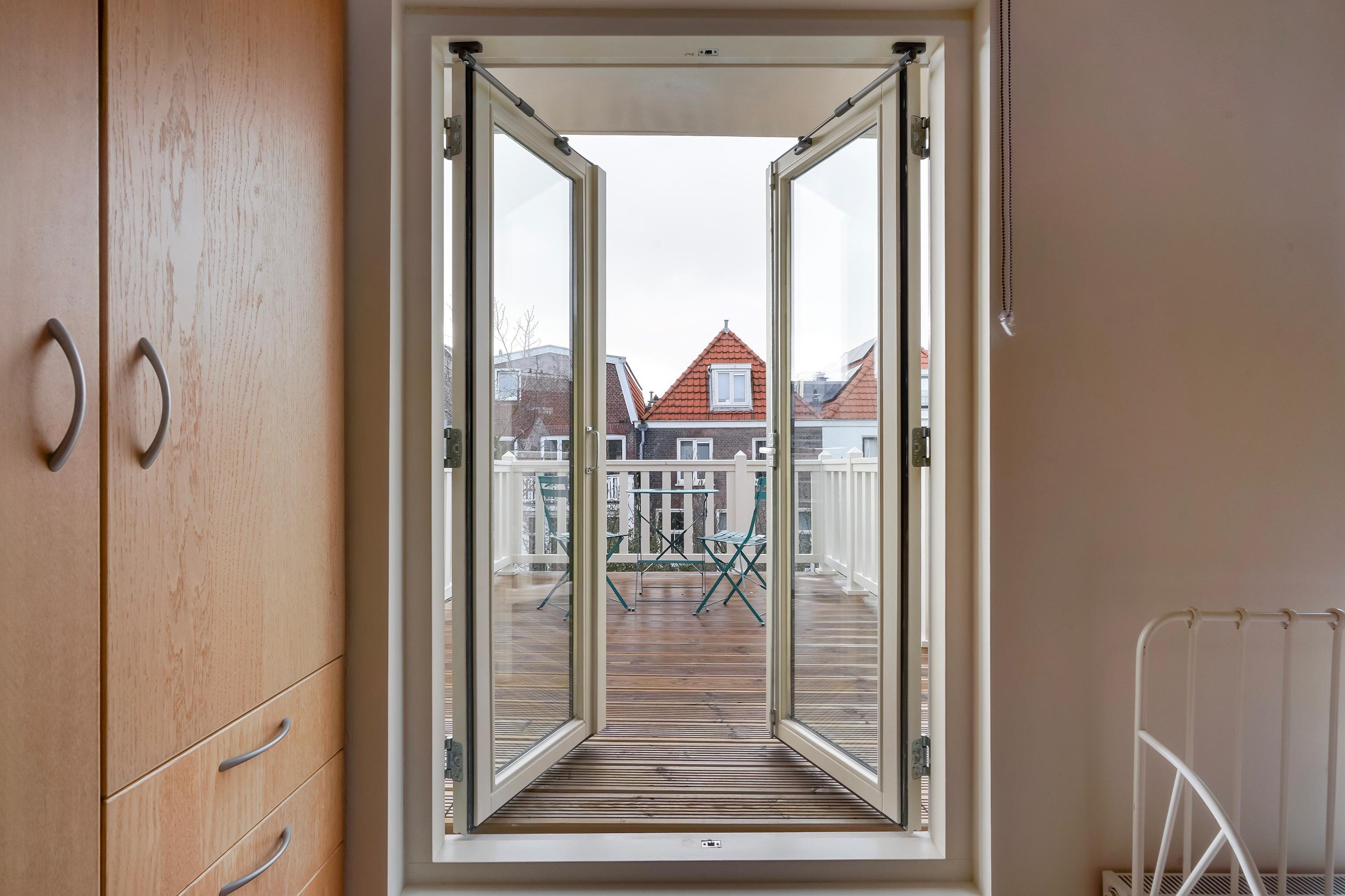 Via twee openslaande deuren in de garderobekamer bereikt u het royale, beschut gelegen dakterras op het zuidwesten.