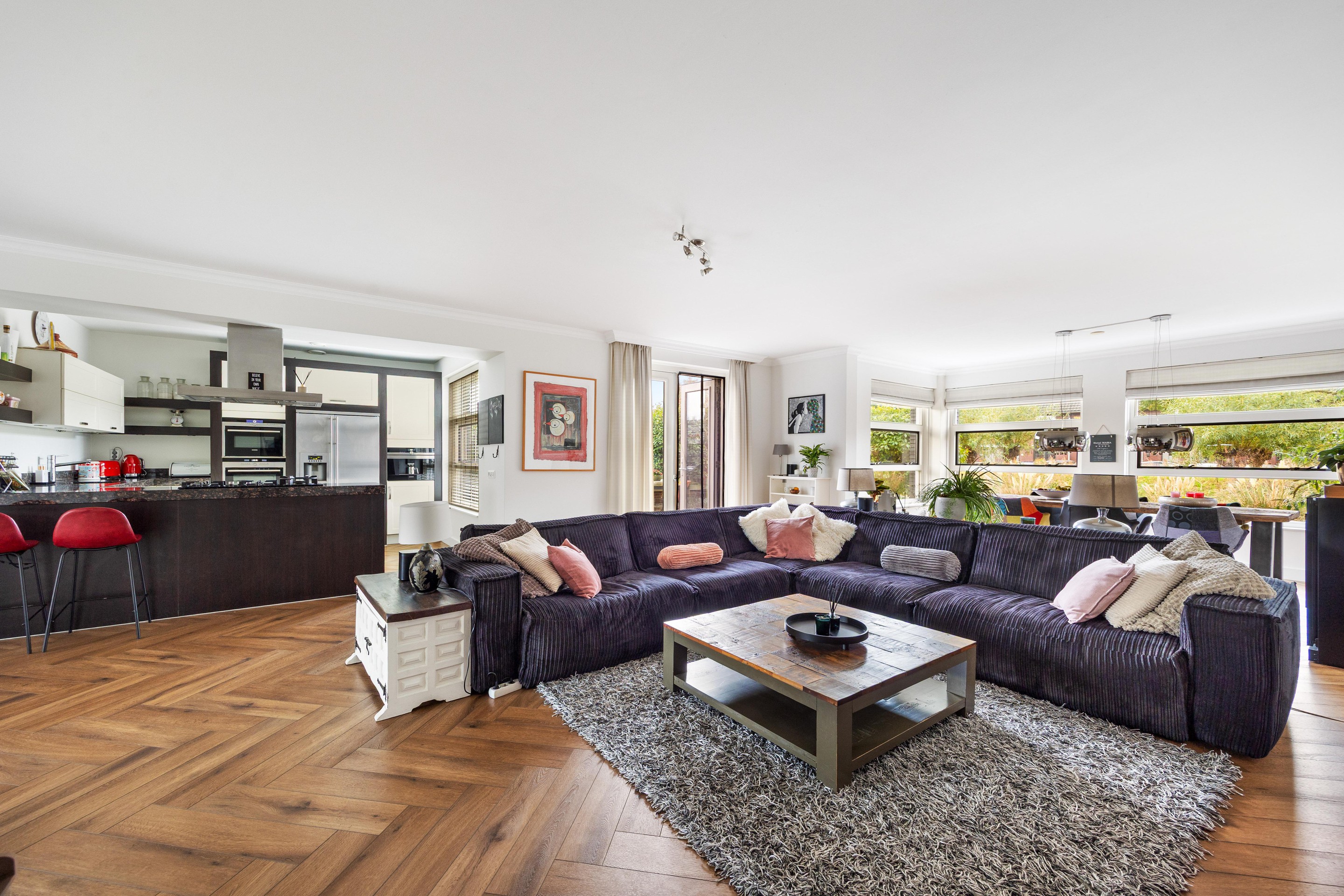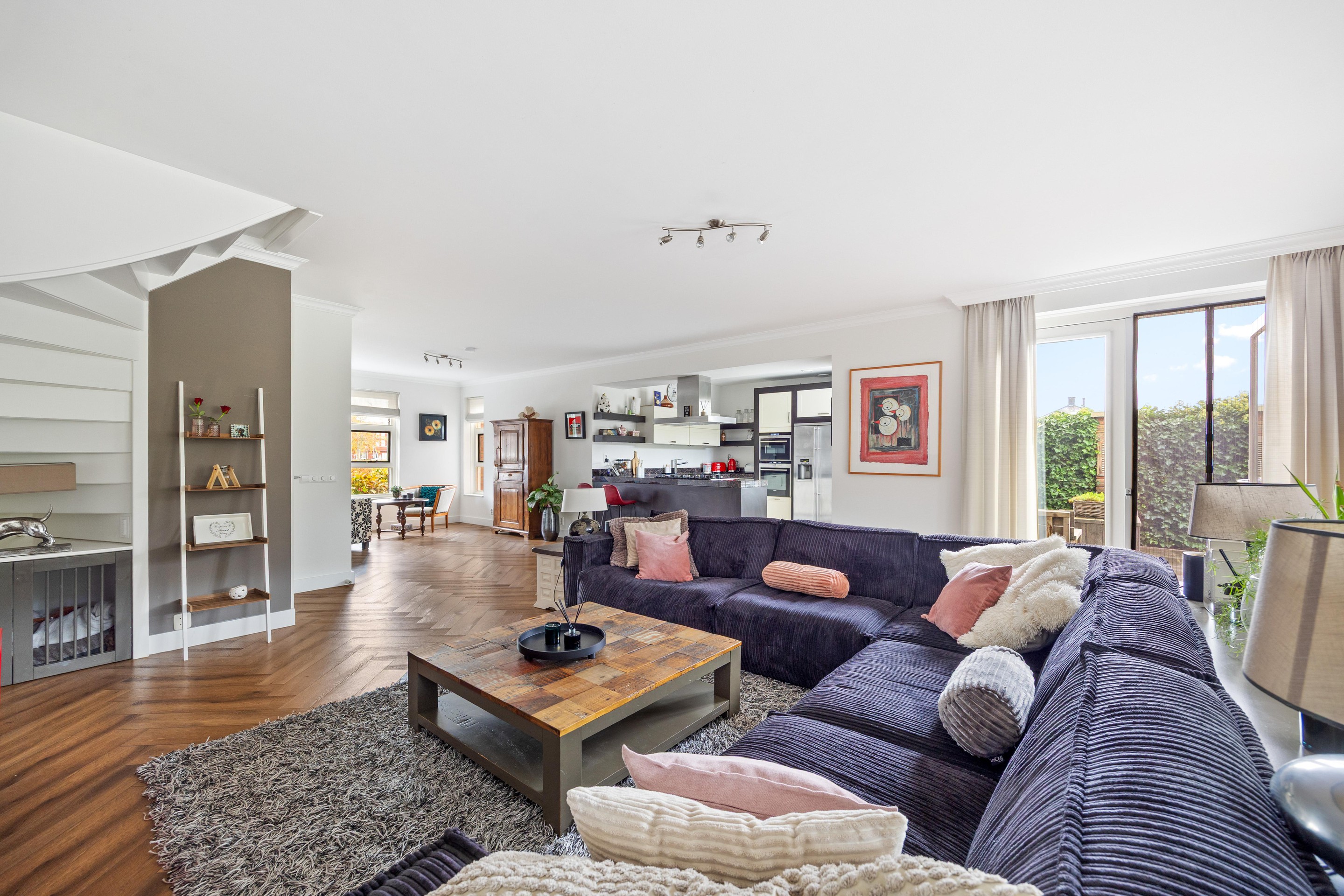 - Bijzonder ruime woonkamer met veel lichtinval en openslaande deuren naar de tuin