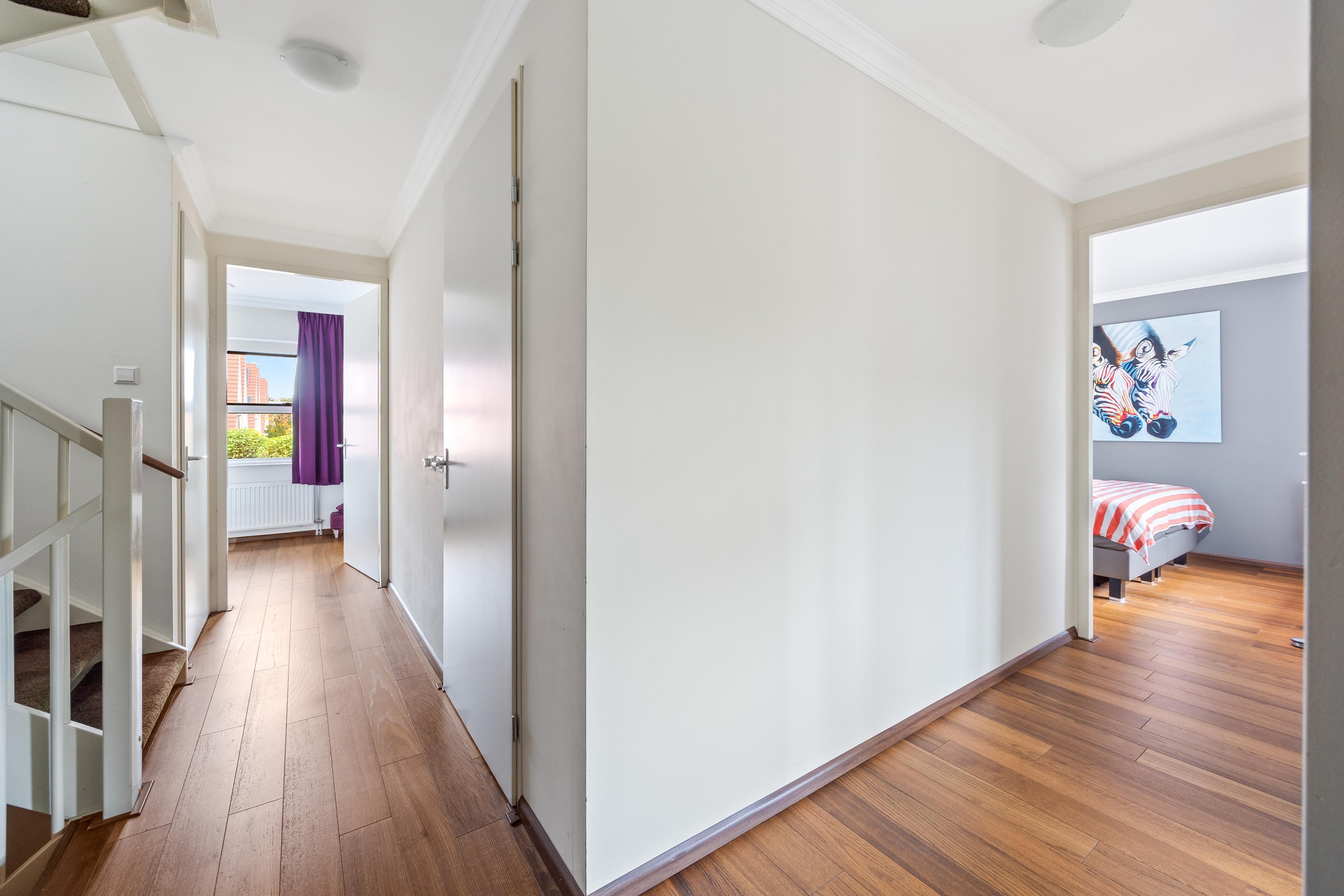 Via de trap – die is afgesloten met een deur, zodat de warmte en uw energierekening niet omhoog vliegen - bereikt u de eerste verdieping. Hier telt u vier slaapkamers. De grootste is gelegen aan de voorzijde van de woning en is een samenvoeging van twee slaapkamers. Heerlijk voor wie van zo’n ruimte geniet. En wie liever een extra slaapkamer heeft, kan deze wens eenvoudig realiseren.