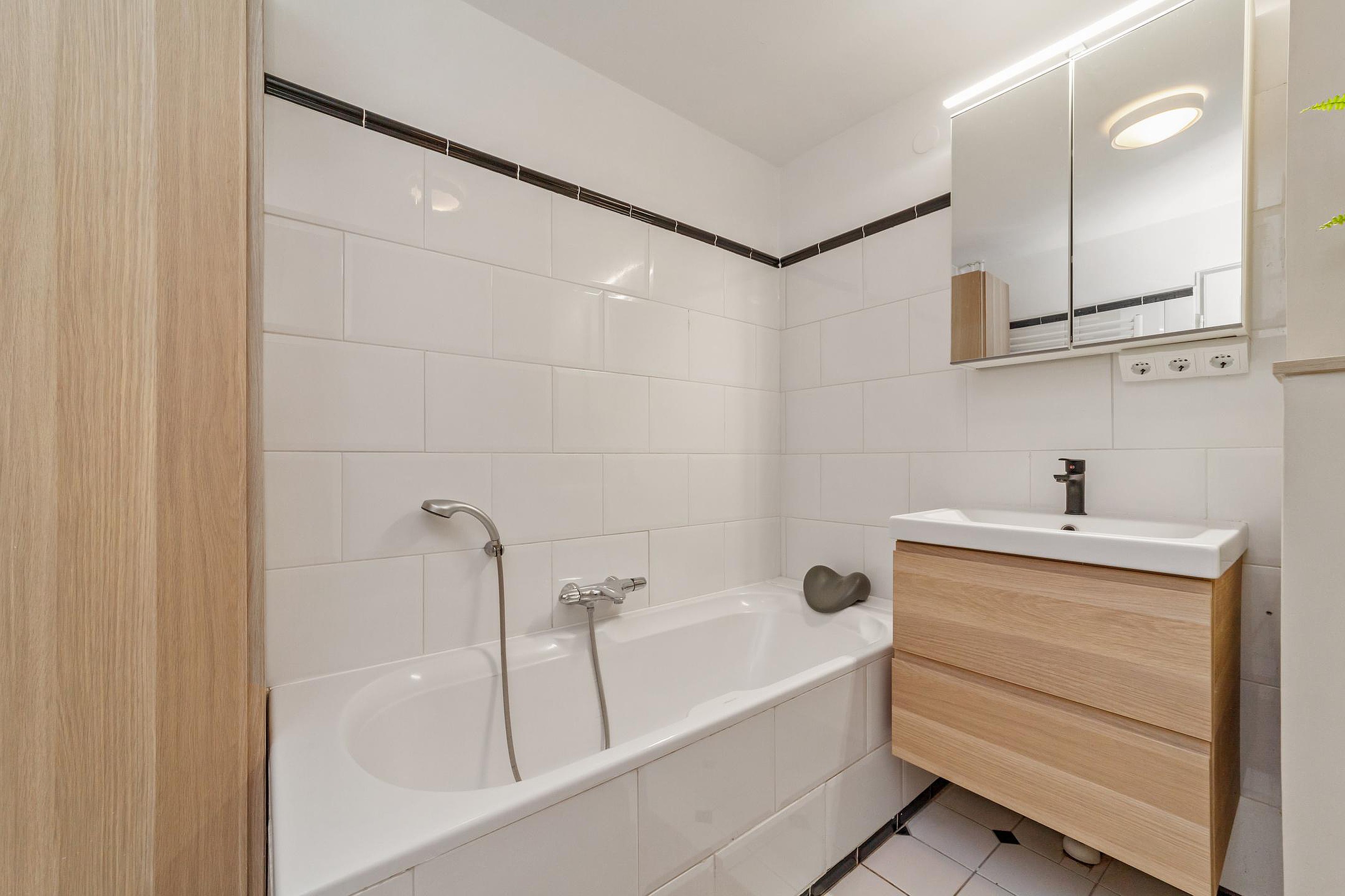 Aan de achterzijde bevindt zich een deur naar de ruime zeer verzorgde achtertuin.
