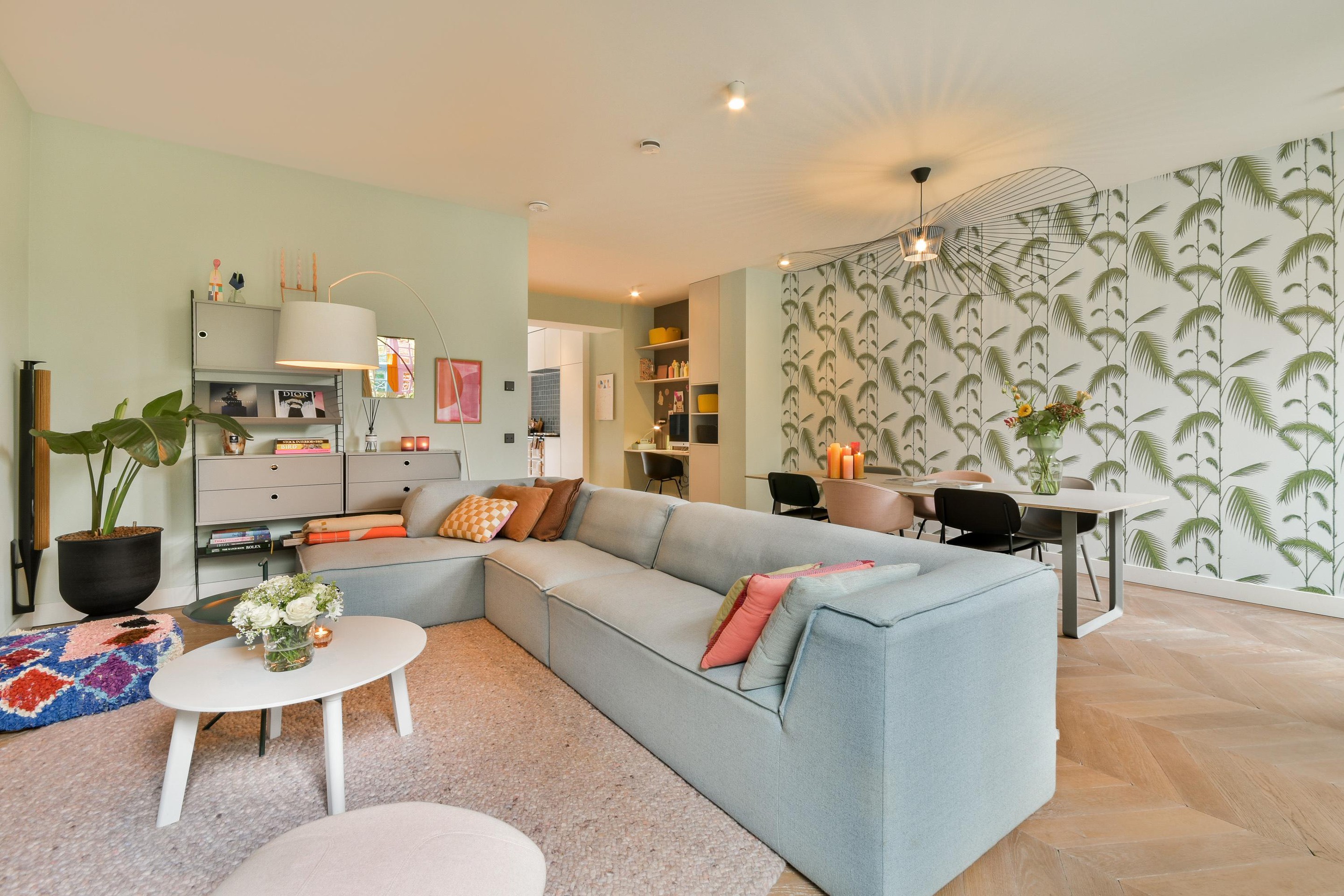 Bij binnenkomst via de ruime hal betreedt u een lichte en stijlvolle woonverdieping met houten vloer gelegd in Hongaarse punt. De luxe designkeuken is voorzien van een centraal kookeiland, klassieke AGA met een gietijzeren kern. Deze kern houdt warmte op bijzonder efficiënte wijze vast en geeft het langzaam door aan de vier ovens en kookplaten en is altijd klaar voor gebruik, een ingebouwde klimaatkast voor wijnliefhebbers, koel en vrieskast, vaatwasser en Quooker. De aangrenzende woonkamer straalt elegantie en warmte uit, met hoge plafonds (2,93m), grote raampartijen en openslaande deuren naar de fraaie tuin (ca. 52m2) op het zuidoosten – een perfecte plek om te ontspannen of gasten te ontvangen.