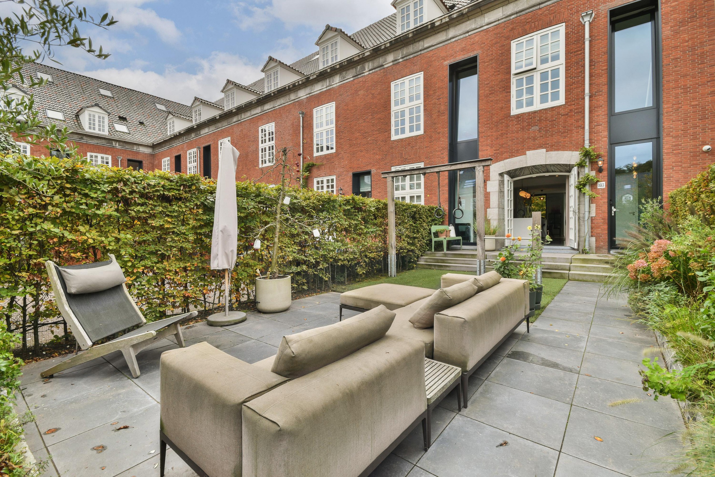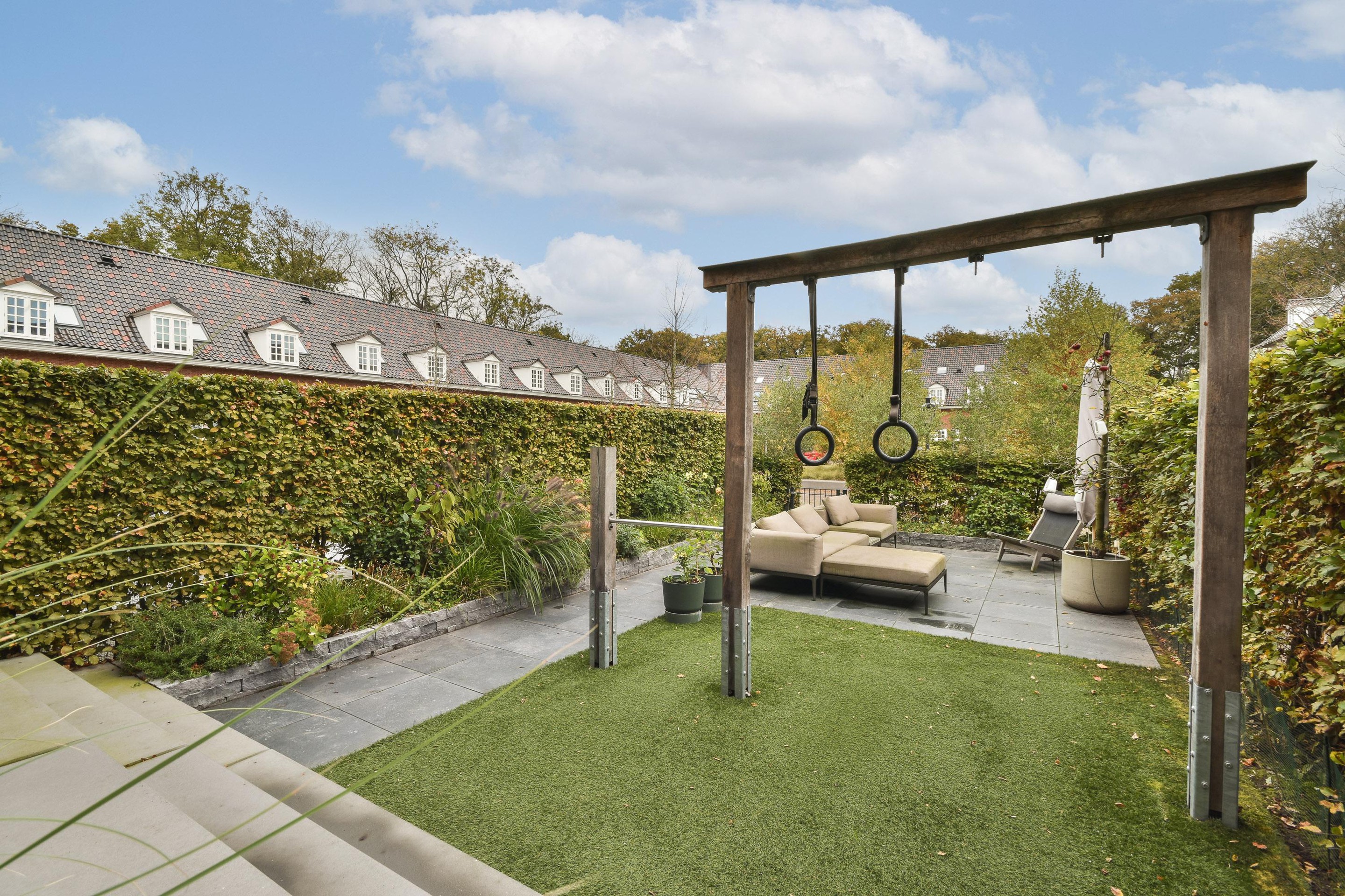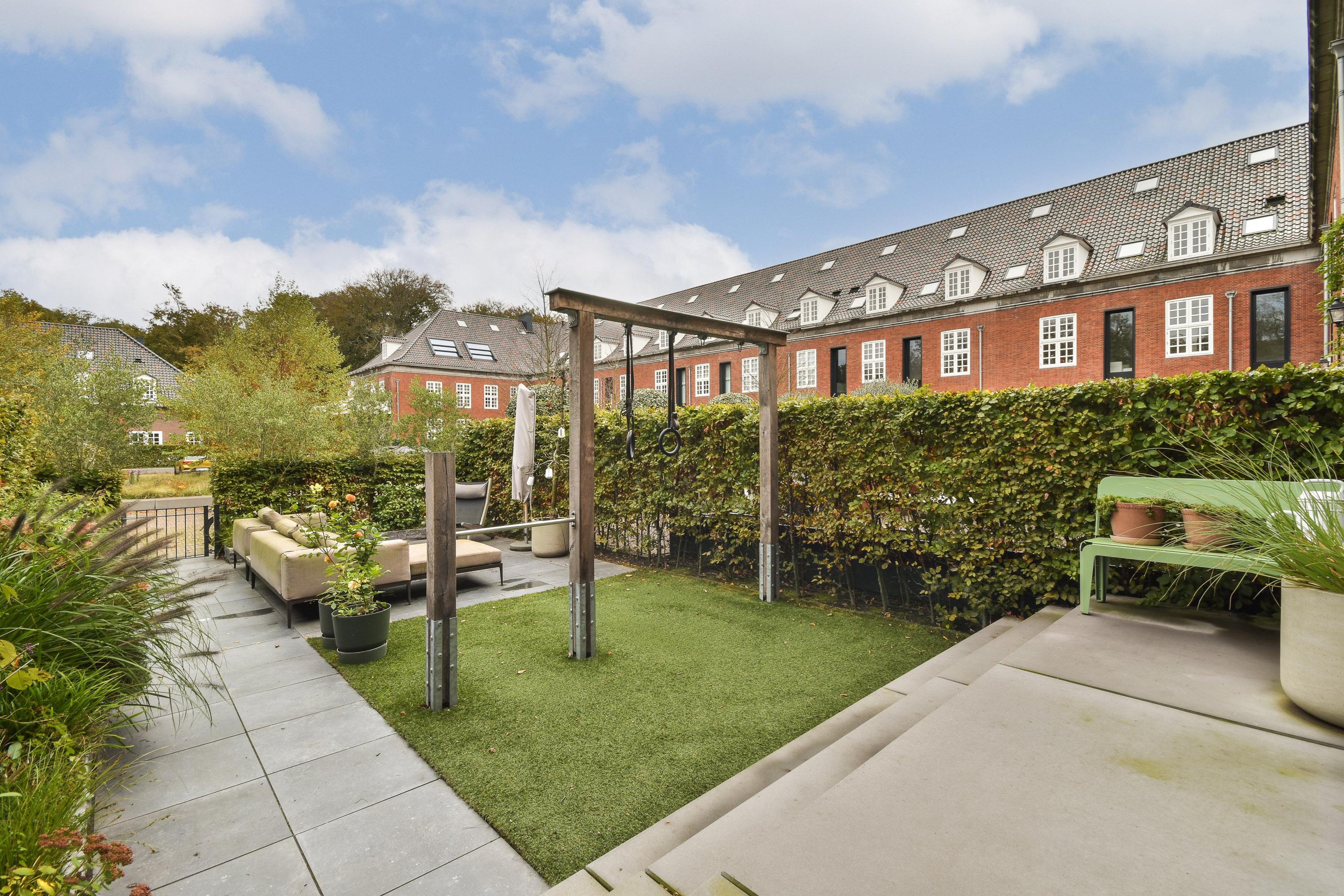 - Southeast-facing backyard of approximately 58 m2, adjacent to the complex's private park, accessible only to residents. - Aga cooker with various ovens and pressure cooking and simmering plates with self-regulating function. - Beautifully landscaped park-like setting