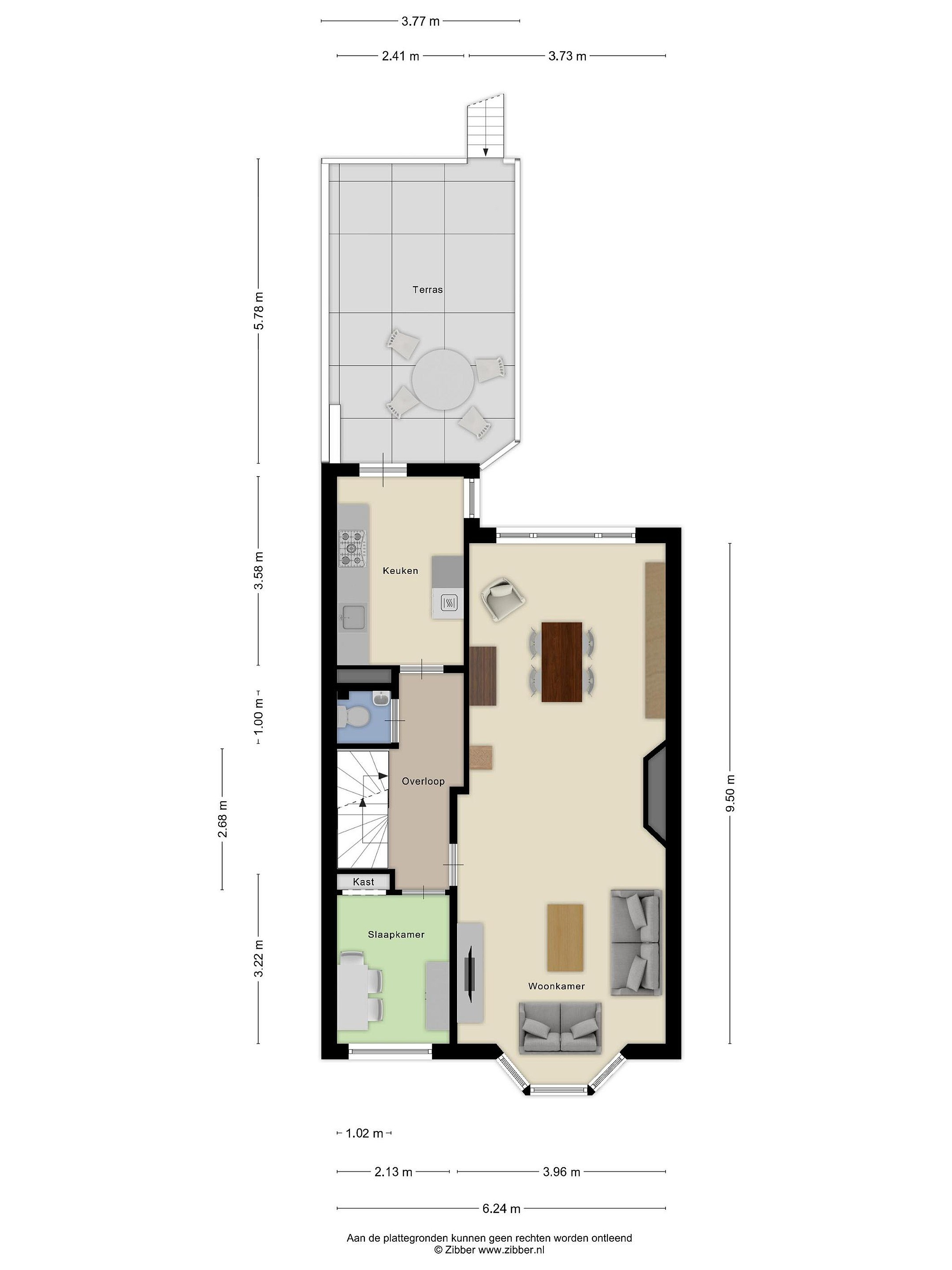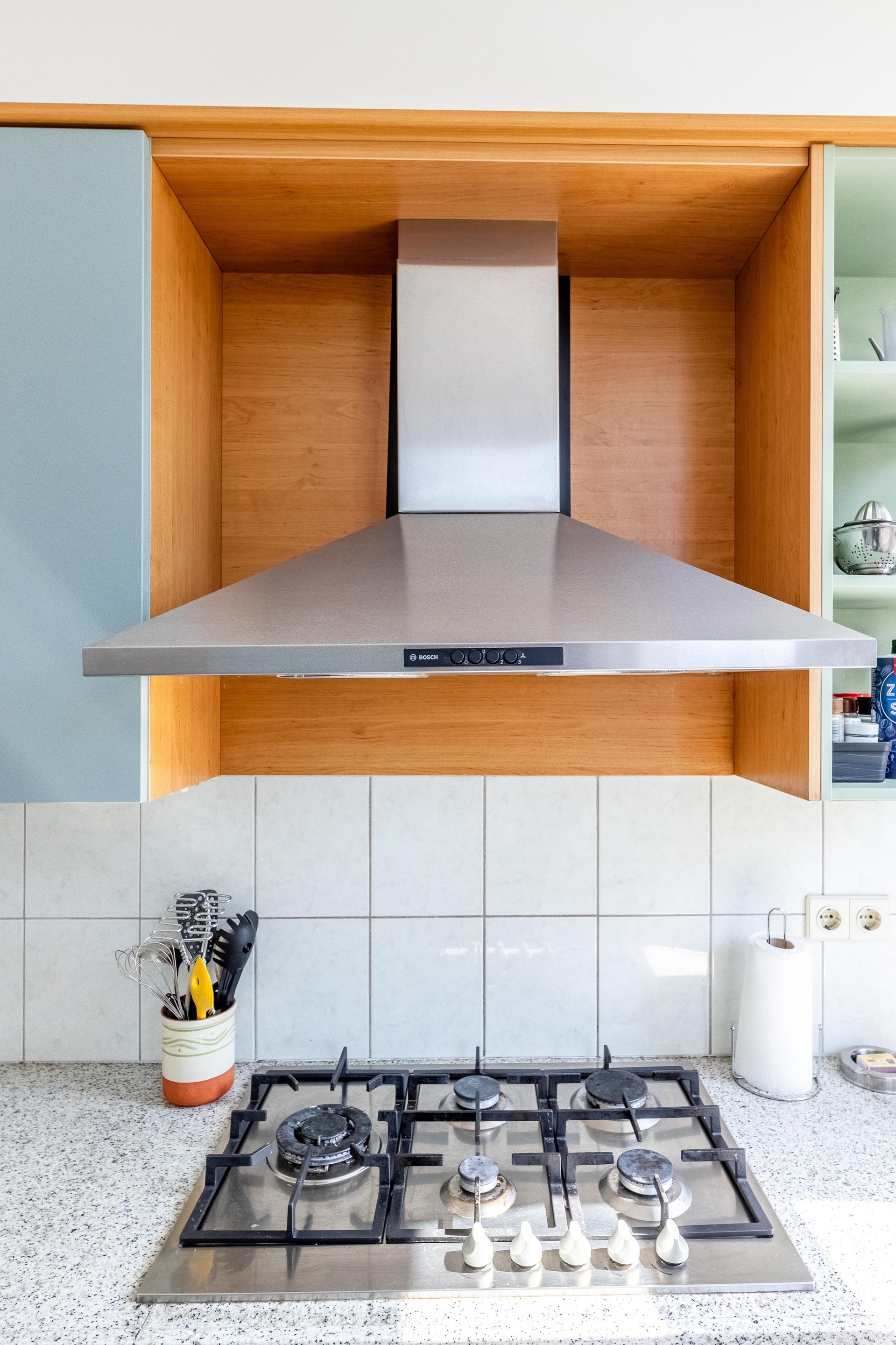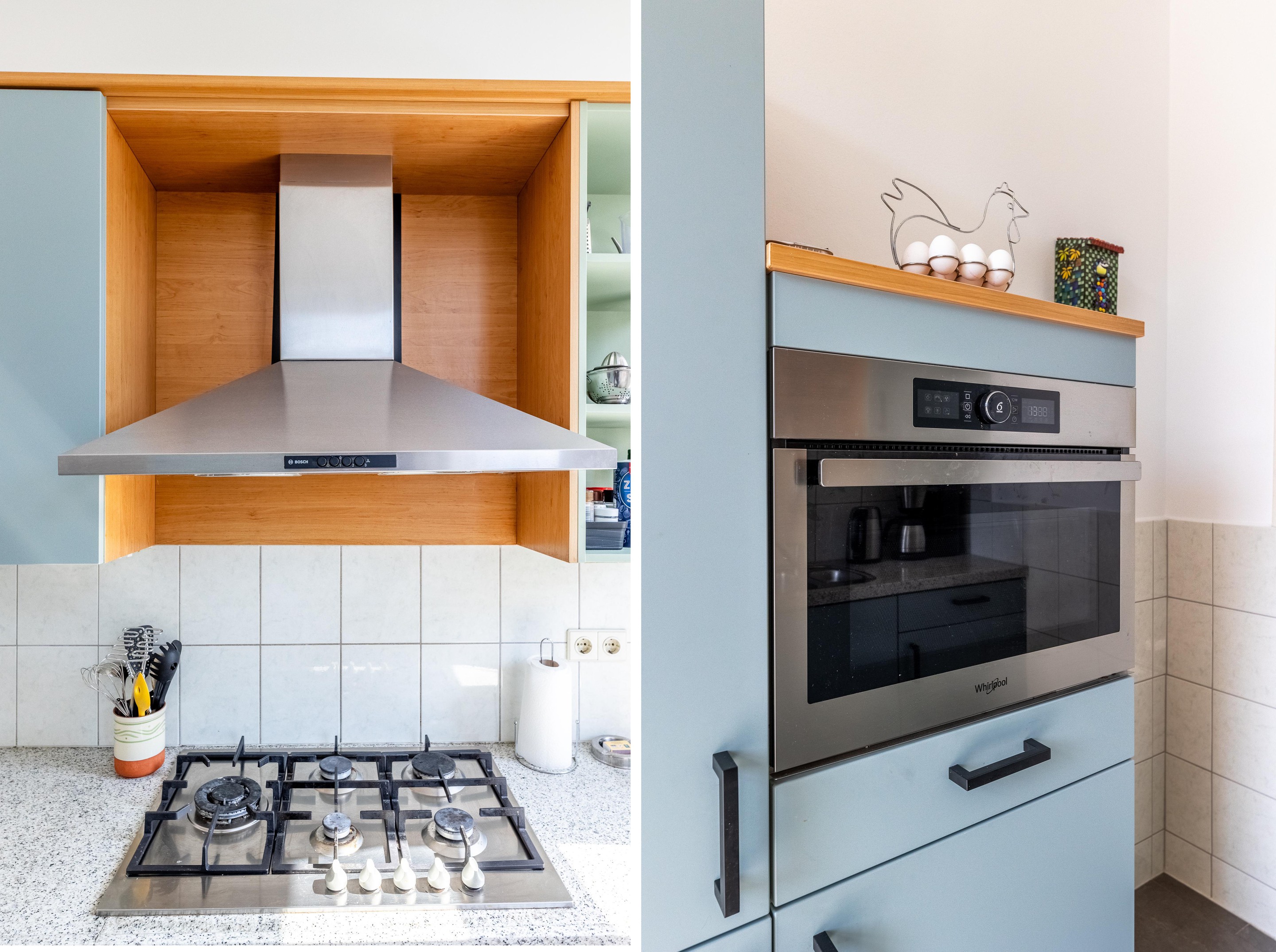 De keuken is voorzien van gaskookplaat, afzuigkap, vaatwasser, koelkast en vriezer. Vanuit de keuken heeft u toegang tot het zonnige dakterras (22 m2) aan de achterzijde.